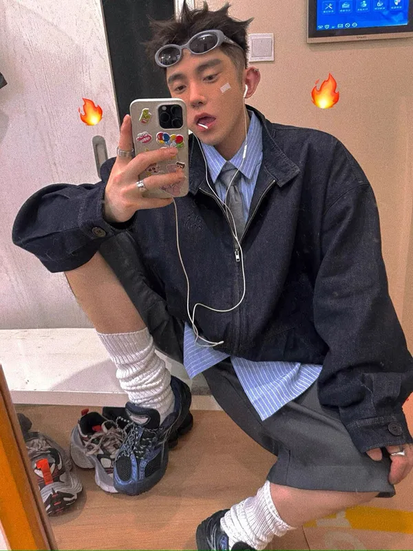 AUROCEAN 水洗丹寧 復古少年 小立領 外套(牛仔藍)