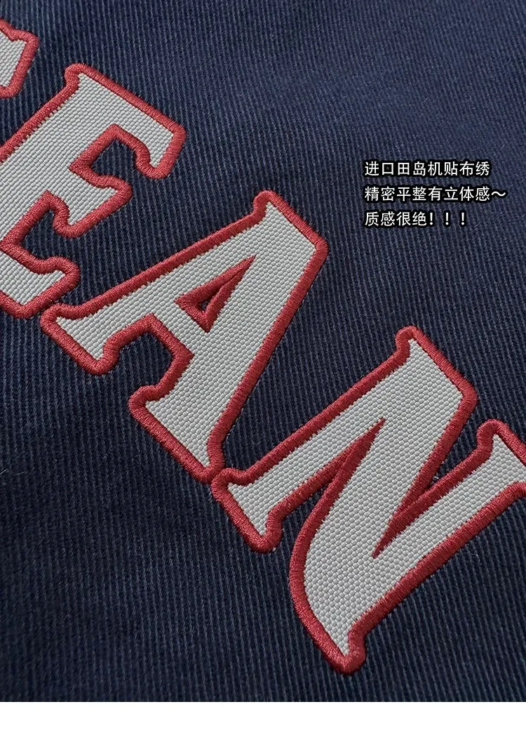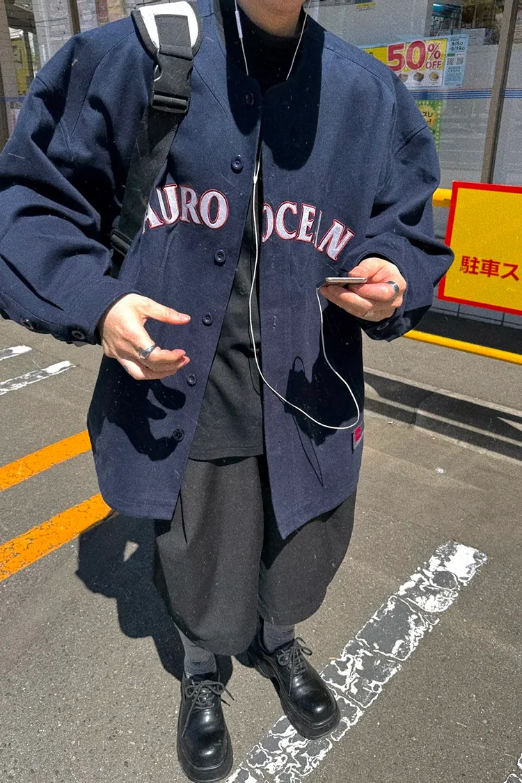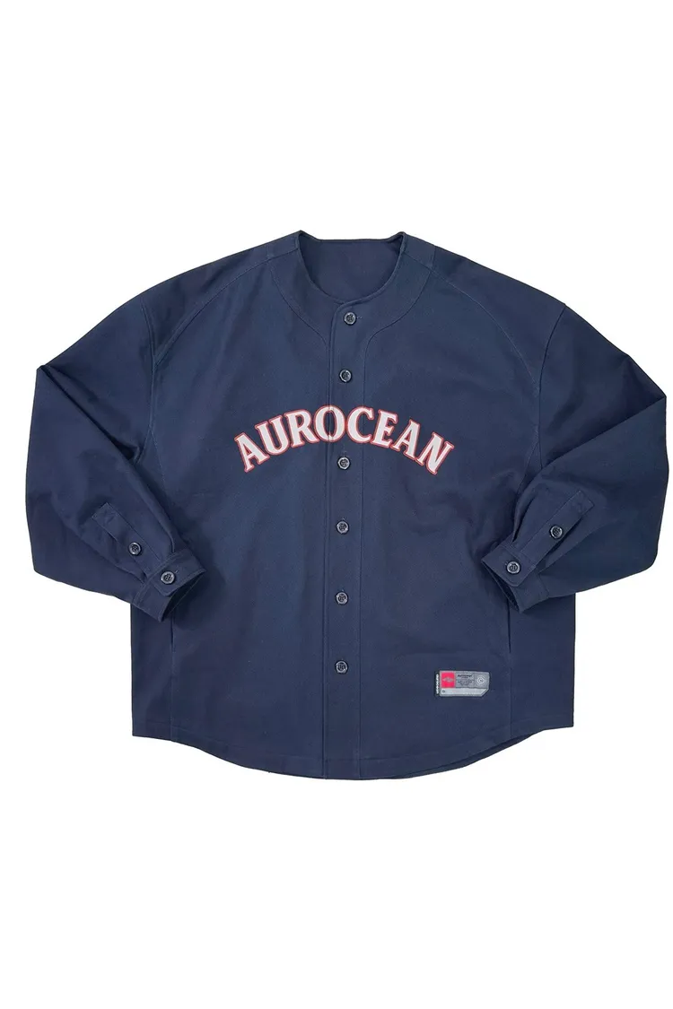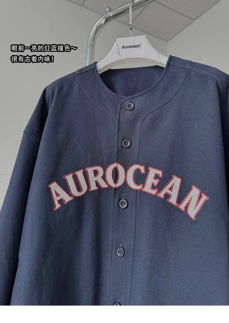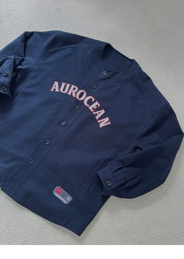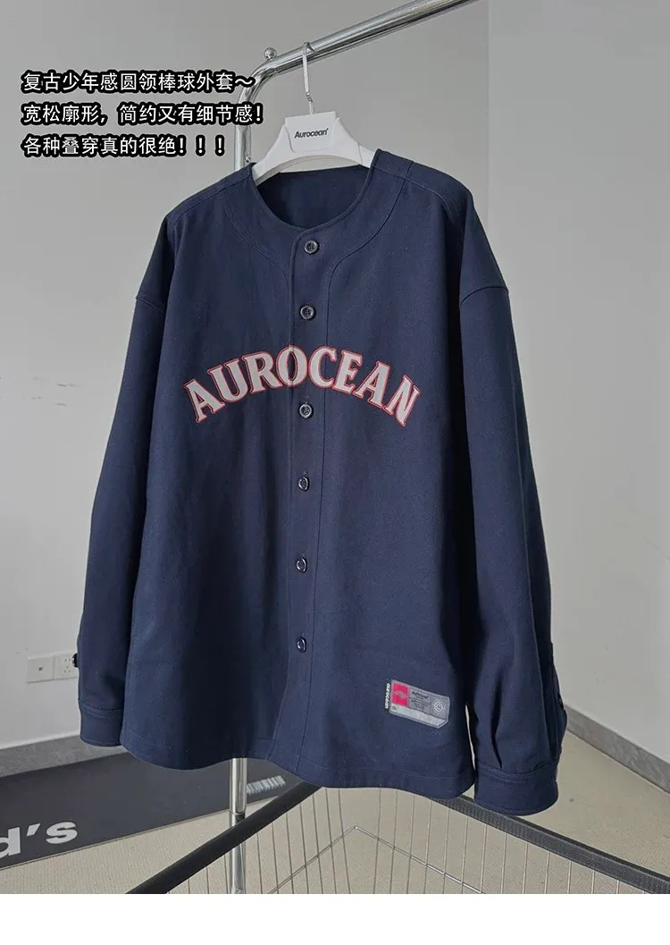 AUROCEAN 撞色刺繡 布章 棒球外套(藏青)