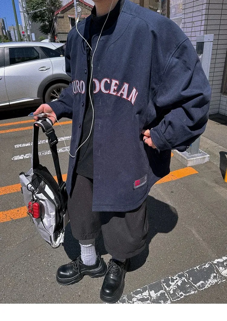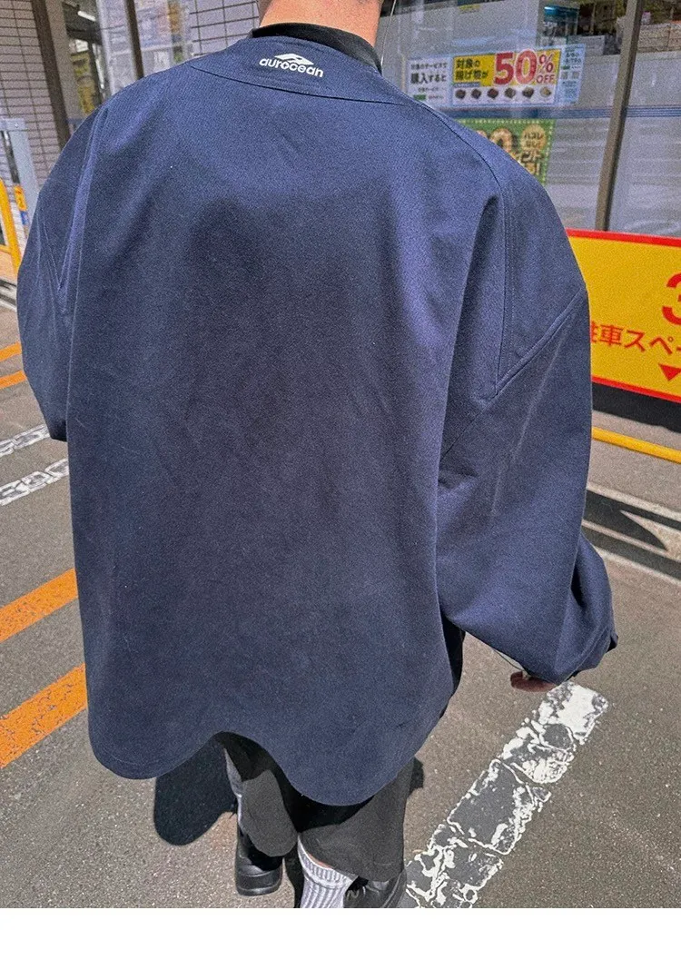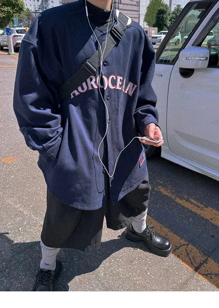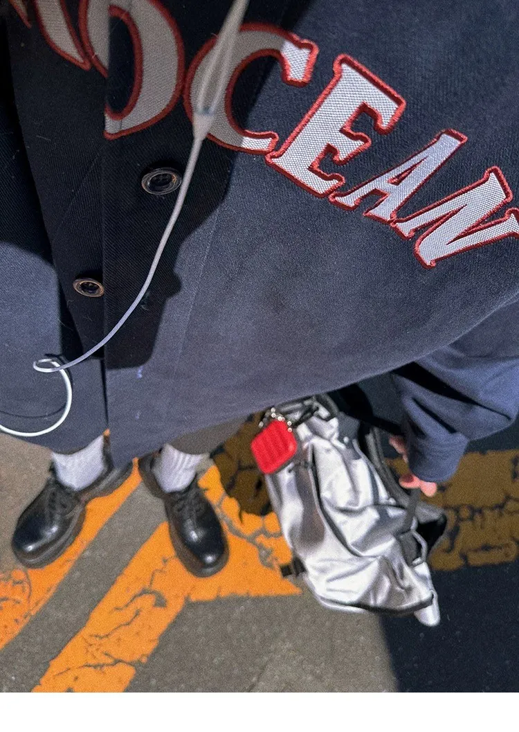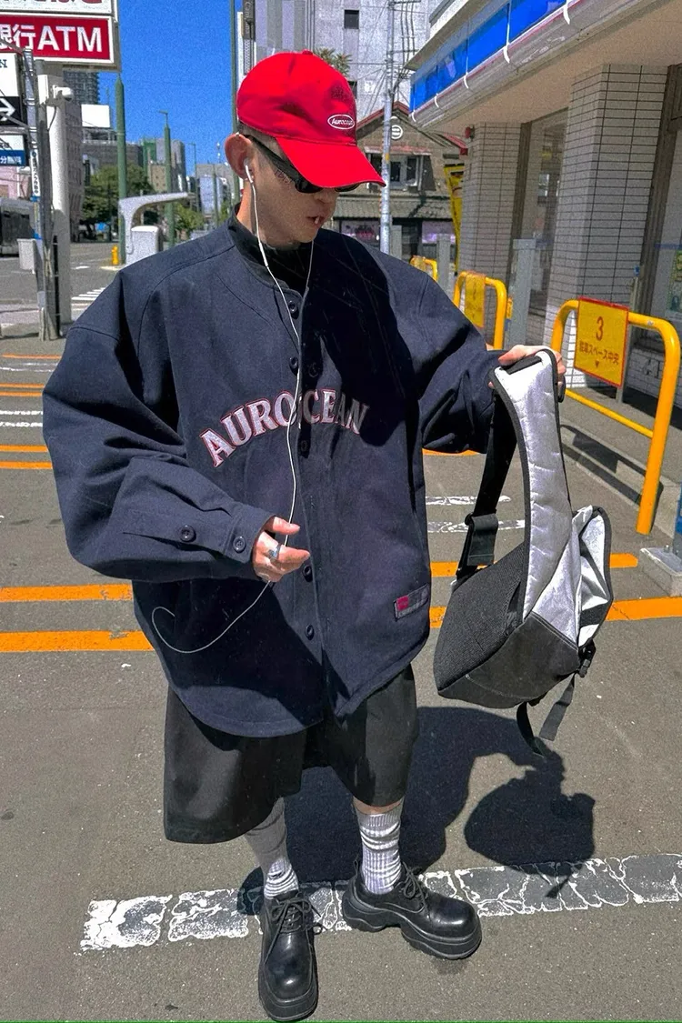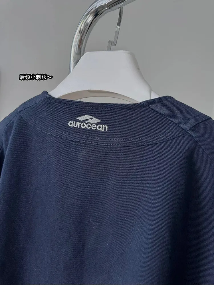 AUROCEAN 撞色刺繡 布章 棒球外套(藏青)