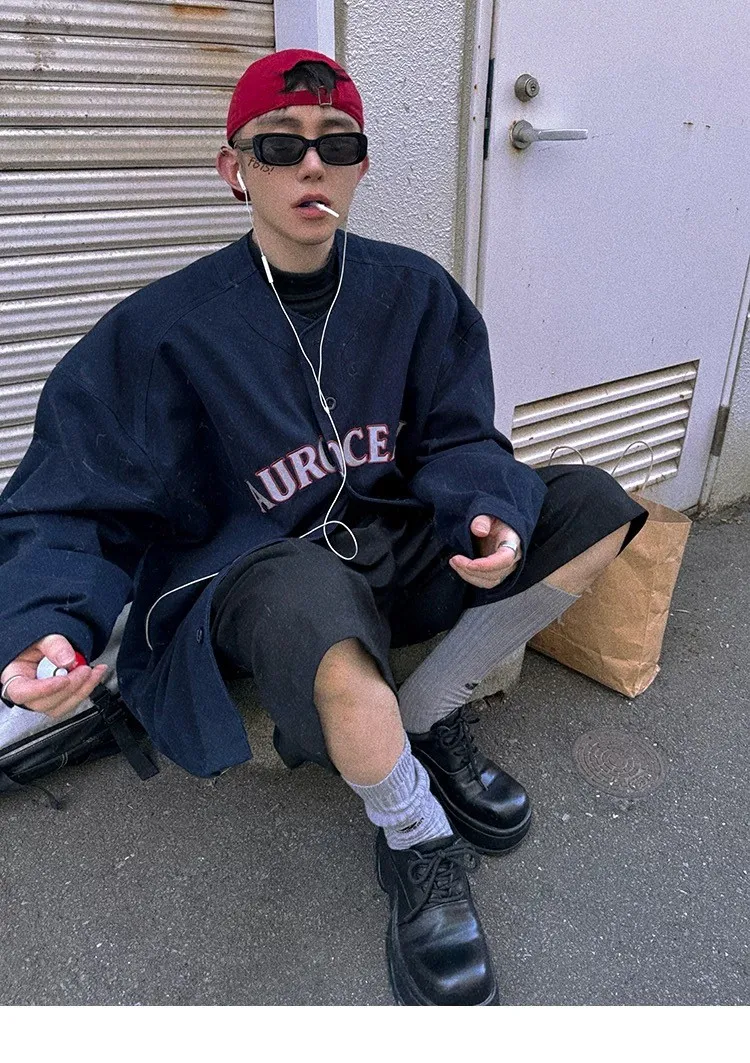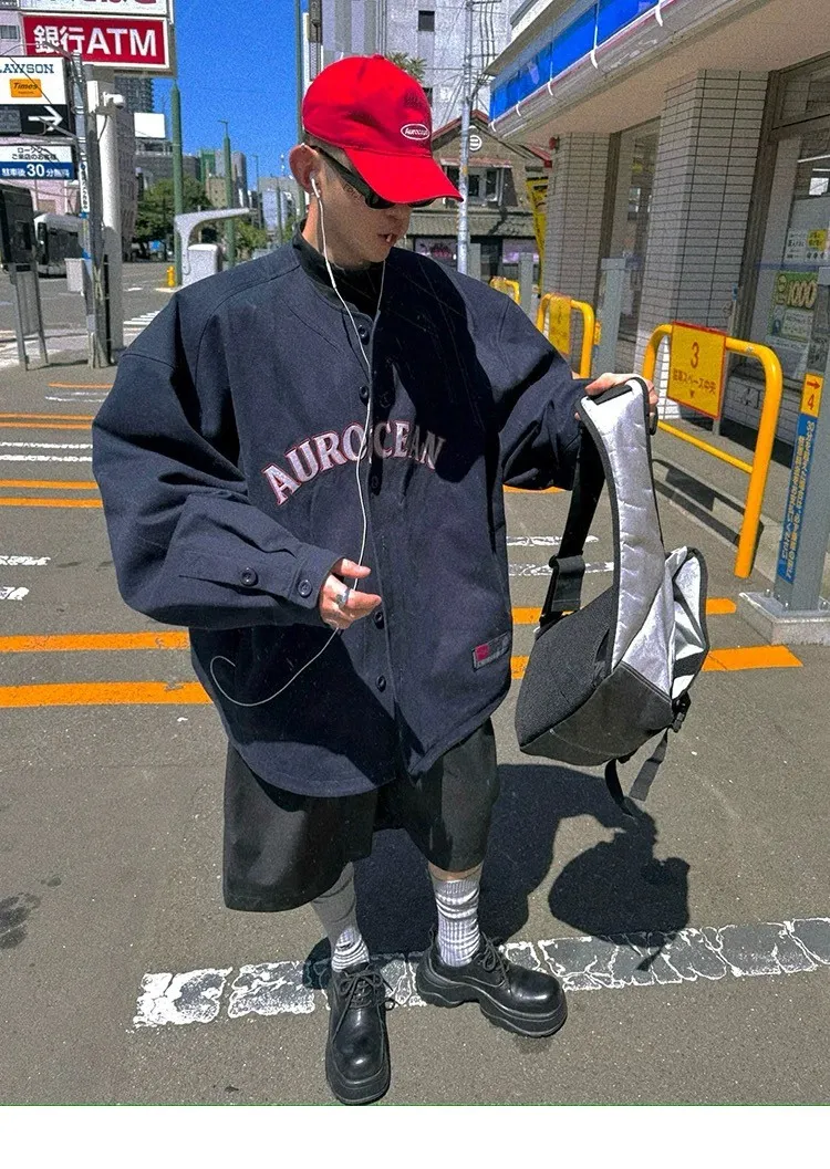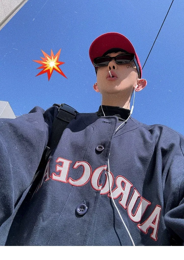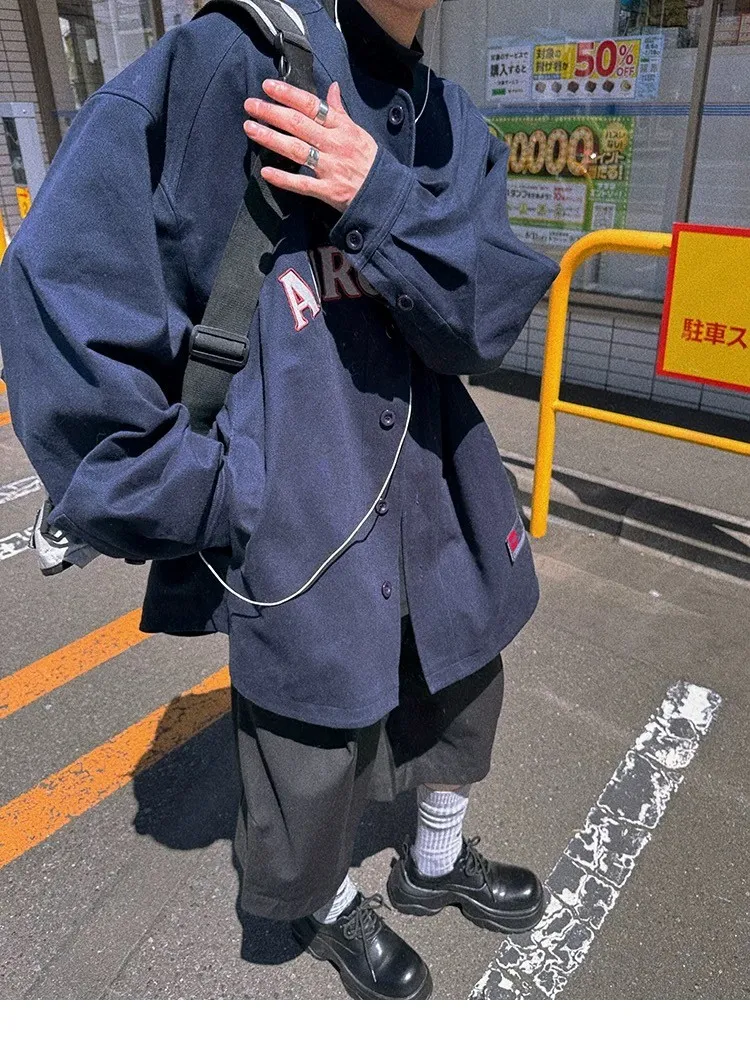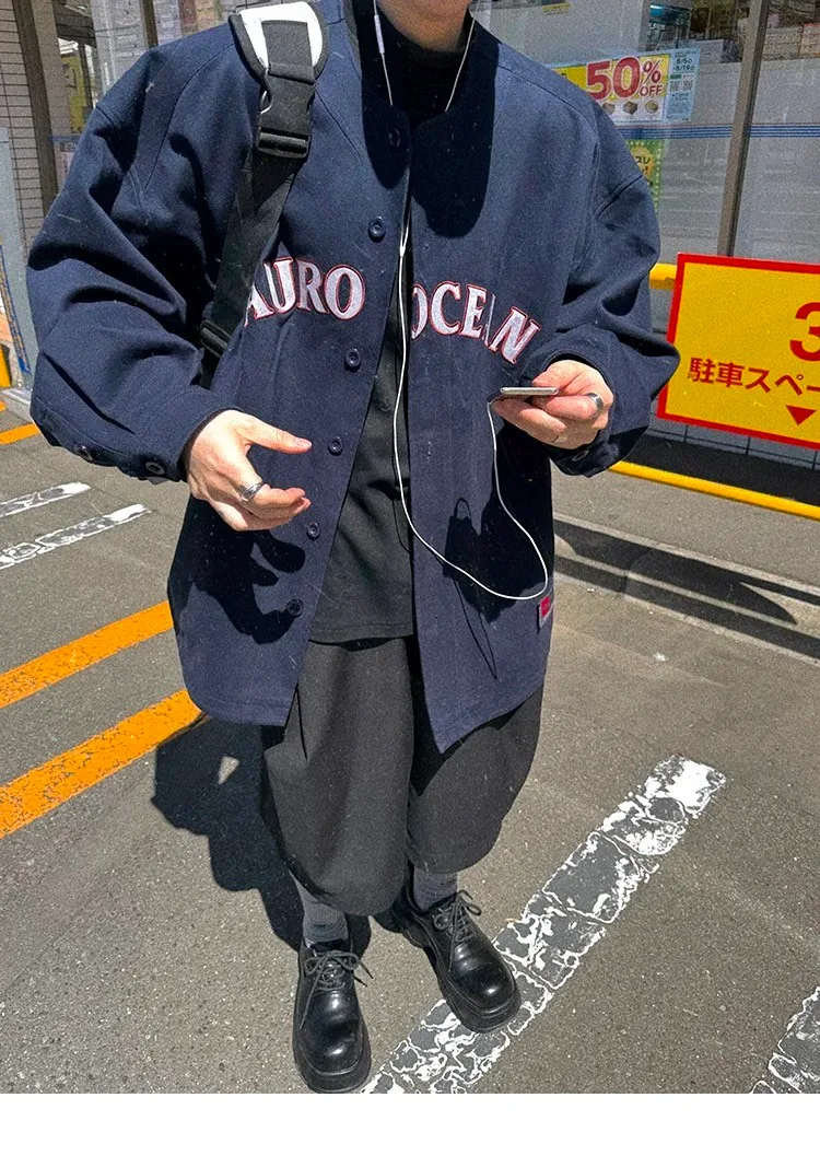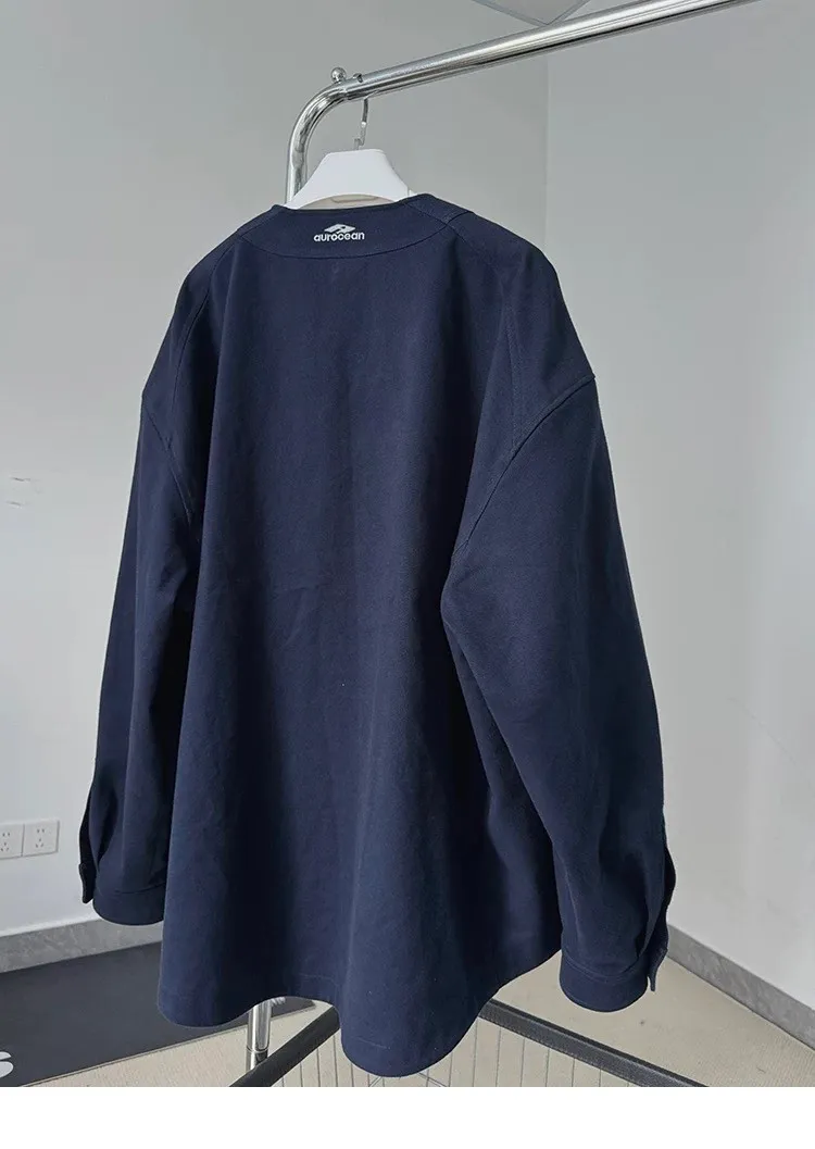 AUROCEAN 撞色刺繡 布章 棒球外套(藏青)