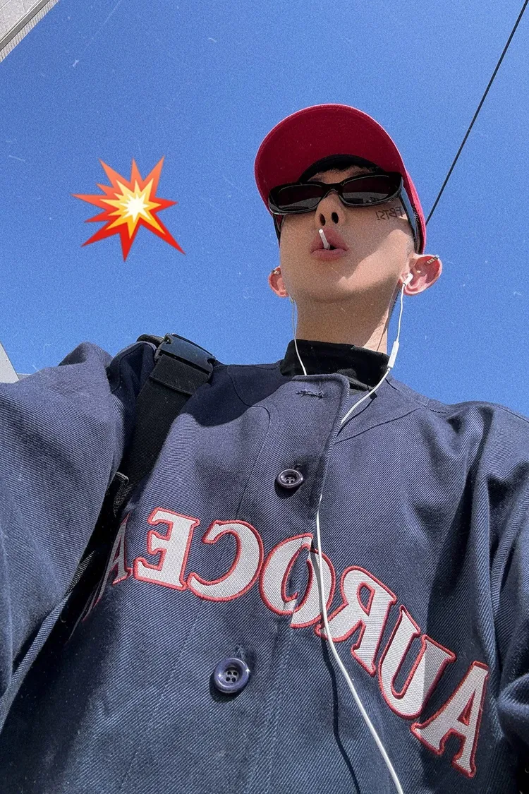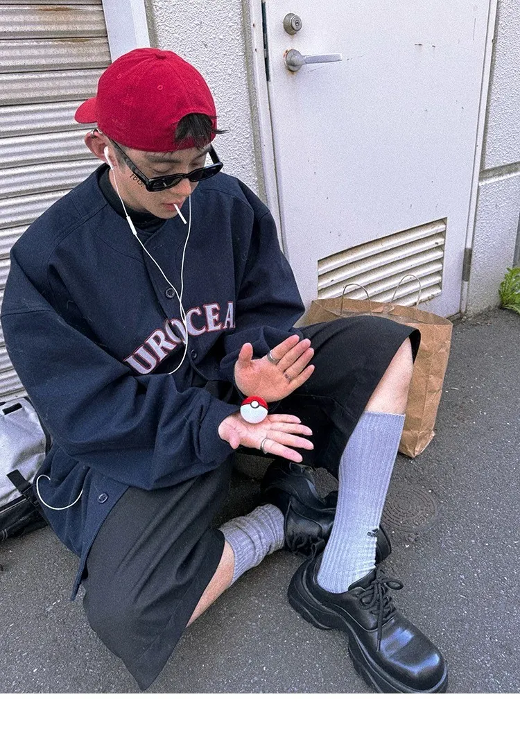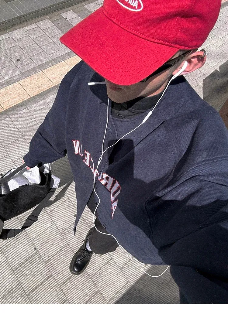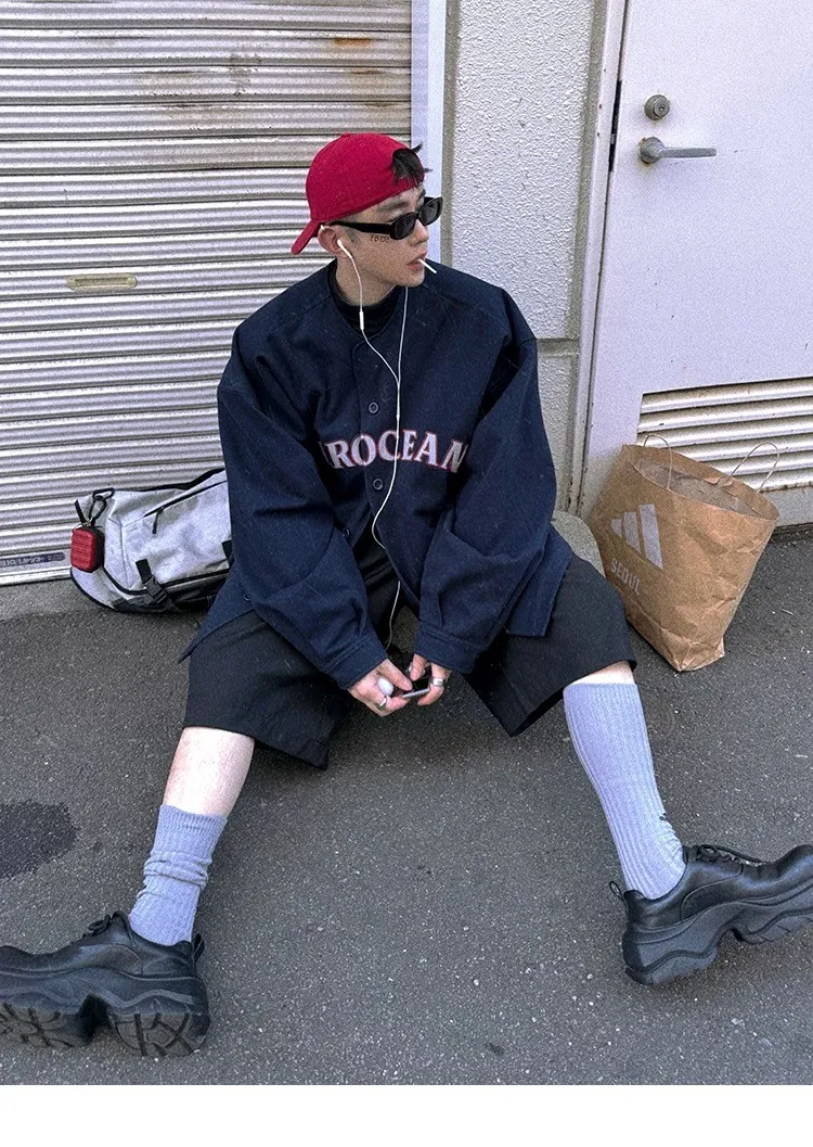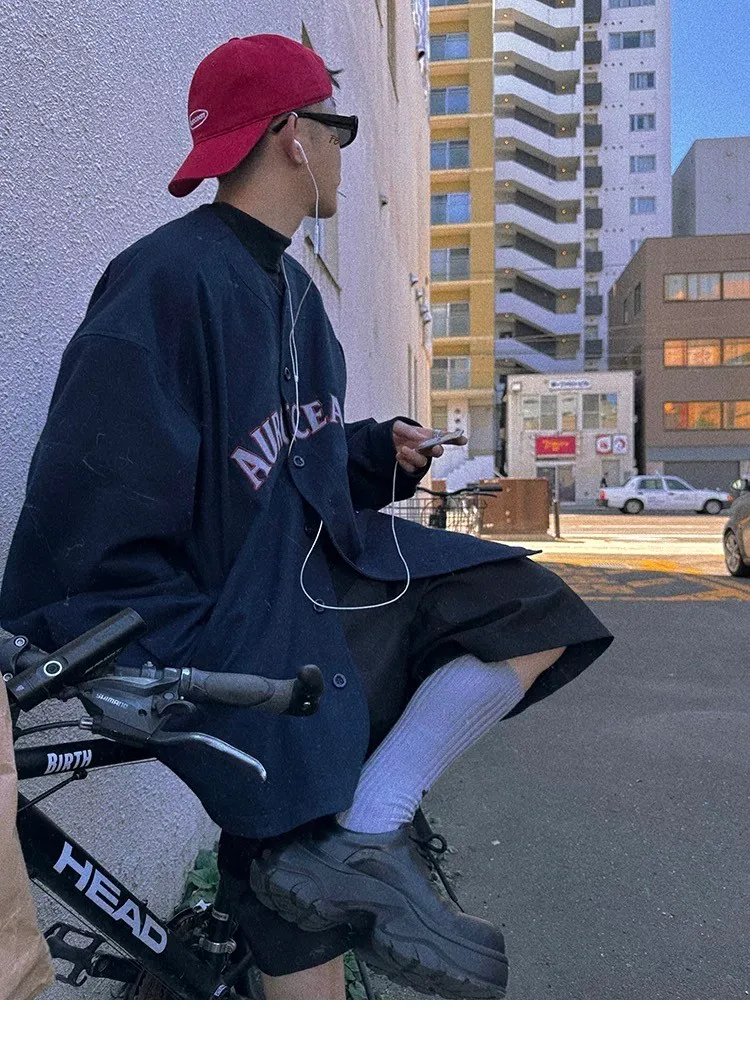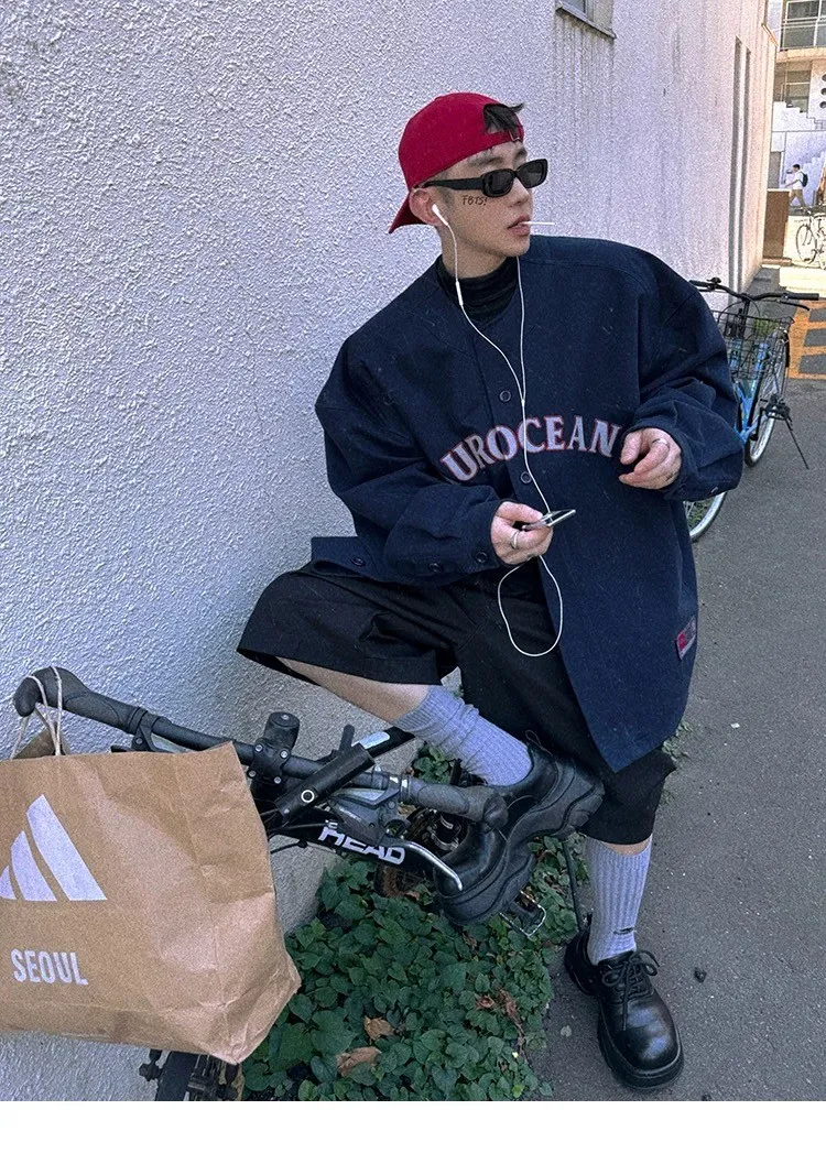 AUROCEAN 撞色刺繡 布章 棒球外套(藏青)