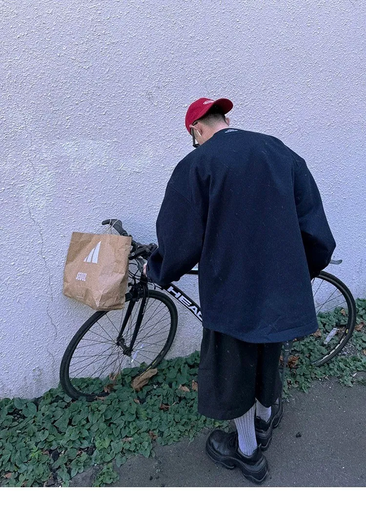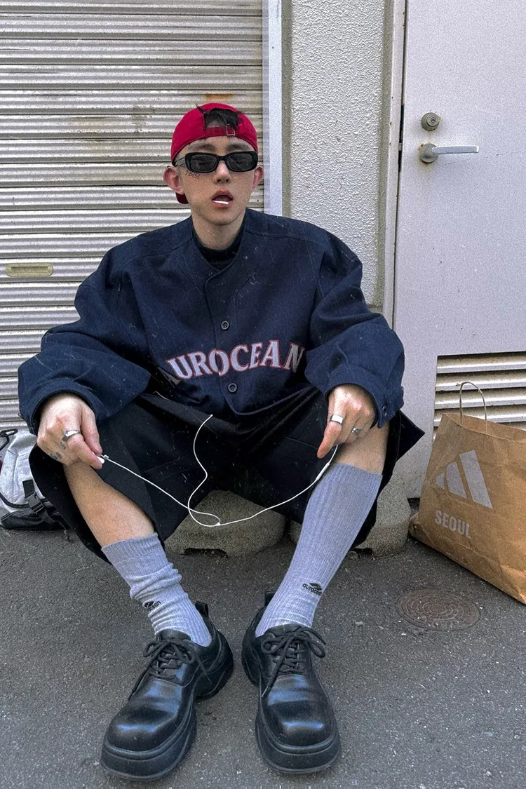 AUROCEAN 假兩件 襯衫袖 塗鴉LOGO 長袖(黑色)