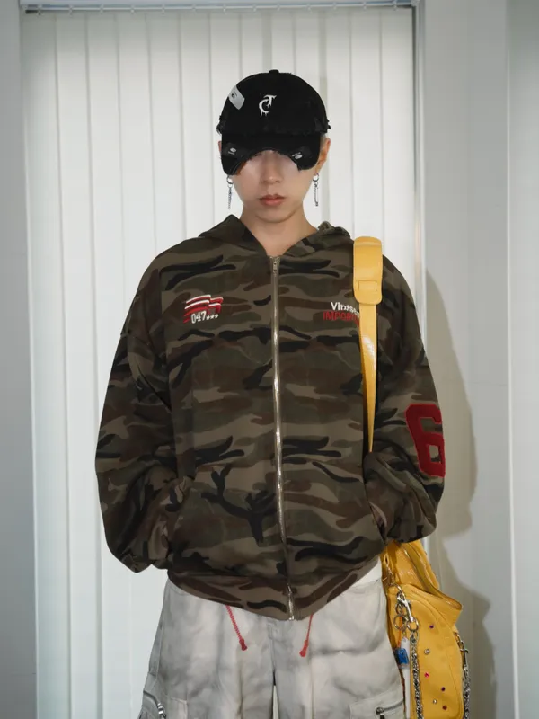 刺繡寬短 69 迷彩 連帽外套(迷彩綠)