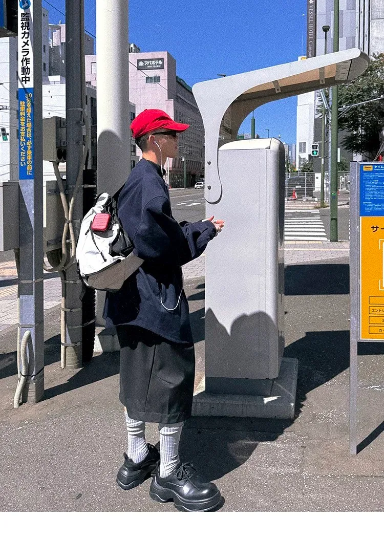 AUROCEAN 復古運動風 撞色邊條 尼龍 長褲(黑色)