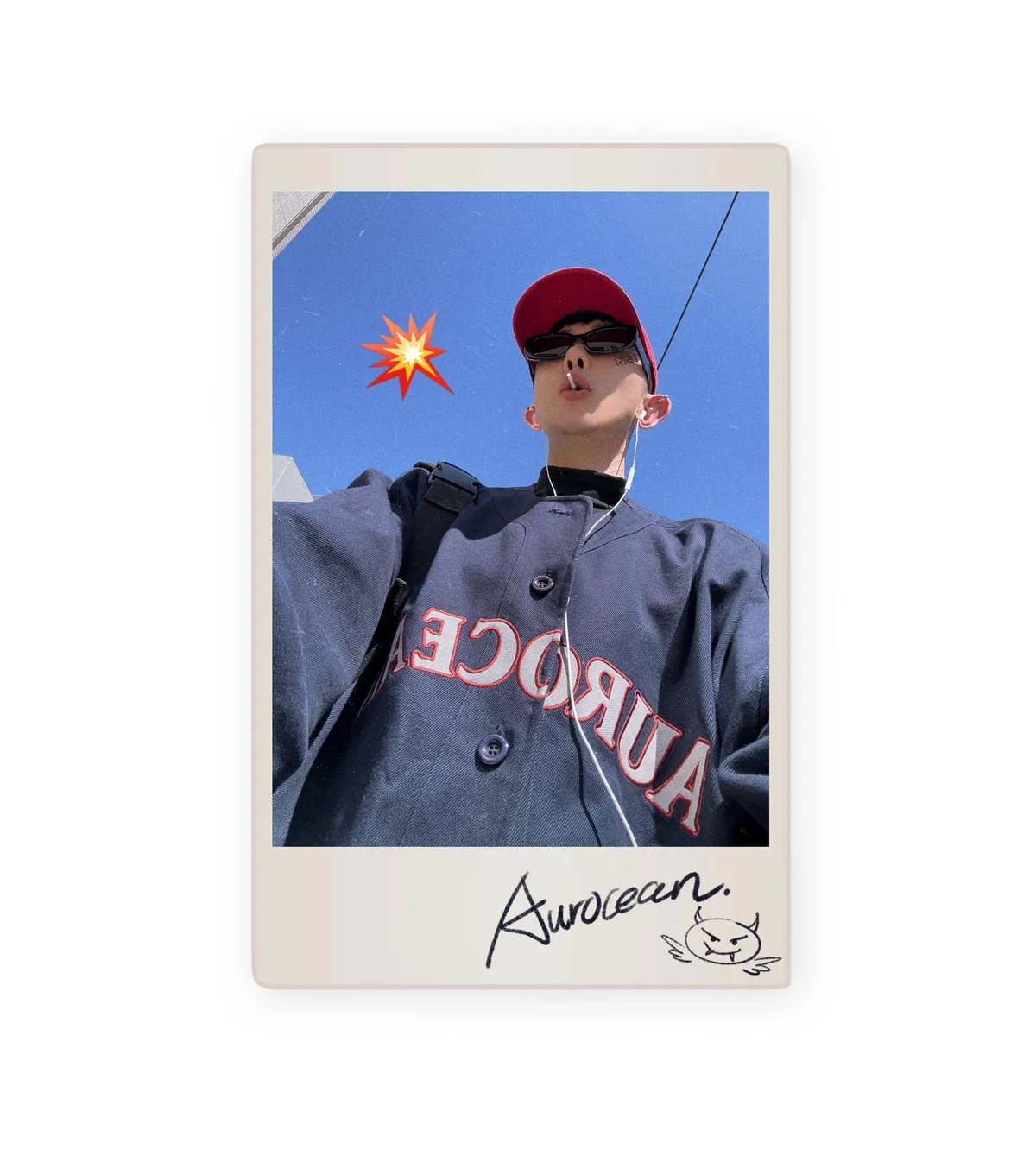 AUROCEAN 假兩件 襯衫袖 塗鴉LOGO 長袖(白色)