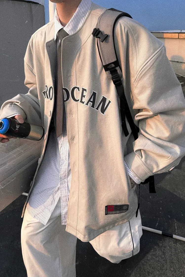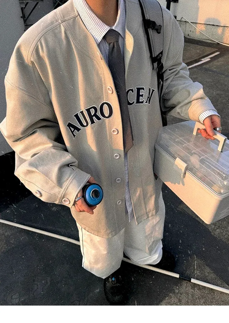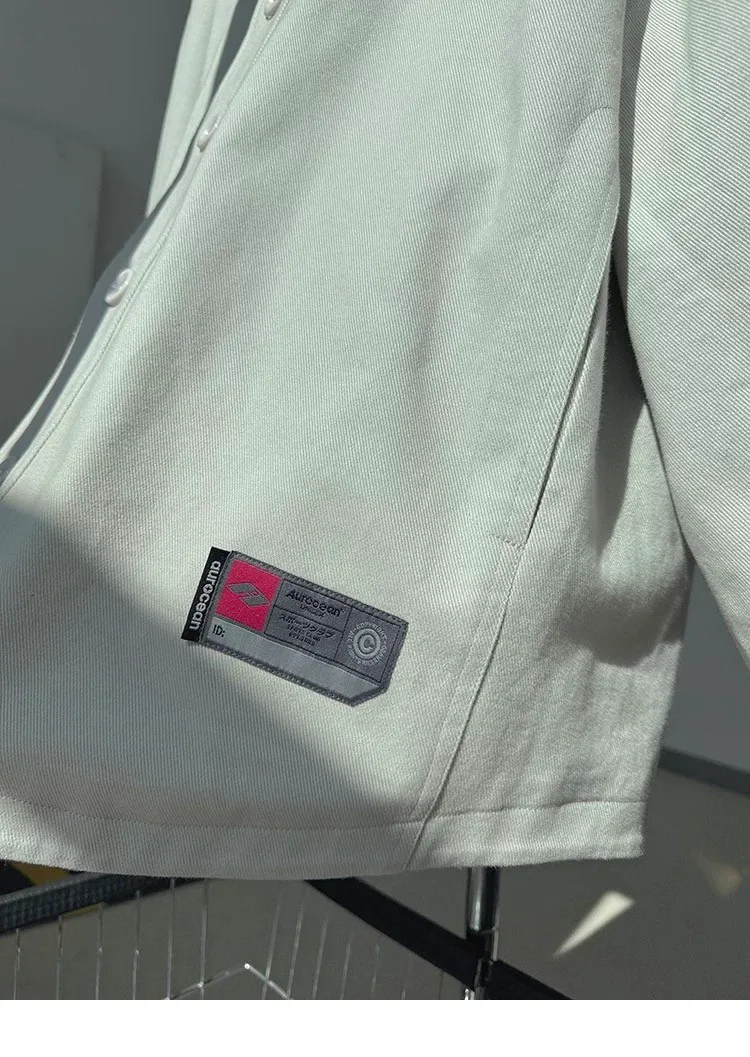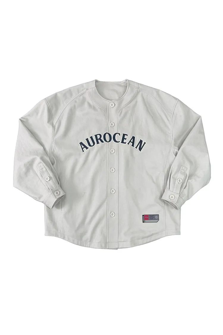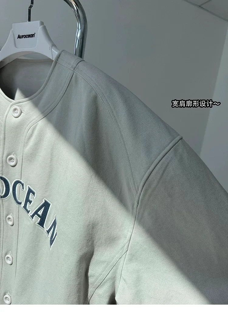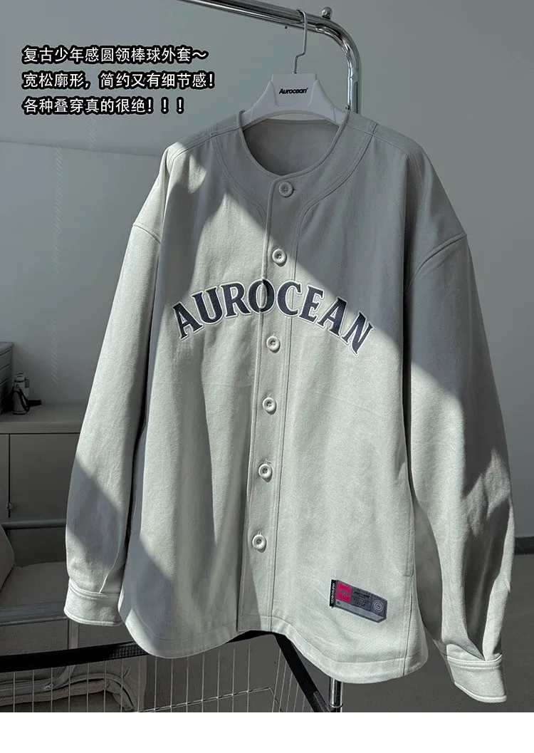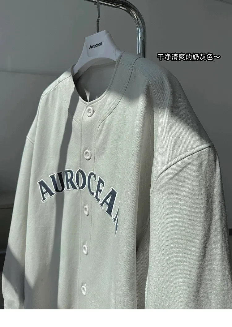 AUROCEAN 撞色刺繡 布章 棒球外套(奶灰)