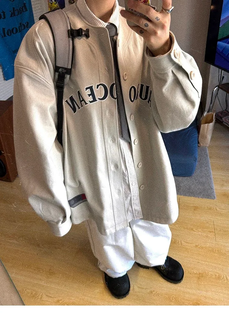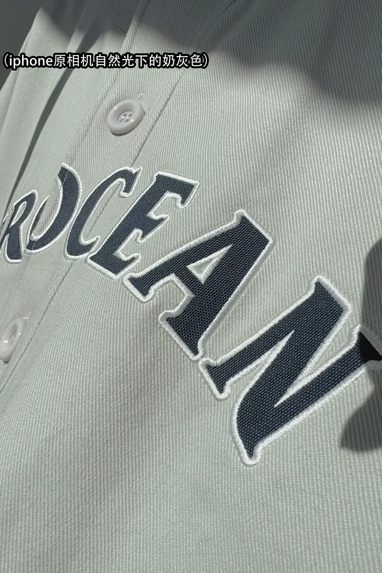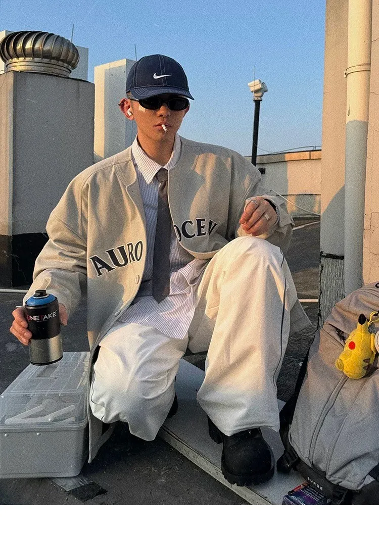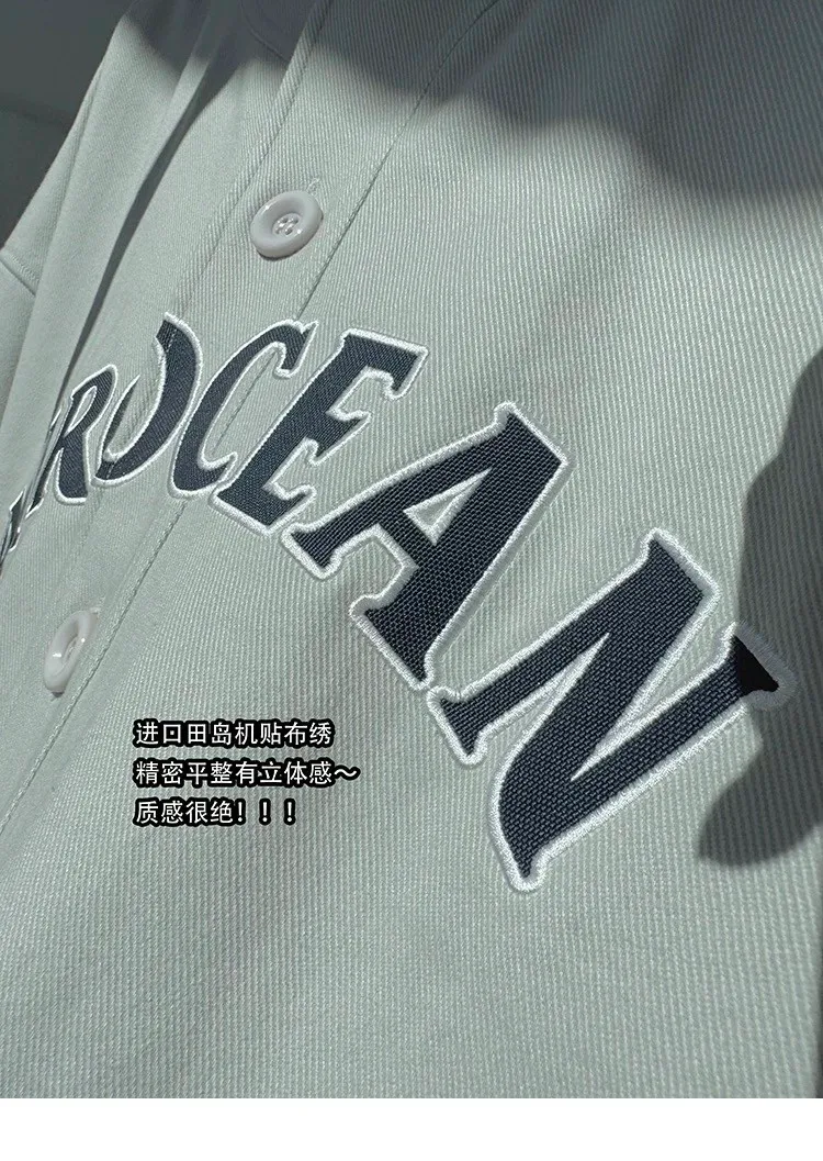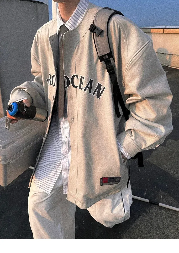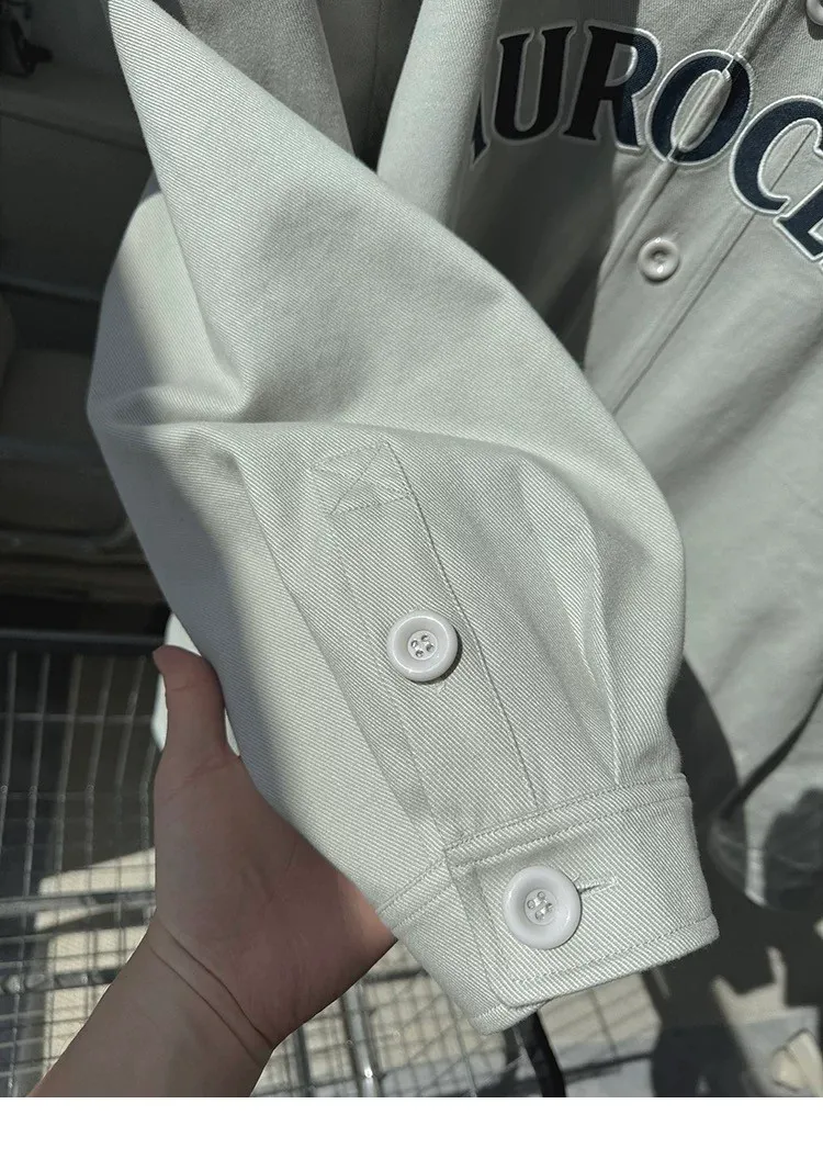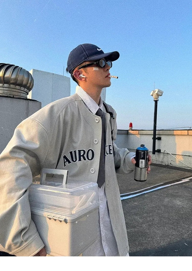 AUROCEAN 撞色刺繡 布章 棒球外套(奶灰)