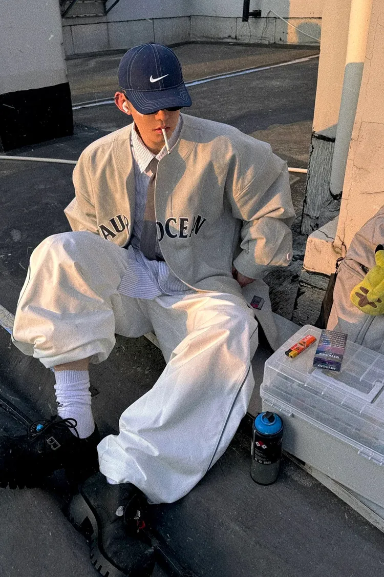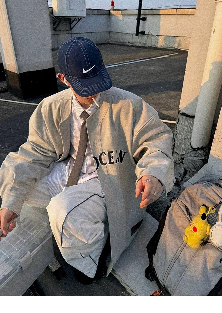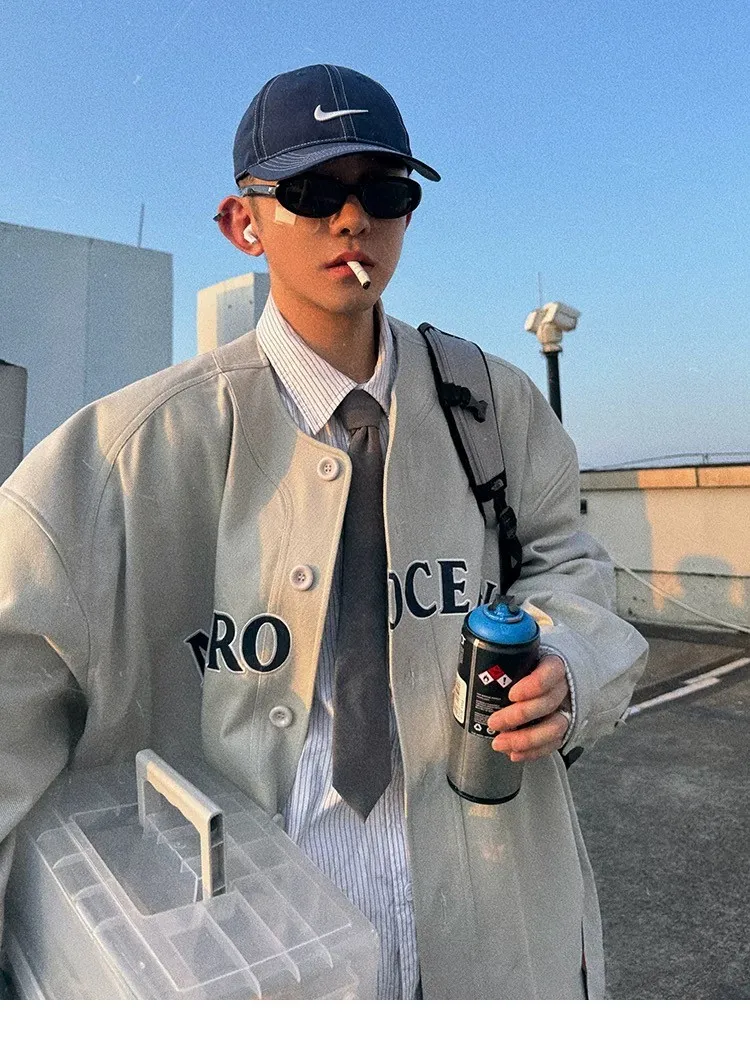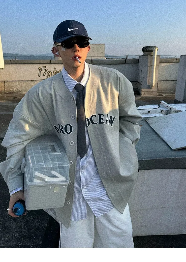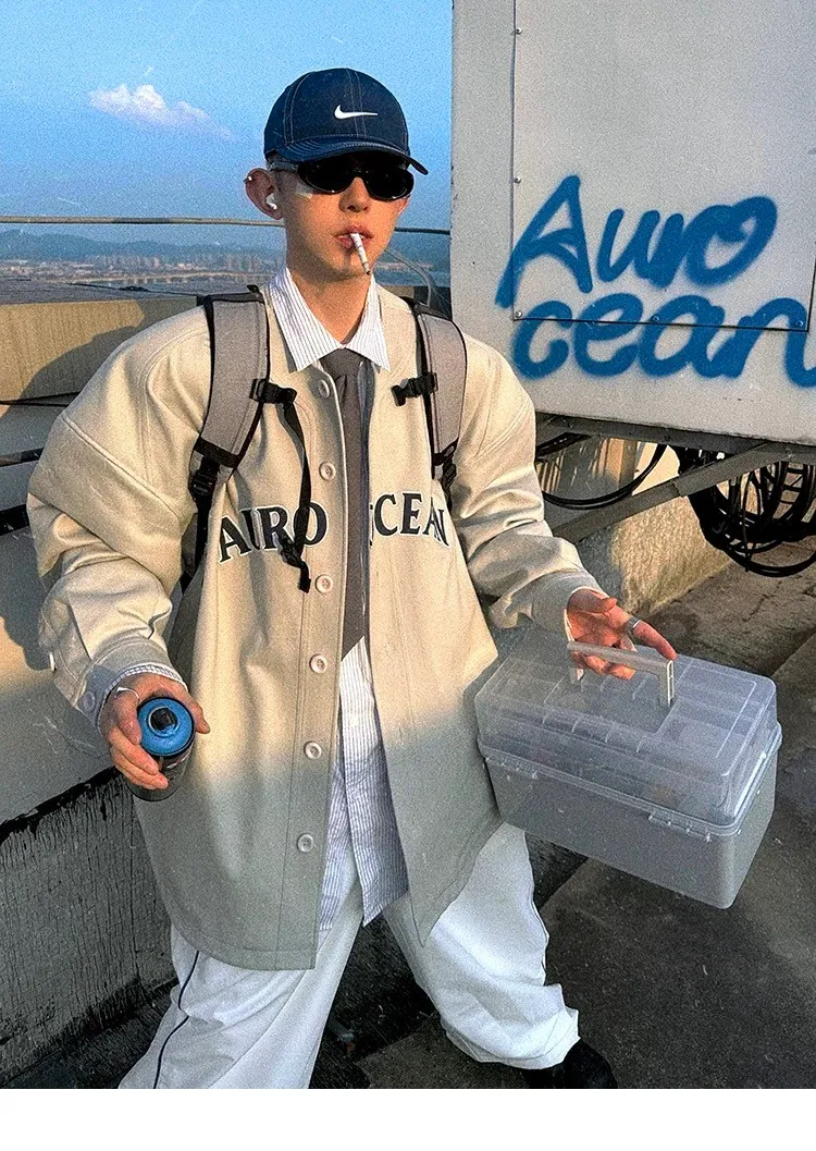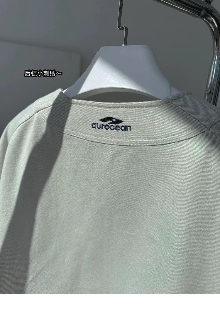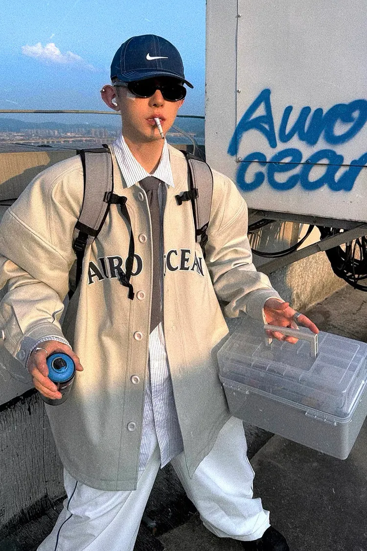 AUROCEAN 撞色刺繡 布章 棒球外套(奶灰)