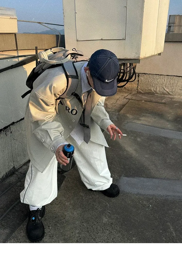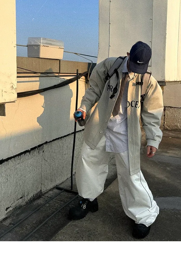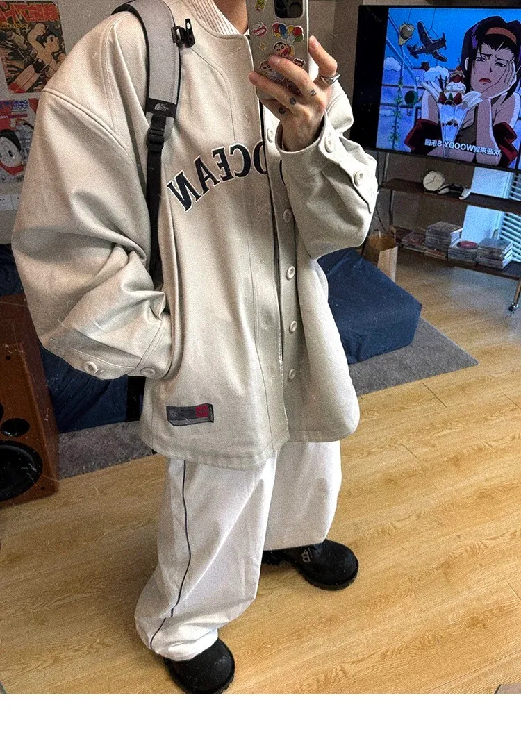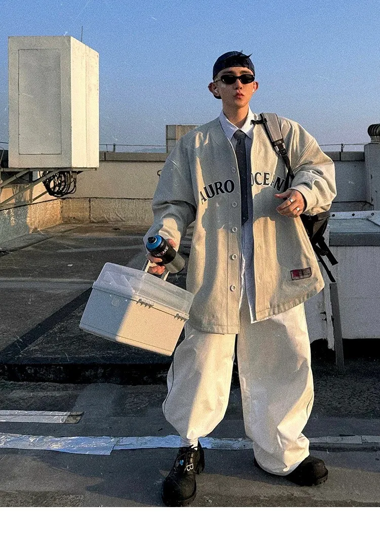 ARGUE 復古水洗 哈靈頓 水洗寬短 外套 解構 長褲 套裝(卡其/黑)