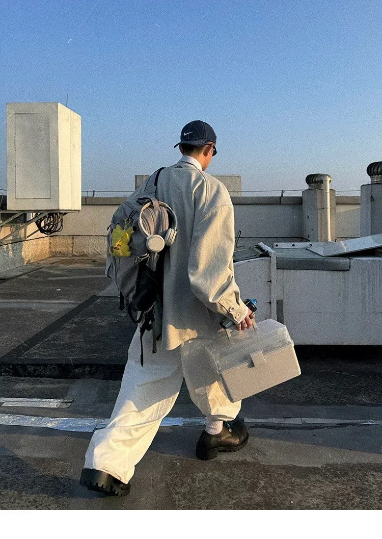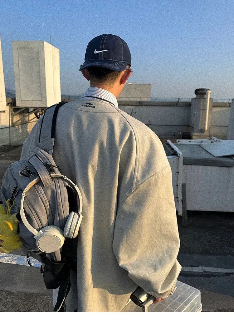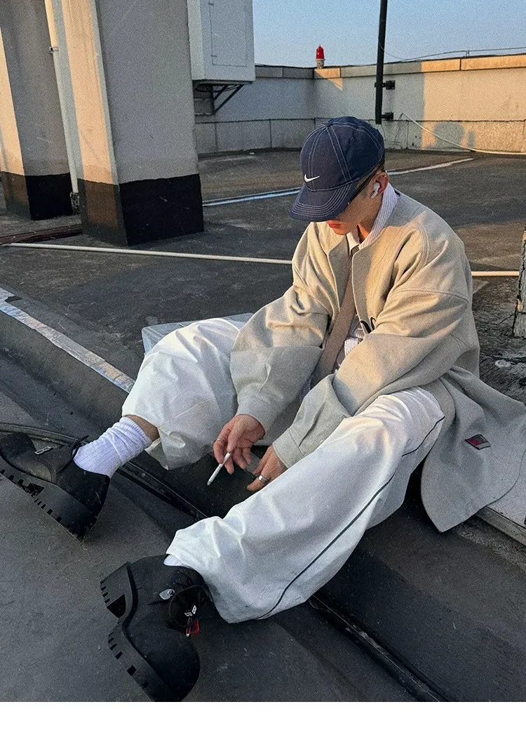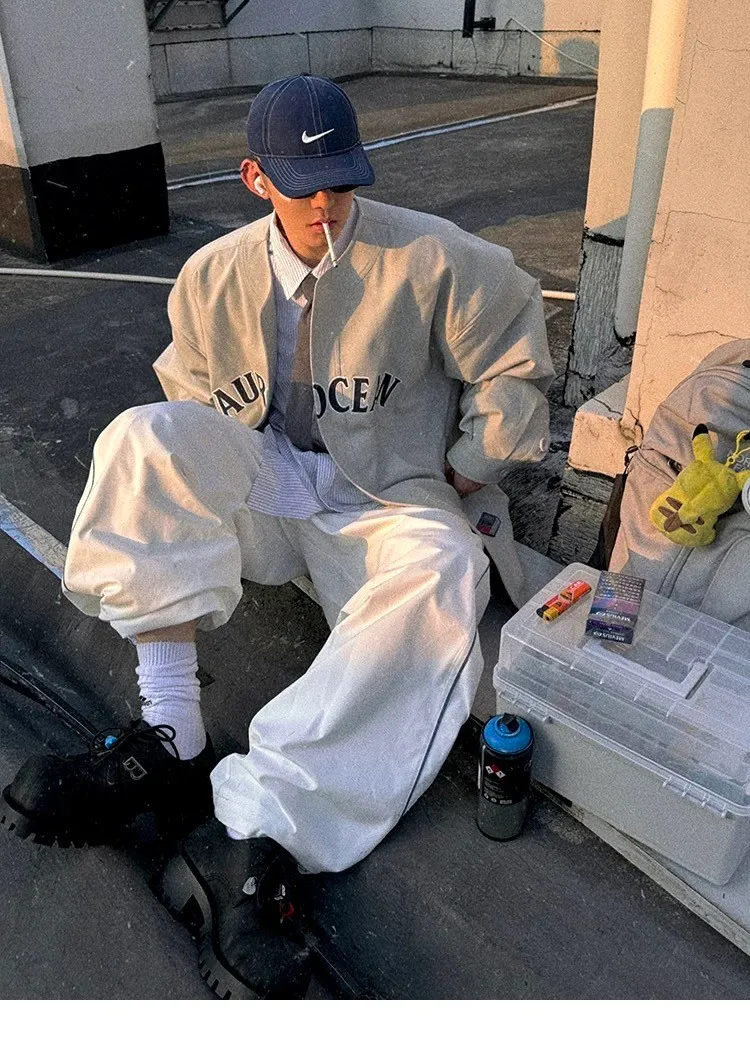ARGUE 復古水洗 哈靈頓 水洗寬短 外套 解構 長褲 套裝(卡其/黑)