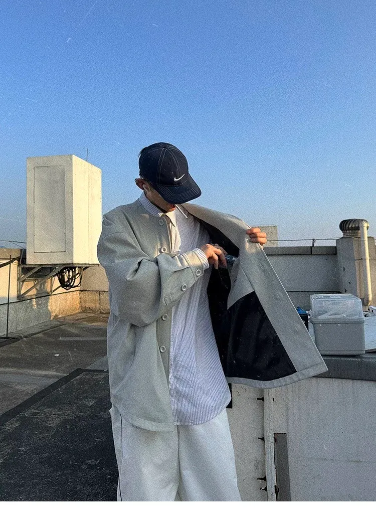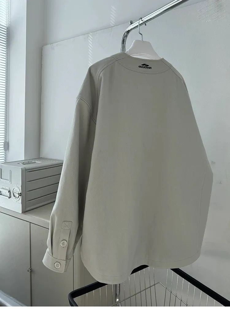 AUROCEAN 復古寬短 學院小立領 外套(奶灰)