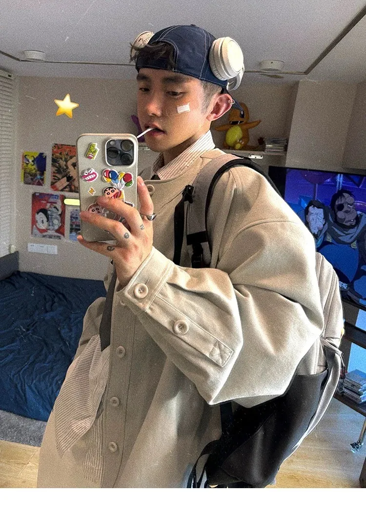 ARGUE 古典輪廓 撞色翻領 工裝 外套(黑/灰/杏)