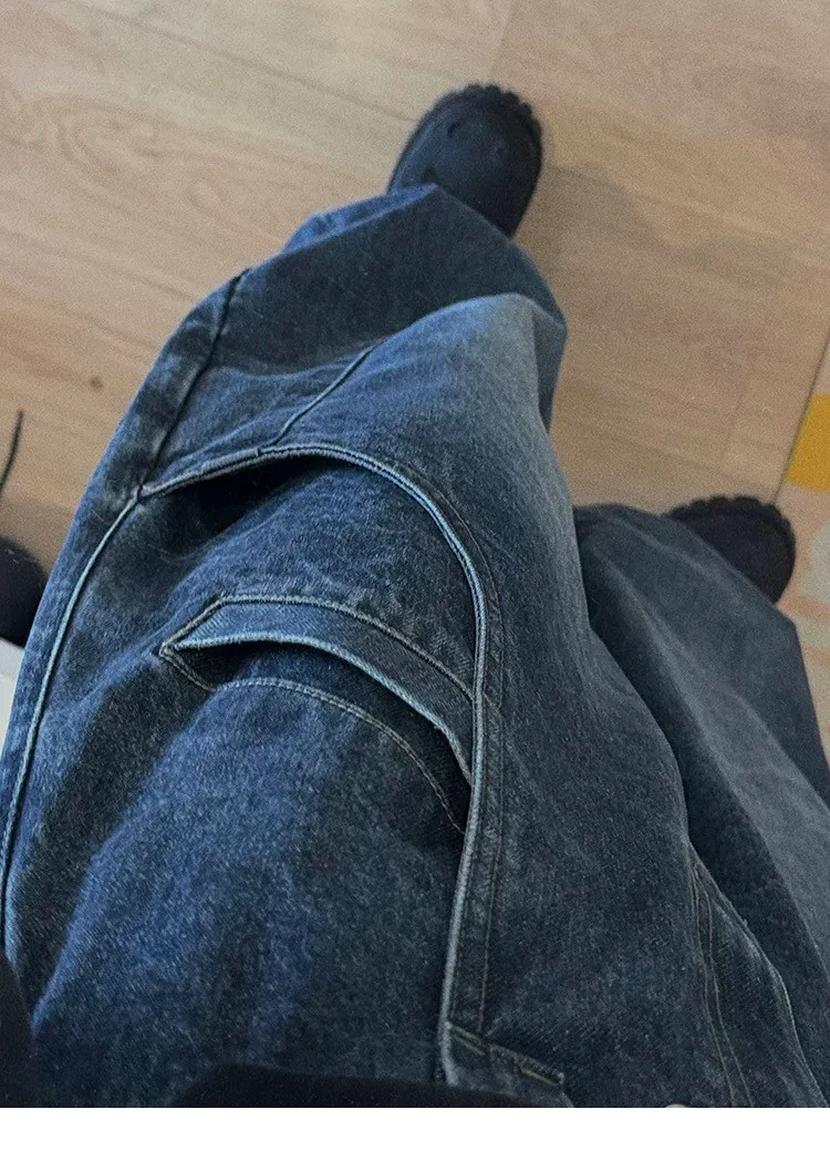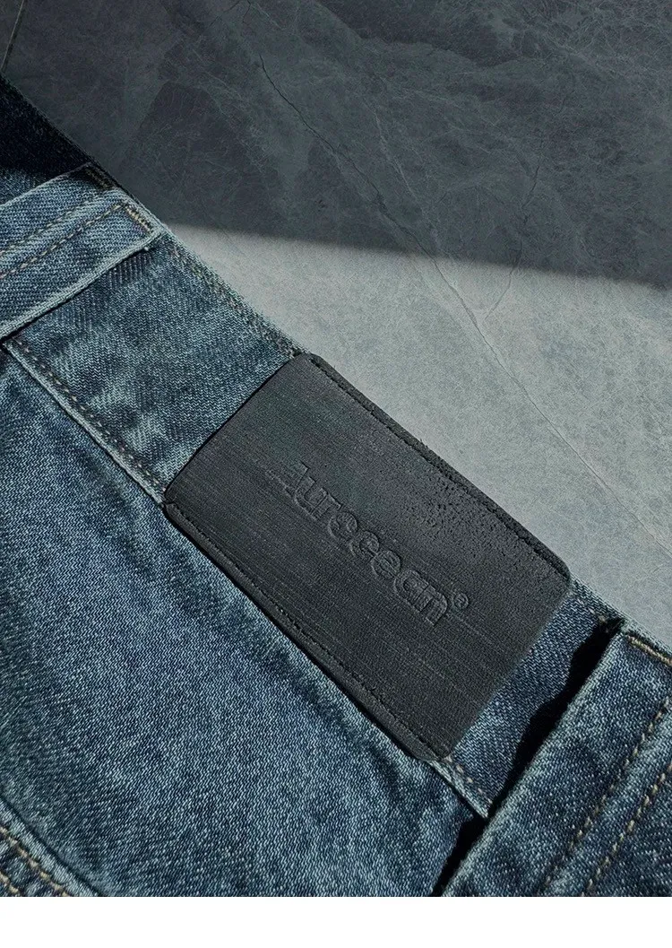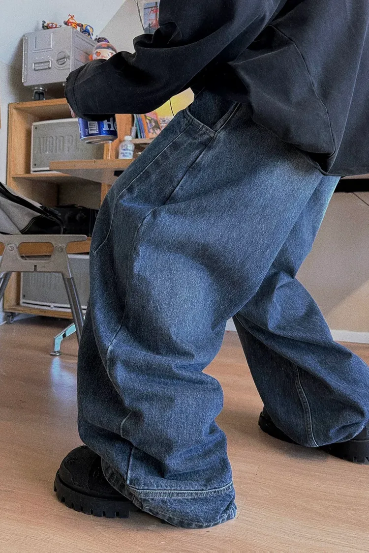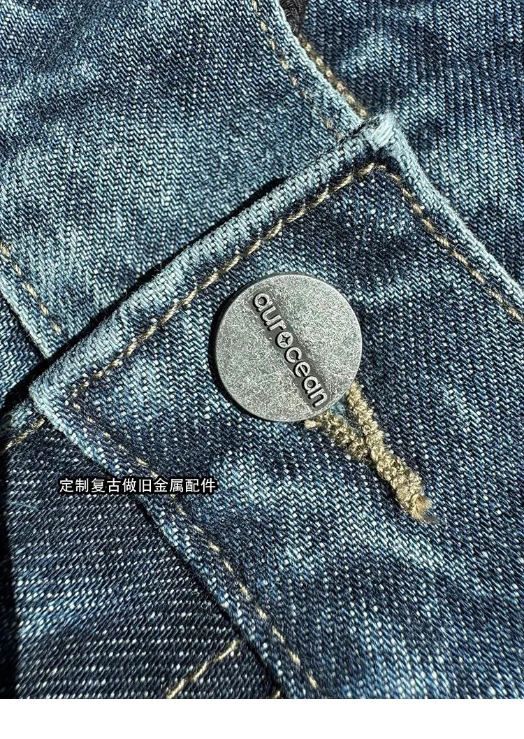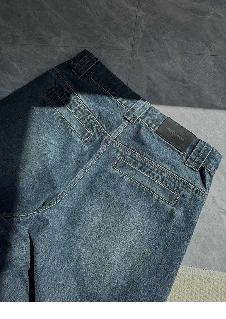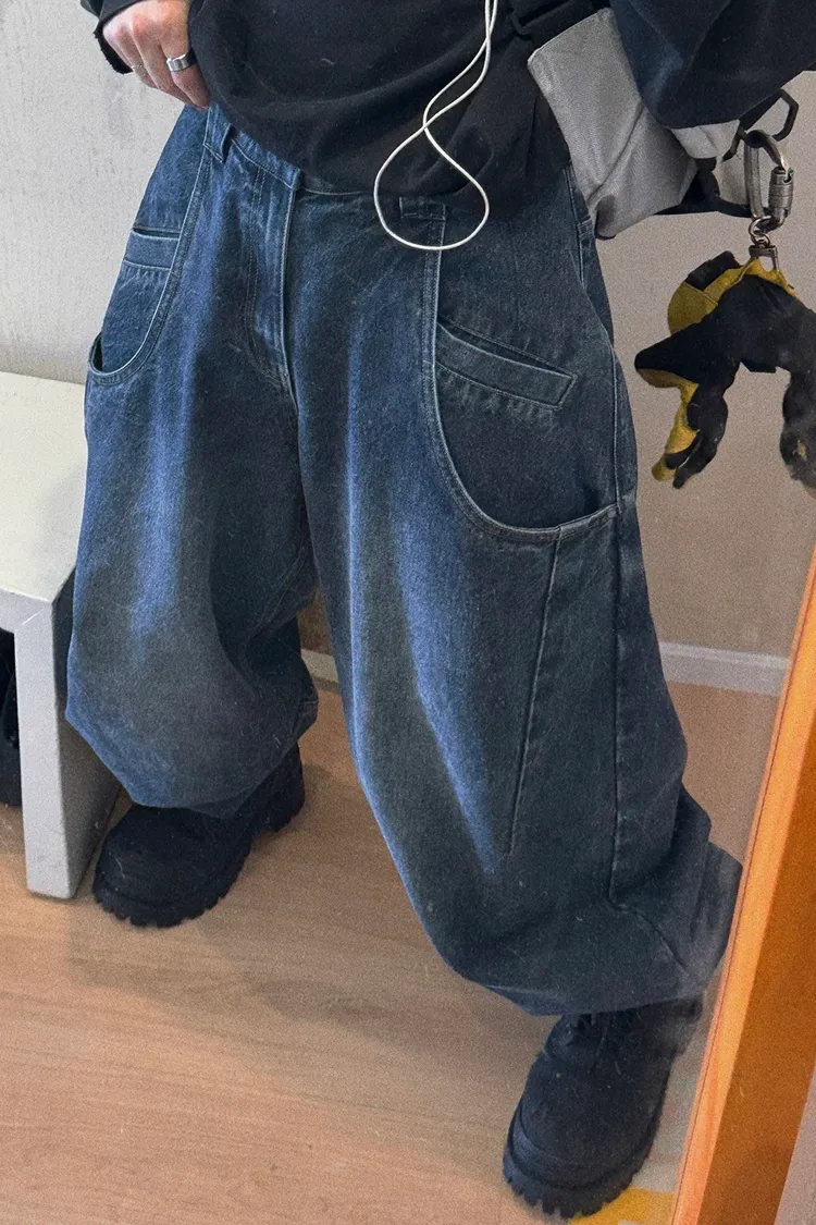 AUROCEAN 立體廓形 雙層口袋 彎刀 牛仔褲(深藍)