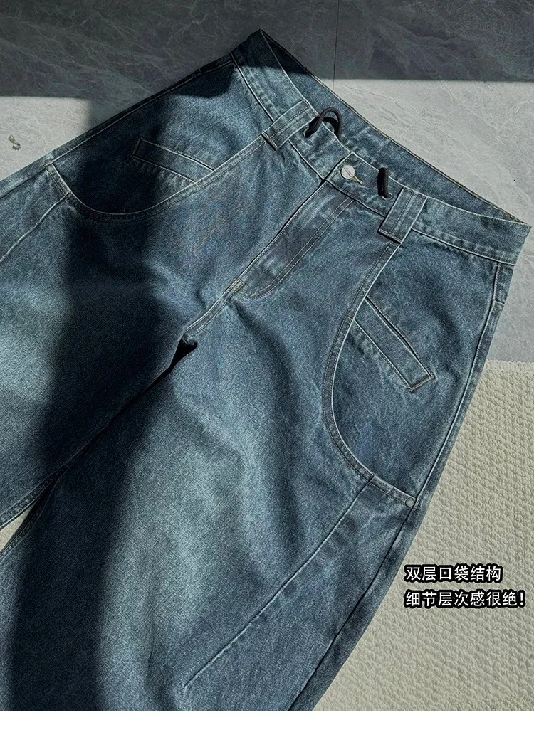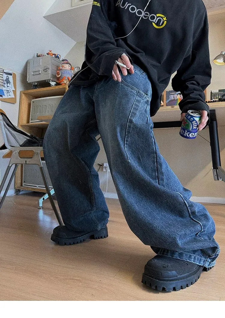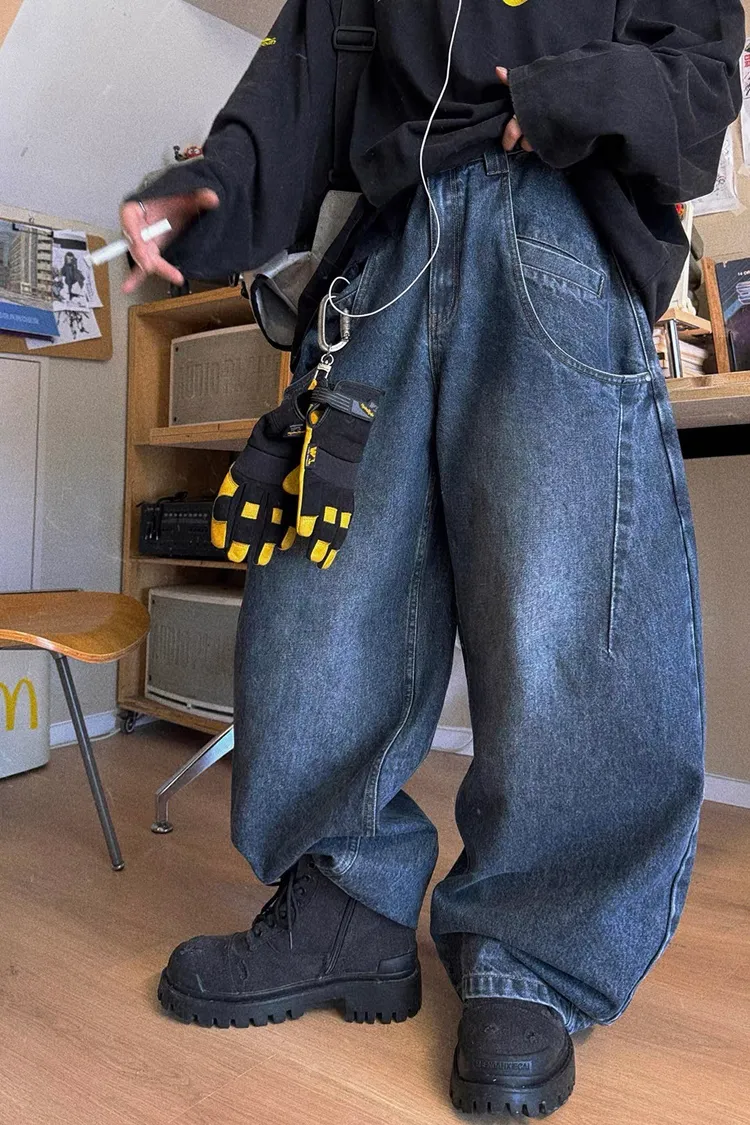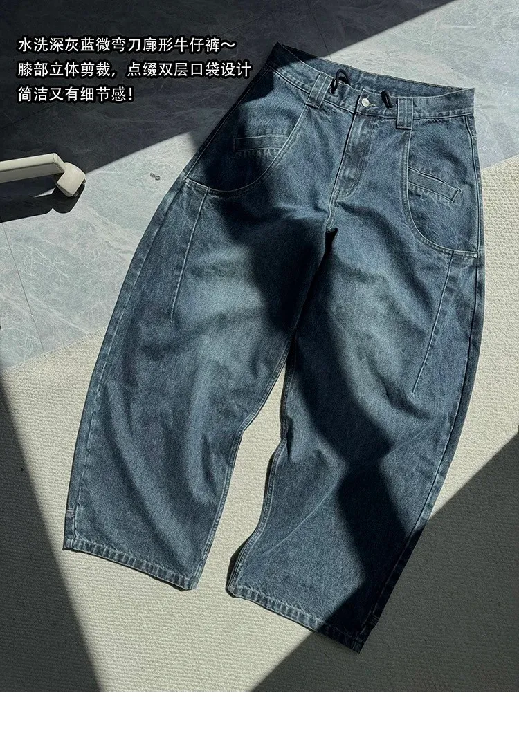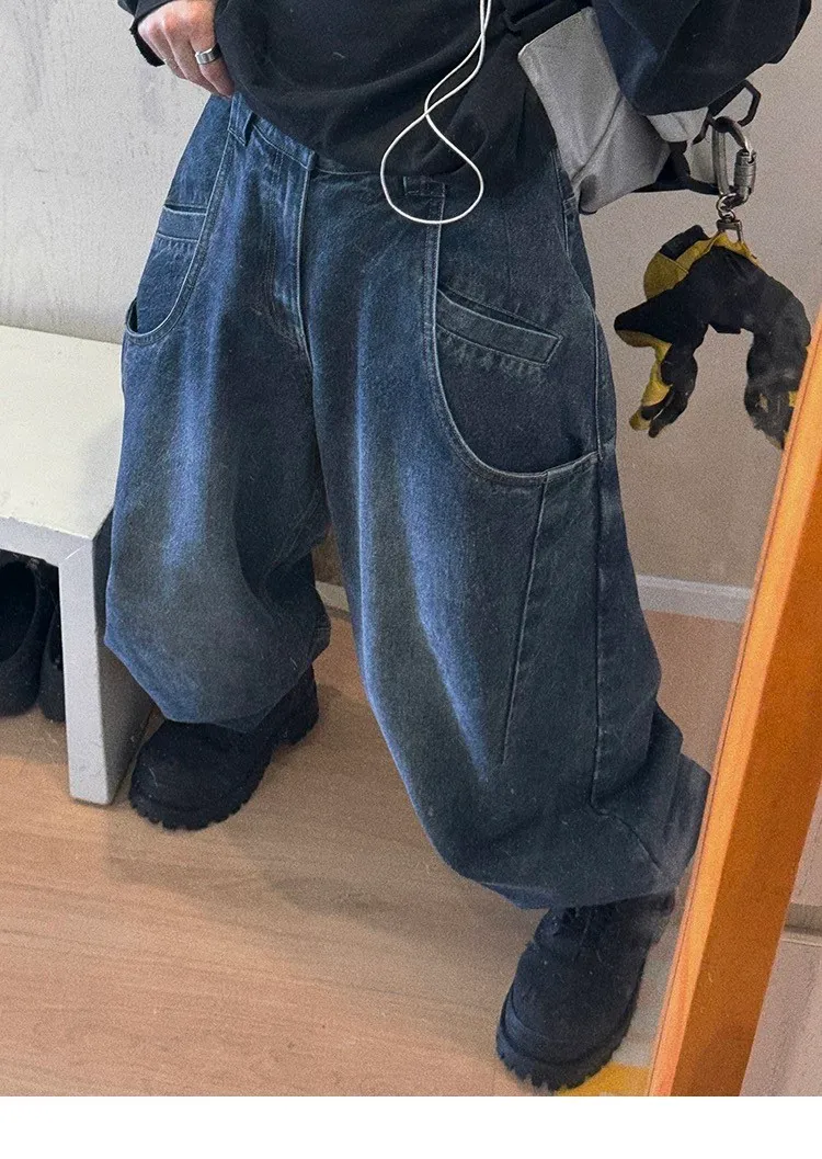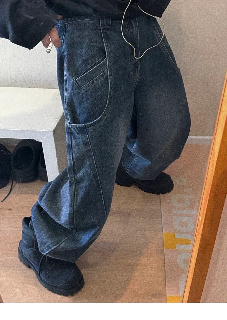 AUROCEAN 立體廓形 雙層口袋 彎刀 牛仔褲(深藍)