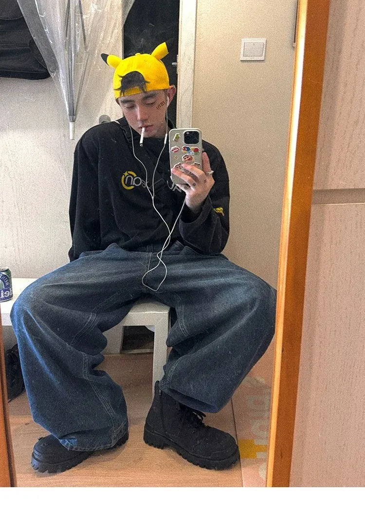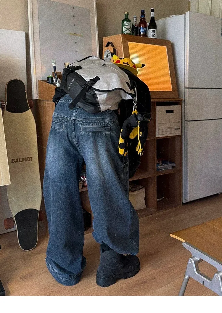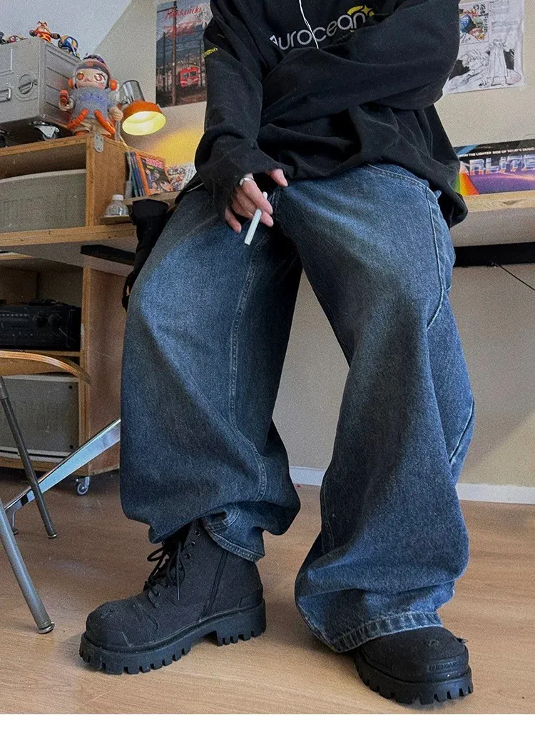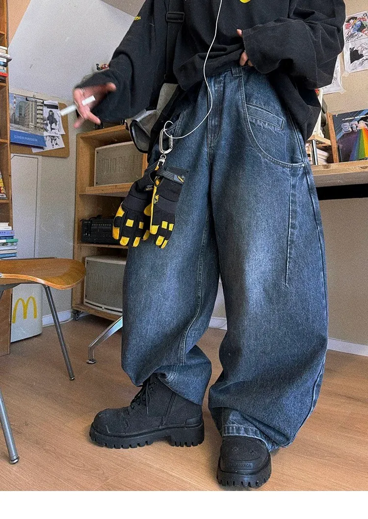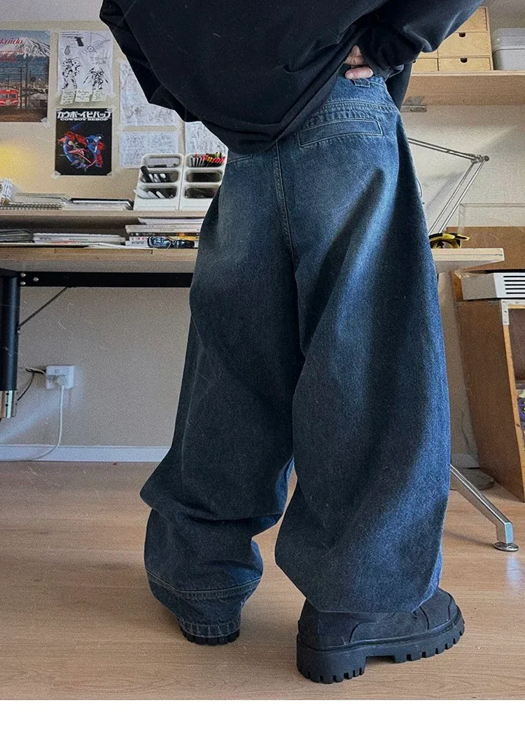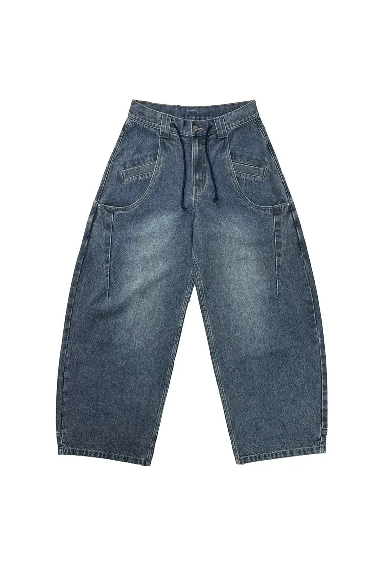 AUROCEAN 立體廓形 雙層口袋 彎刀 牛仔褲(深藍)