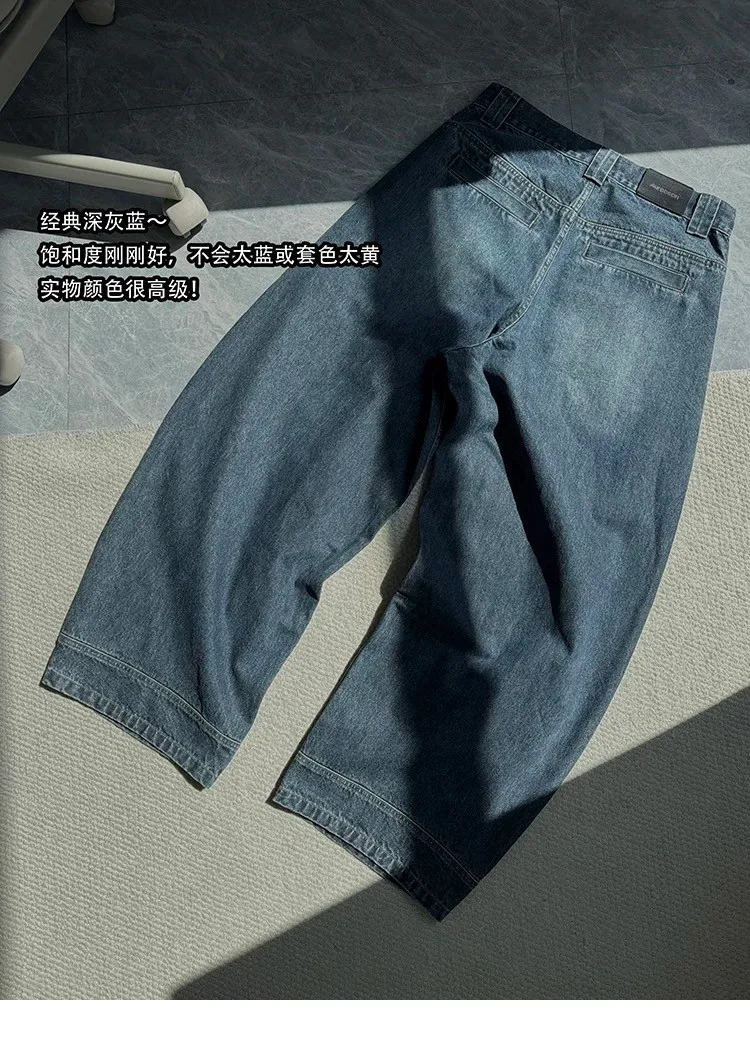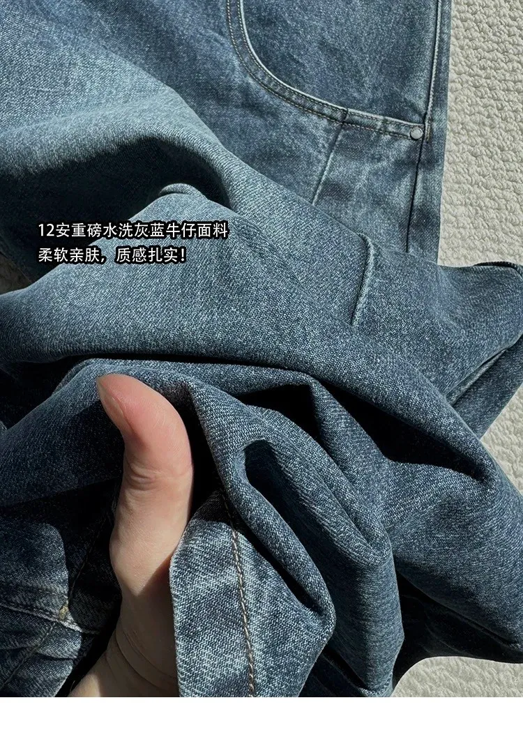AUROCEAN 多口袋解構 竹節水洗 牛仔褲 七分褲(灰藍)