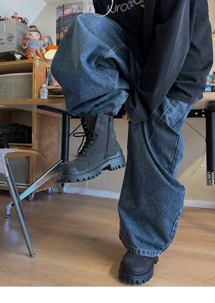 ARGUE 雙層褲頭 重磅闊腿 牛仔褲(黑色)