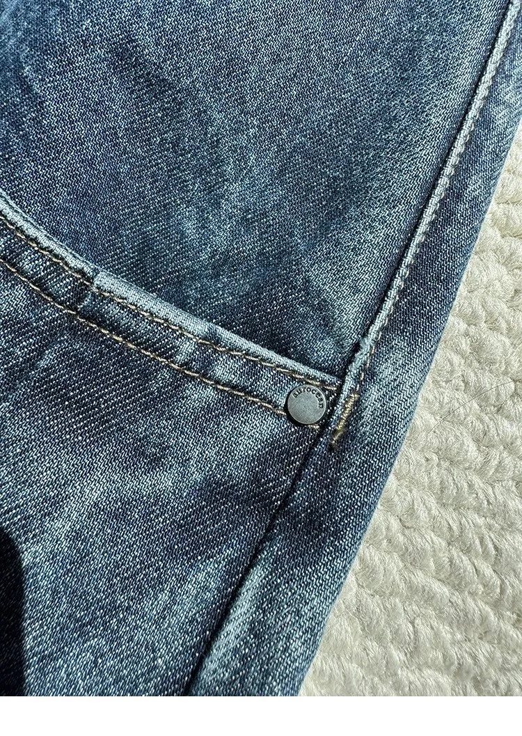 ARGUE 亮片刺繡 抽鬚 牛仔褲(藍色)