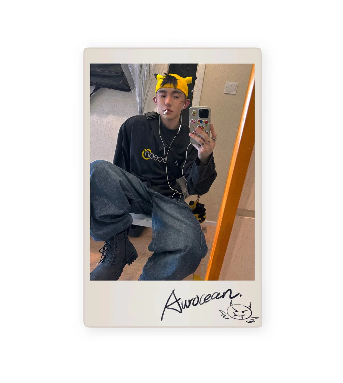 AUROCEAN 立體廓形 雙層口袋 彎刀 牛仔褲(淺藍)