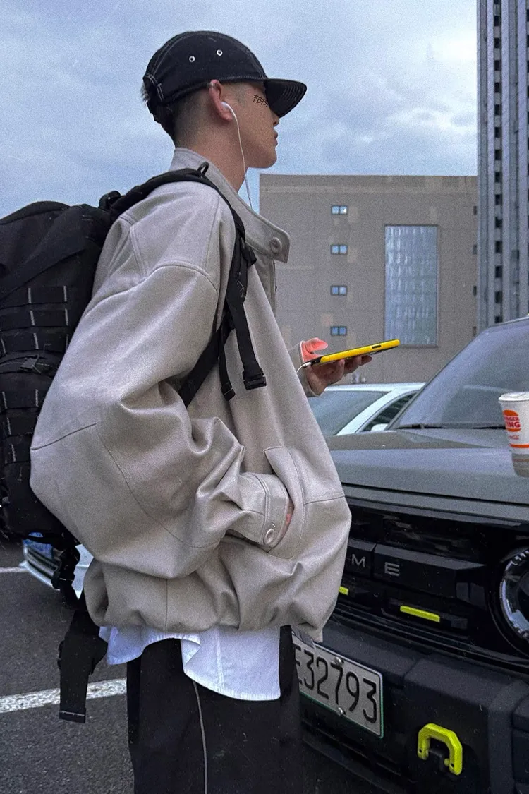 ARGUE 古典輪廓 撞色翻領 工裝 外套(黑/灰/杏)