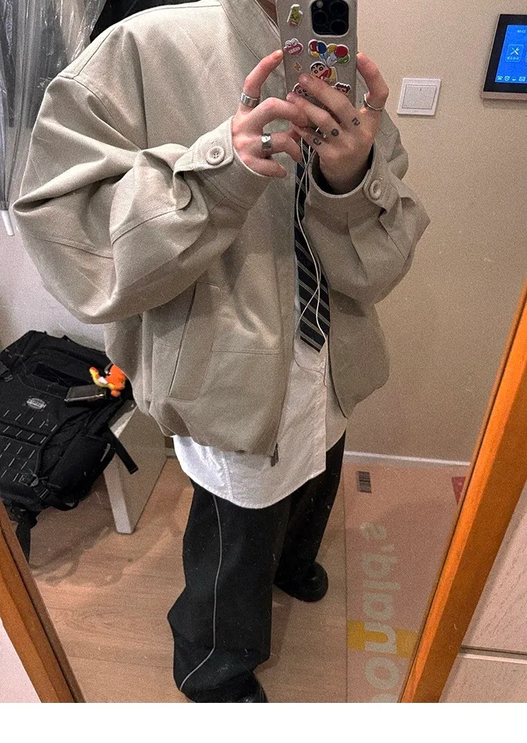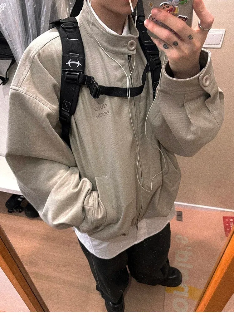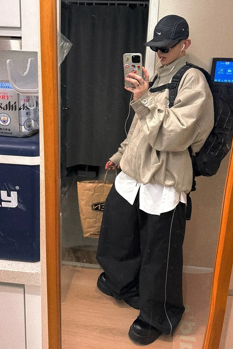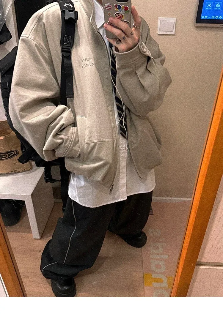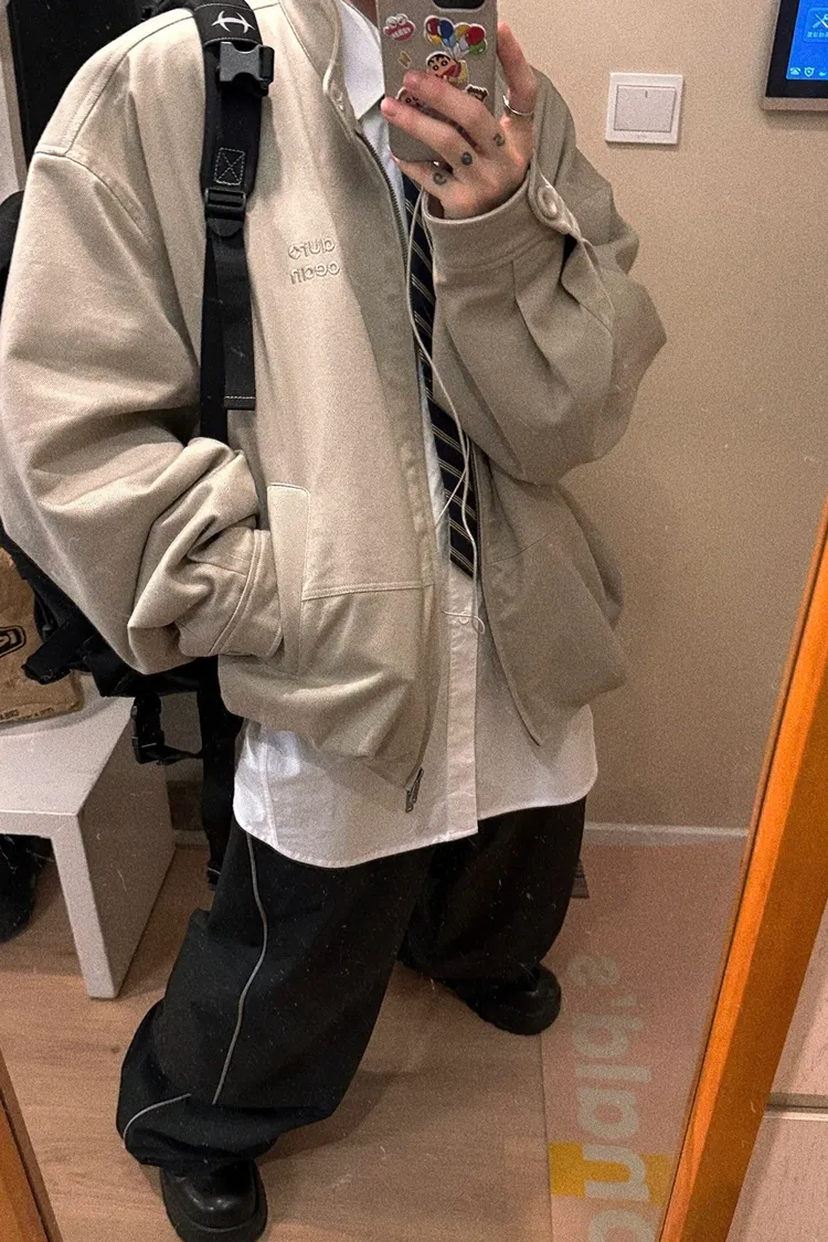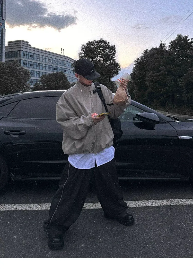 ARGUE 復古水洗 哈靈頓 水洗寬短 外套 解構 長褲 套裝(卡其/黑)