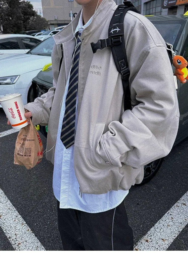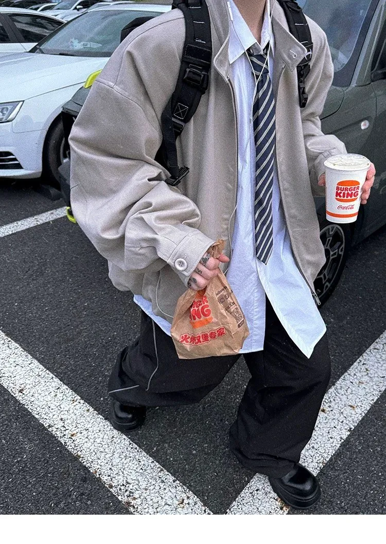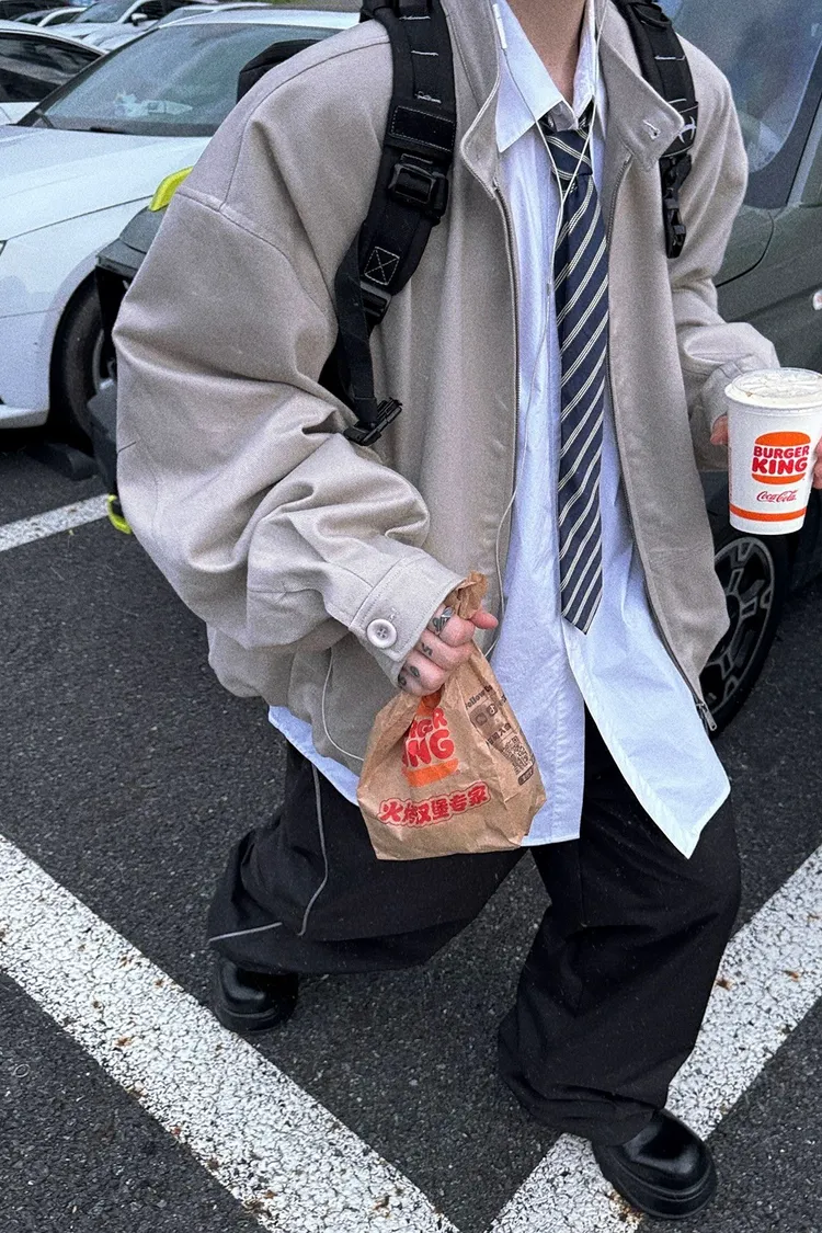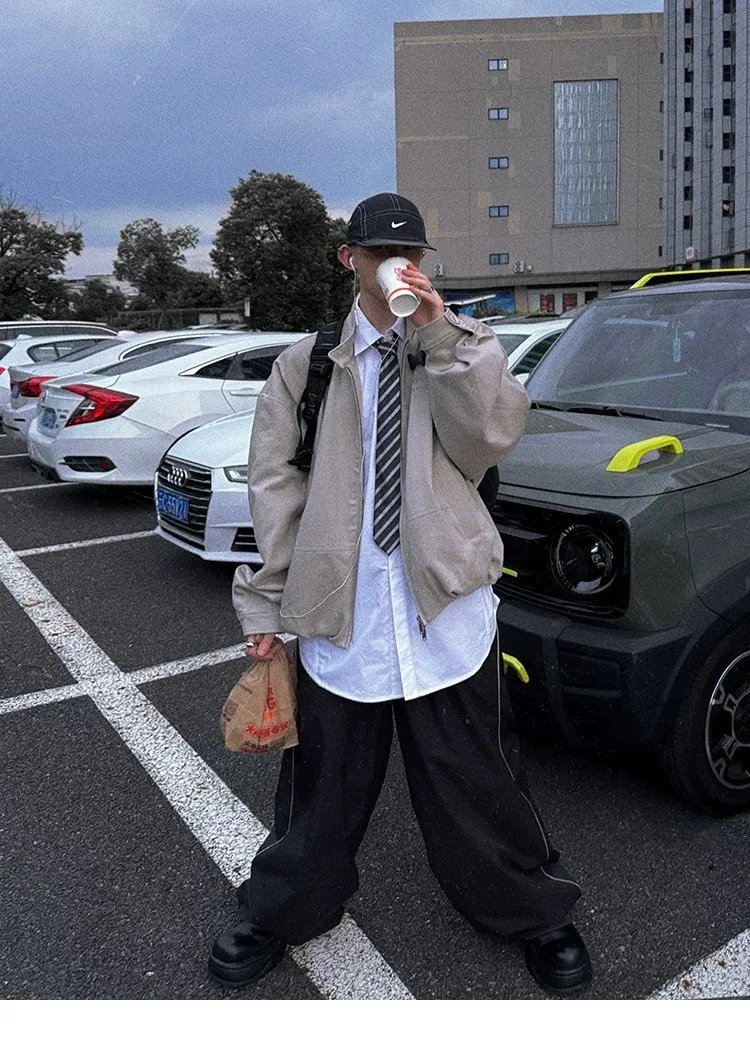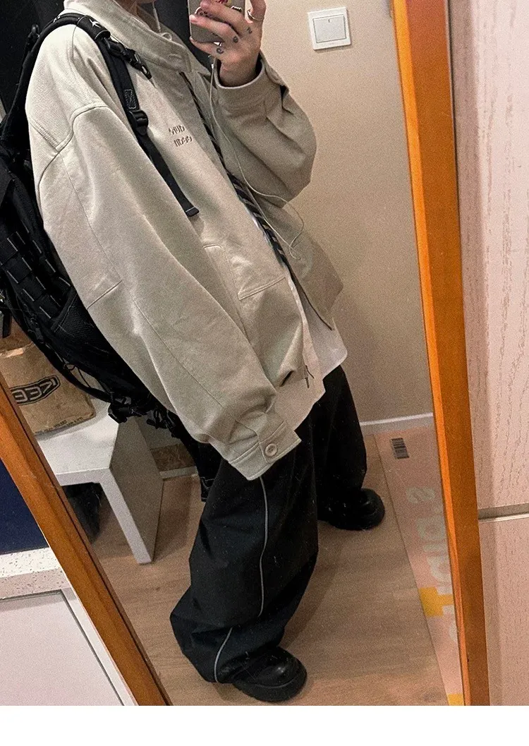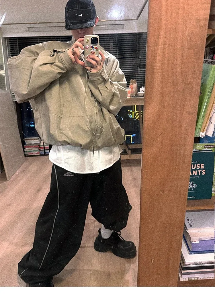 ARGUE 復古水洗 哈靈頓 水洗寬短 外套 解構 長褲 套裝(卡其/黑)
