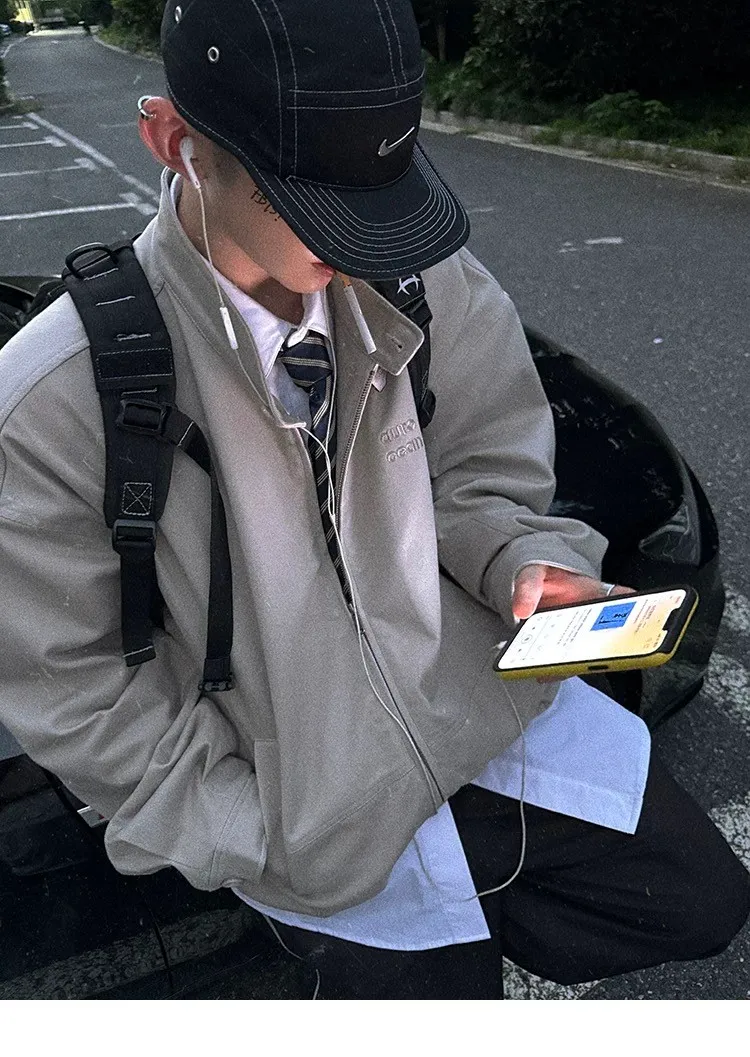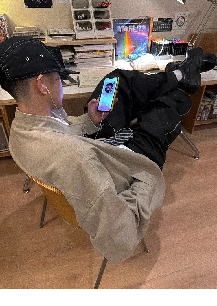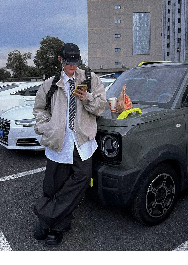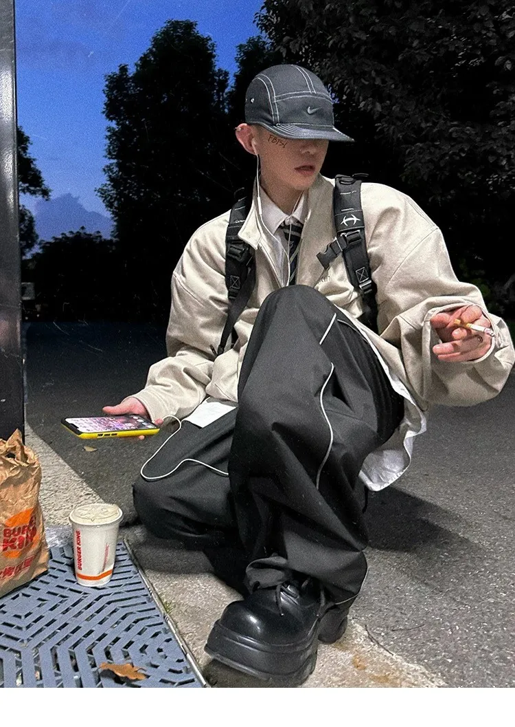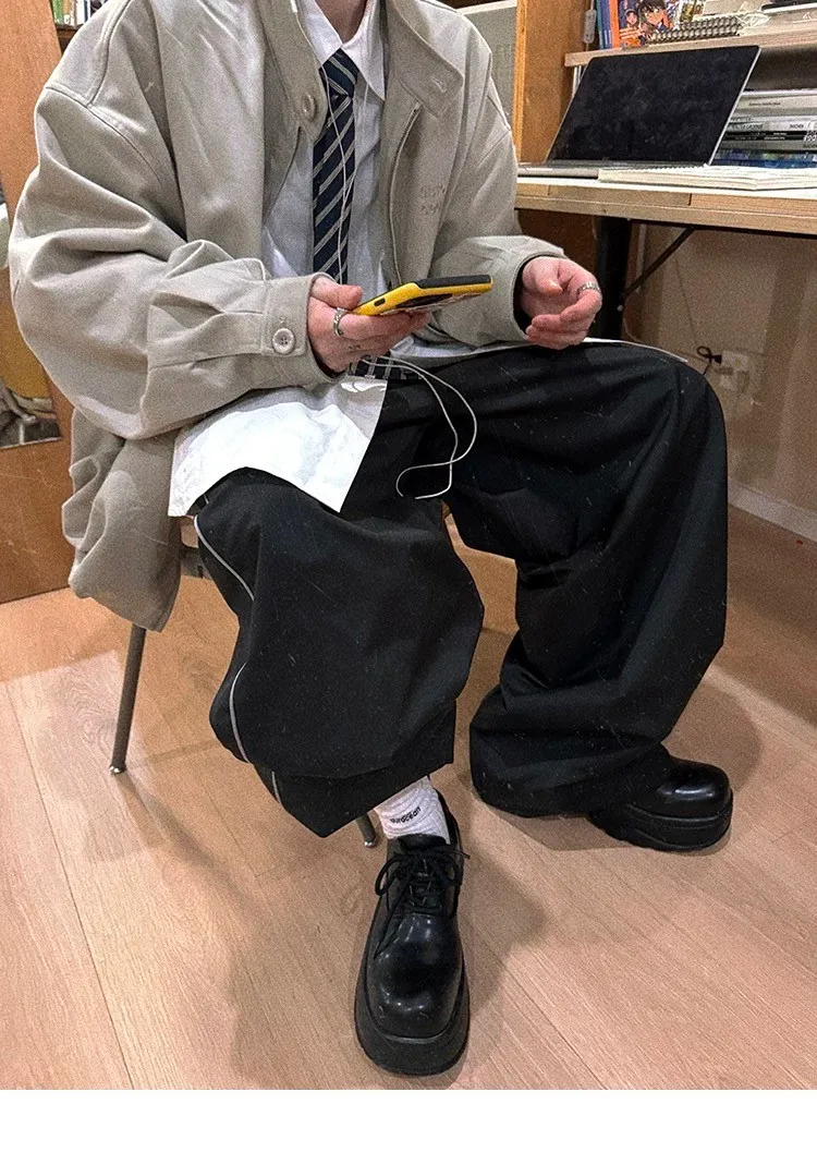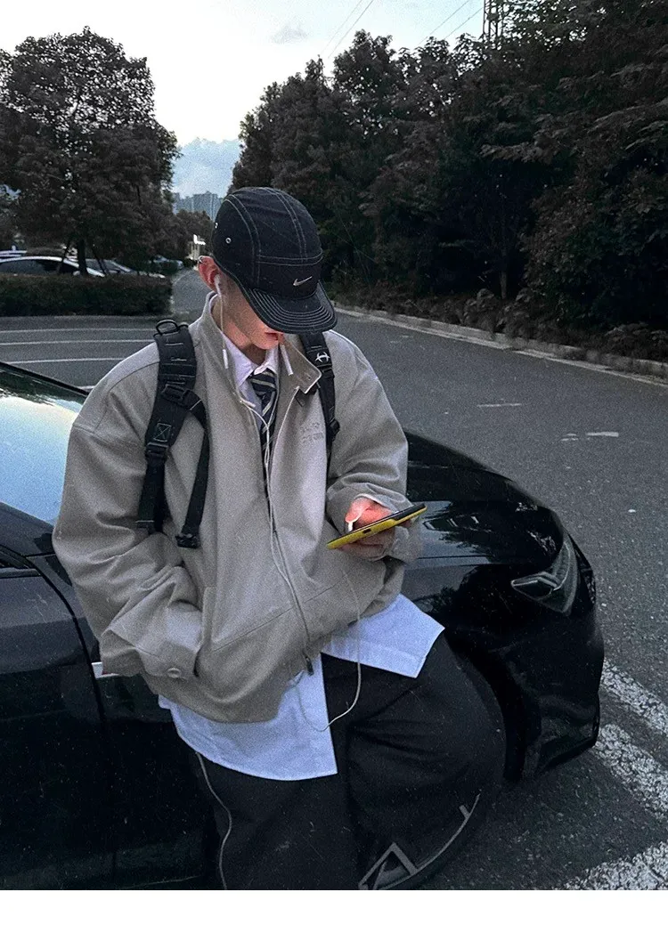ARGUE 復古水洗 哈靈頓 水洗寬短 外套 解構 長褲 套裝(卡其/黑)