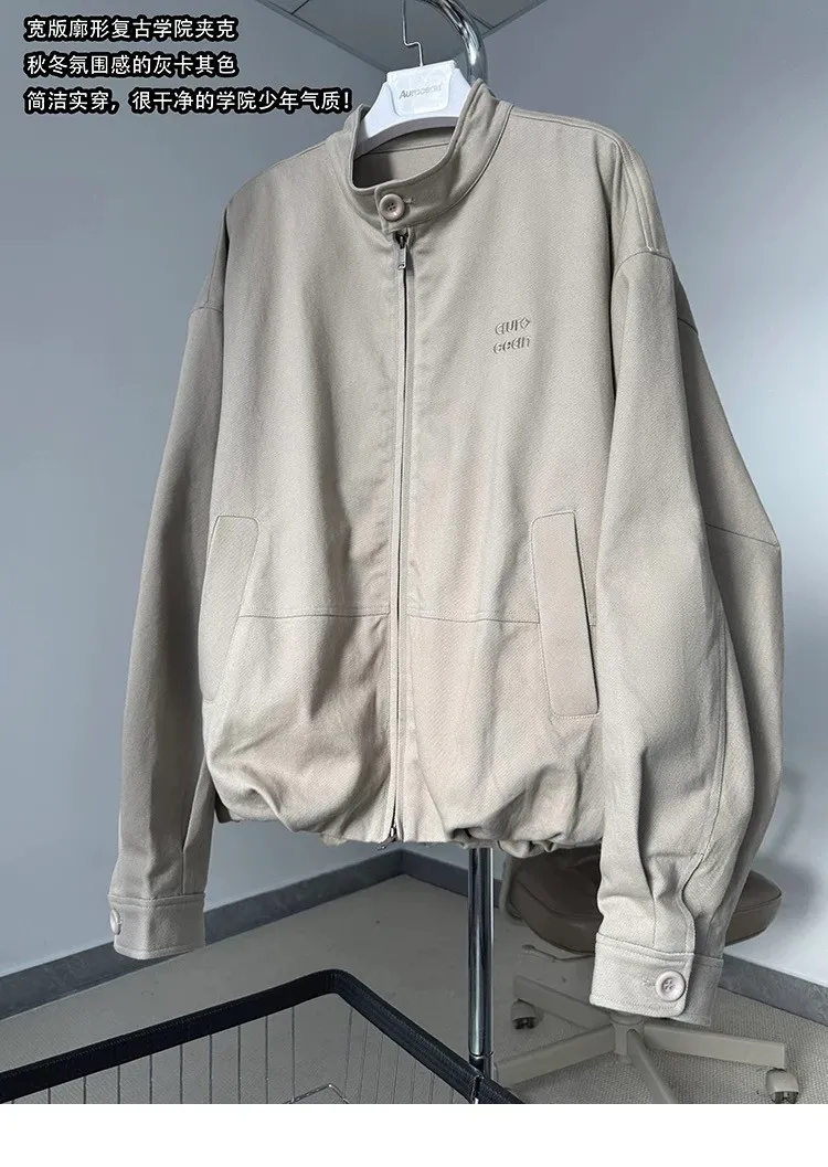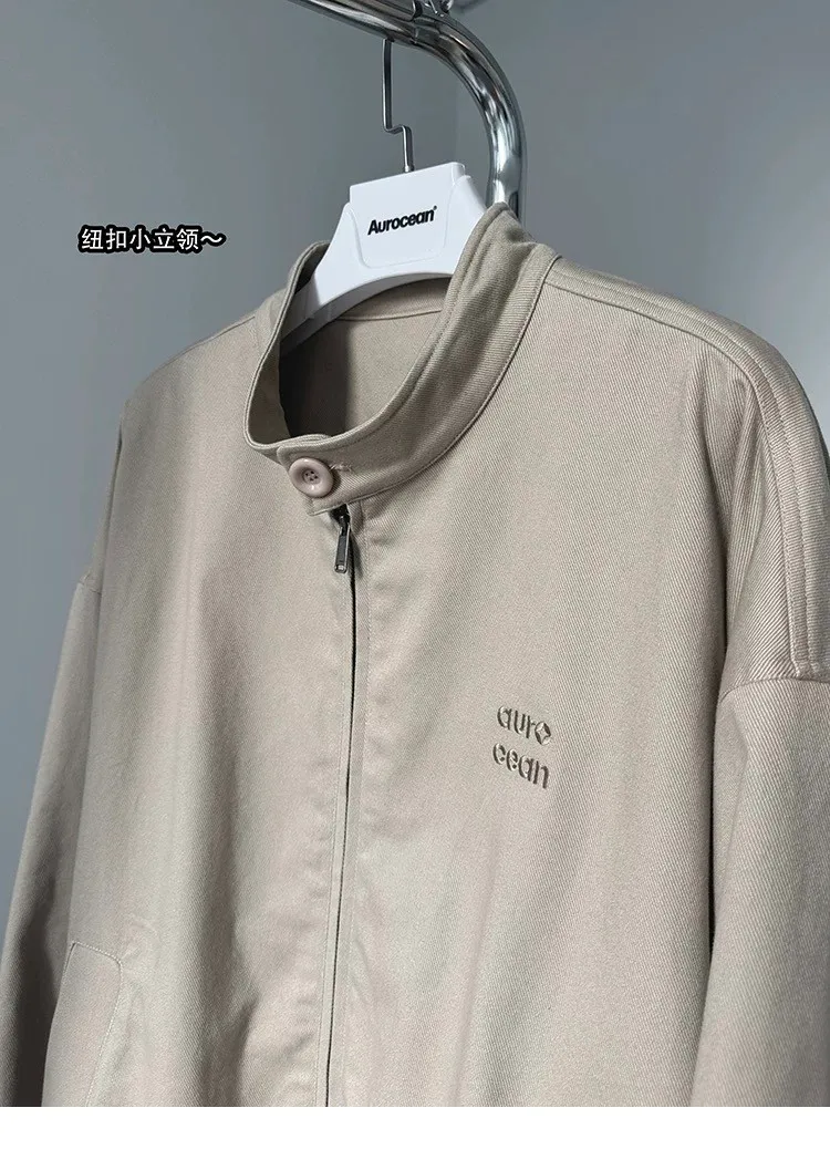 AUROCEAN 復古寬短 學院小立領 外套(卡其)