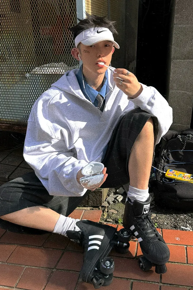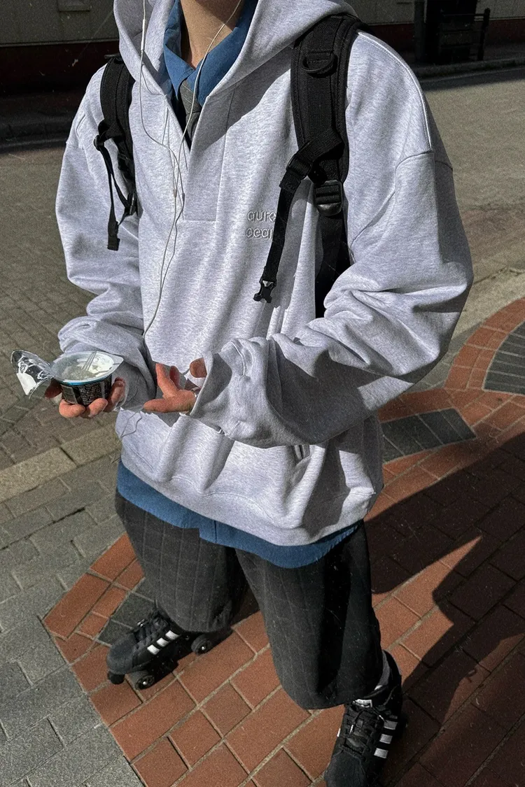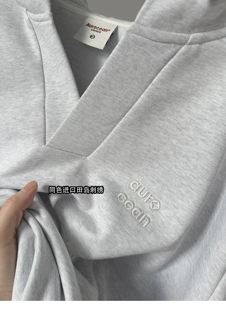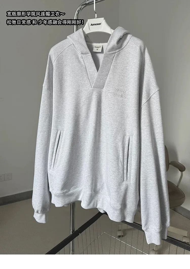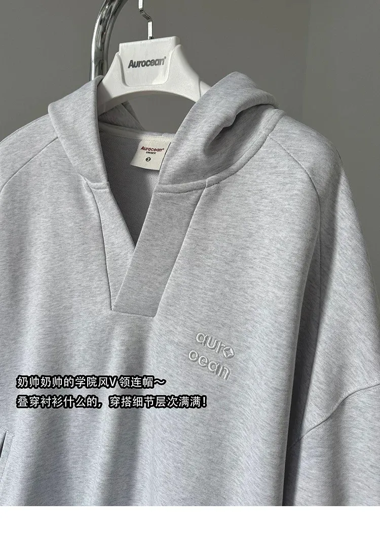 AUROCEAN 學院風 刺繡 重磅V領 帽踢(花灰)