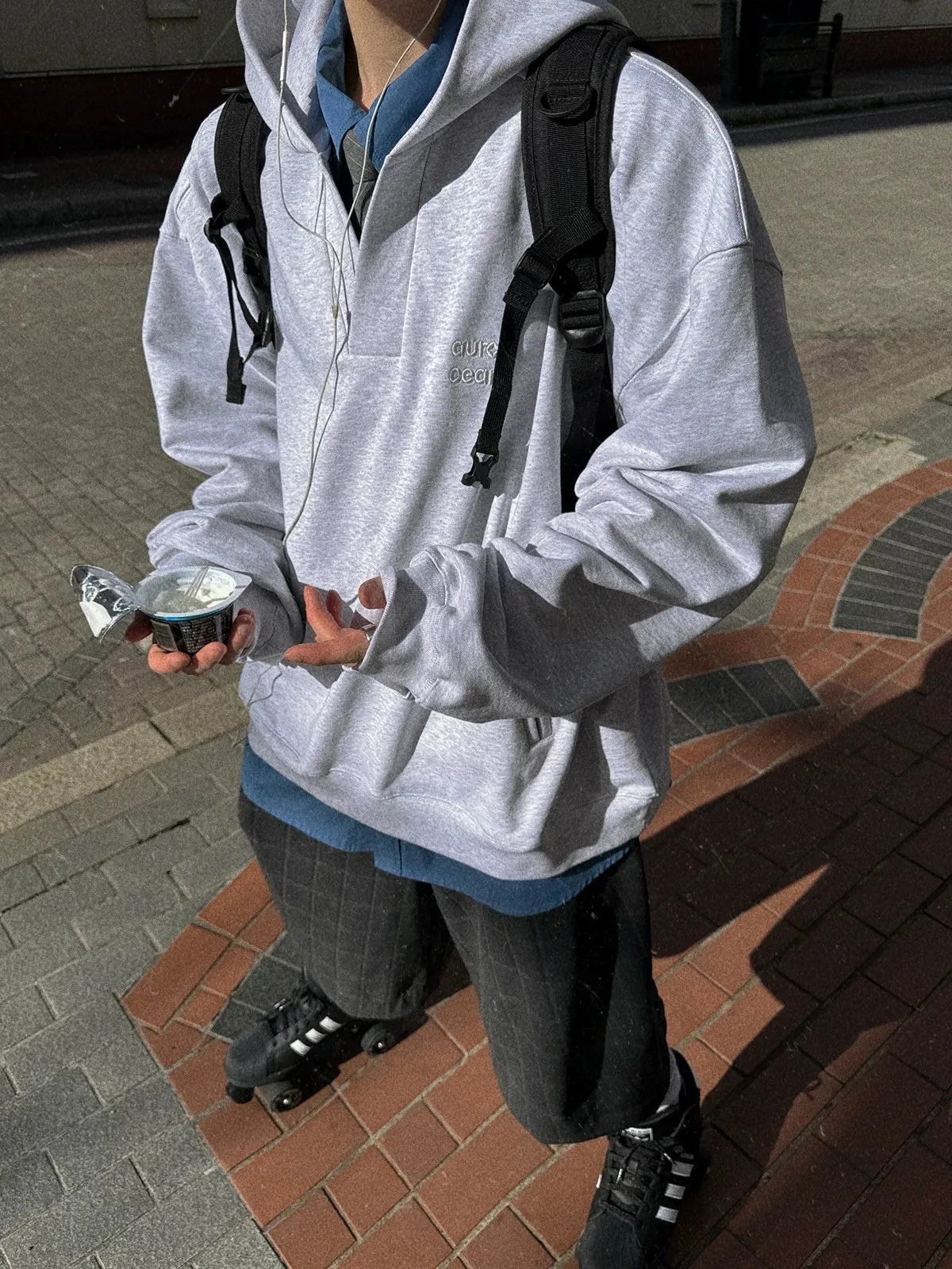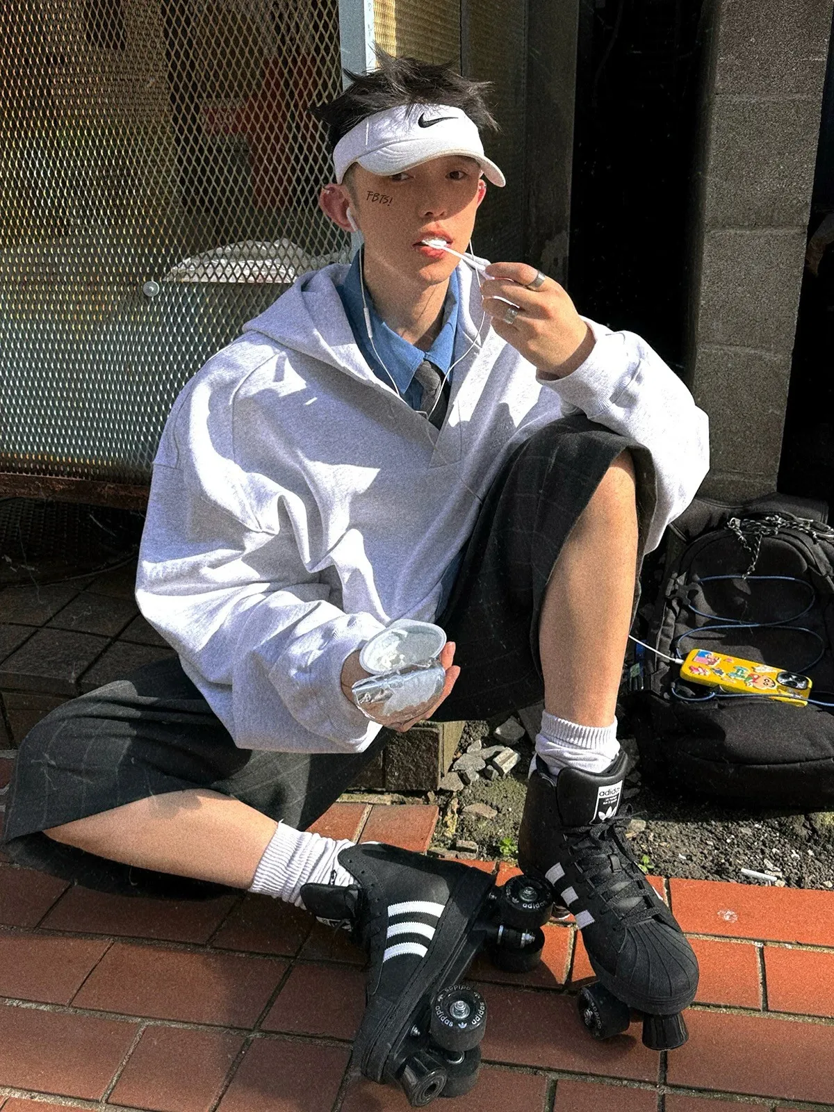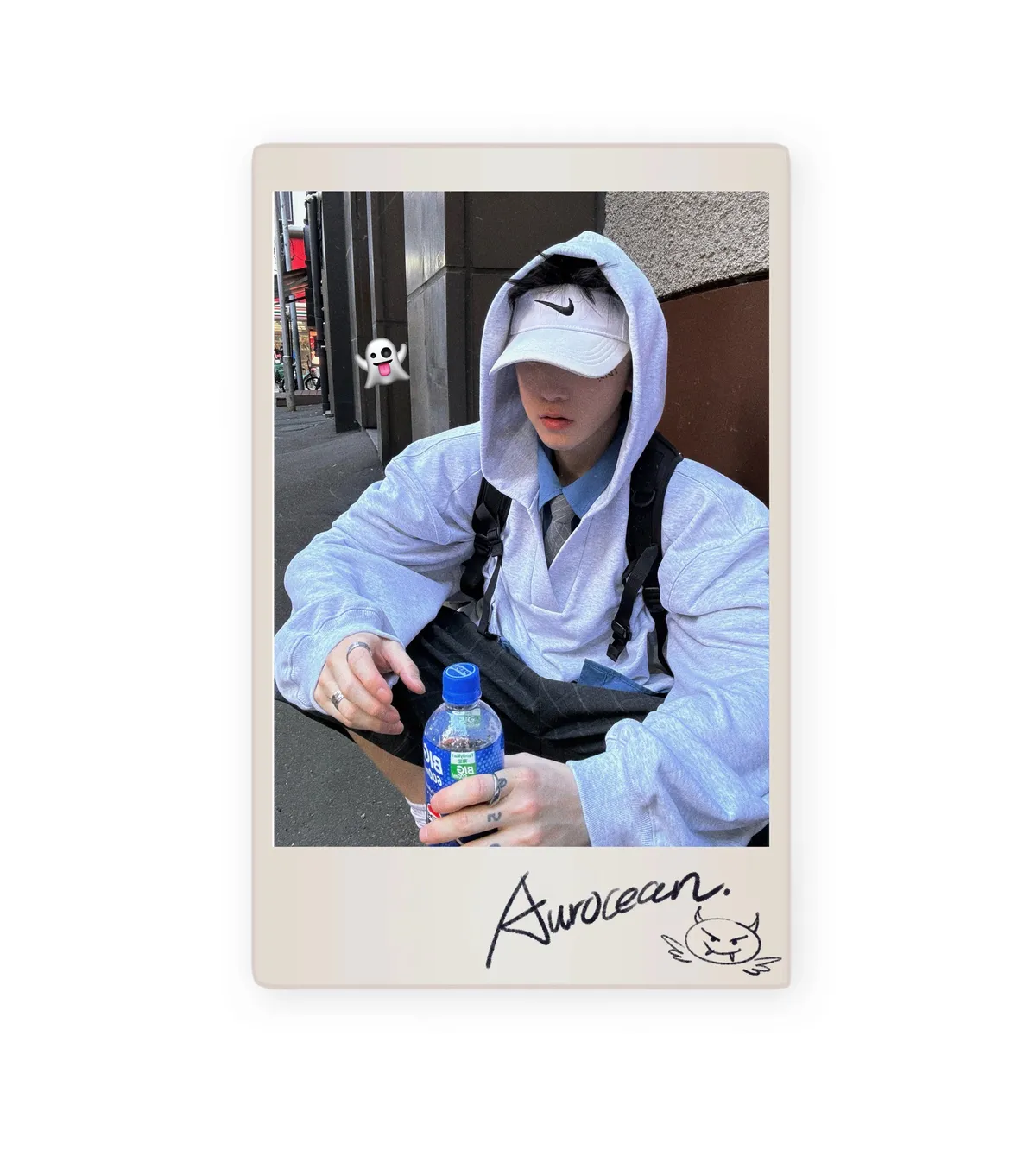 AUROCEAN 學院風 刺繡 重磅V領 帽踢(花灰)