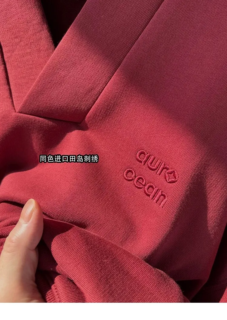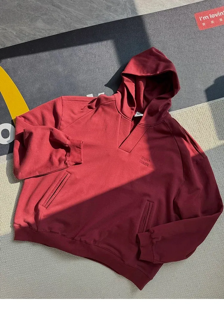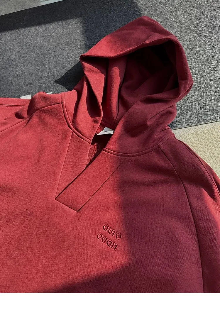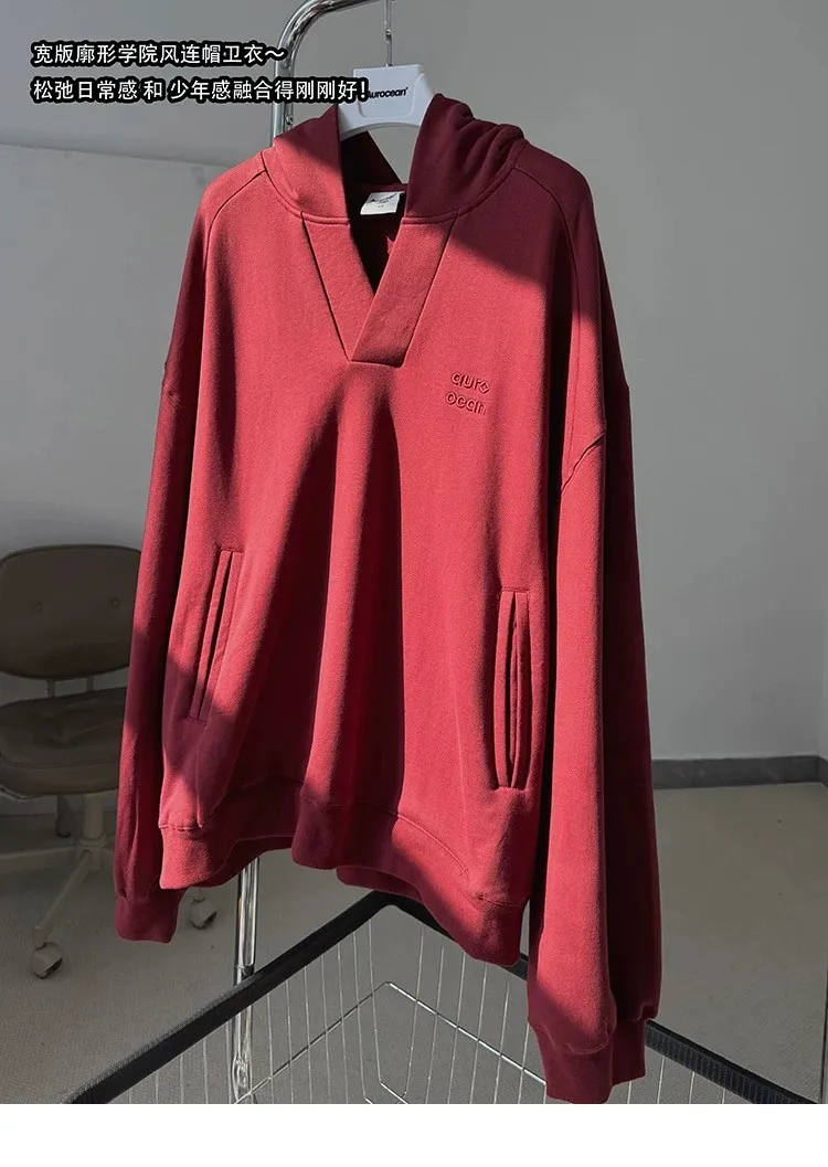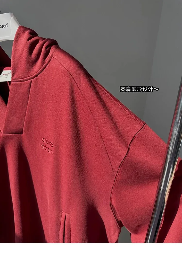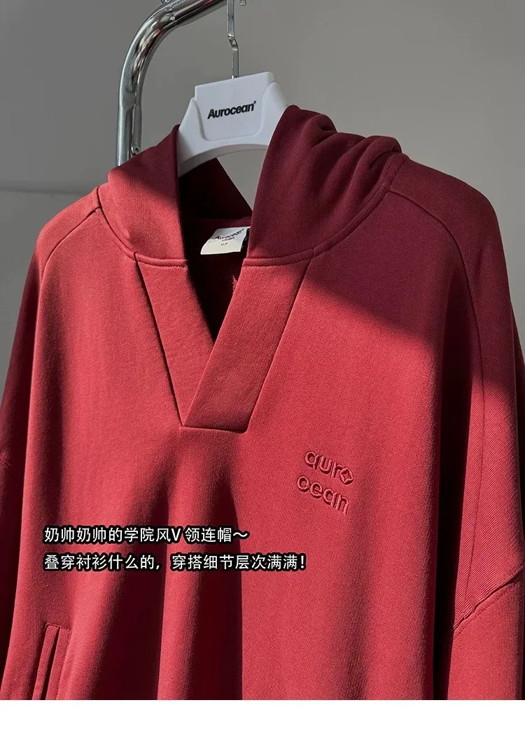 AUROCEAN 學院風 刺繡 重磅V領 帽踢(紅色)