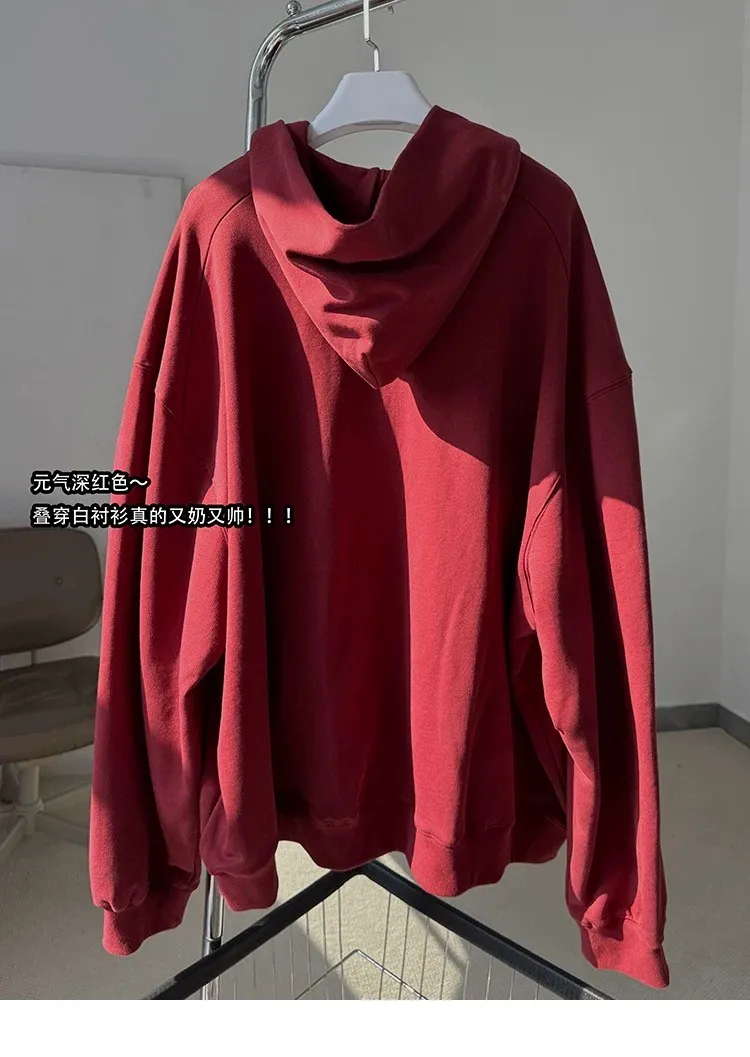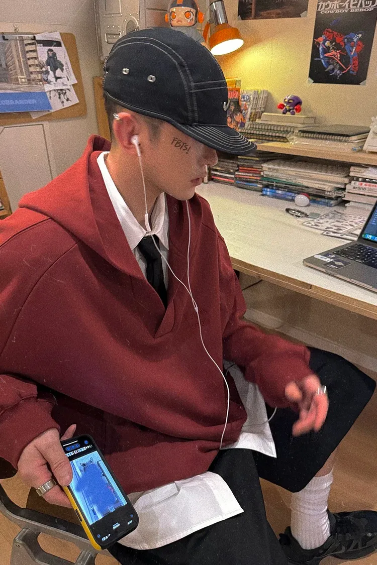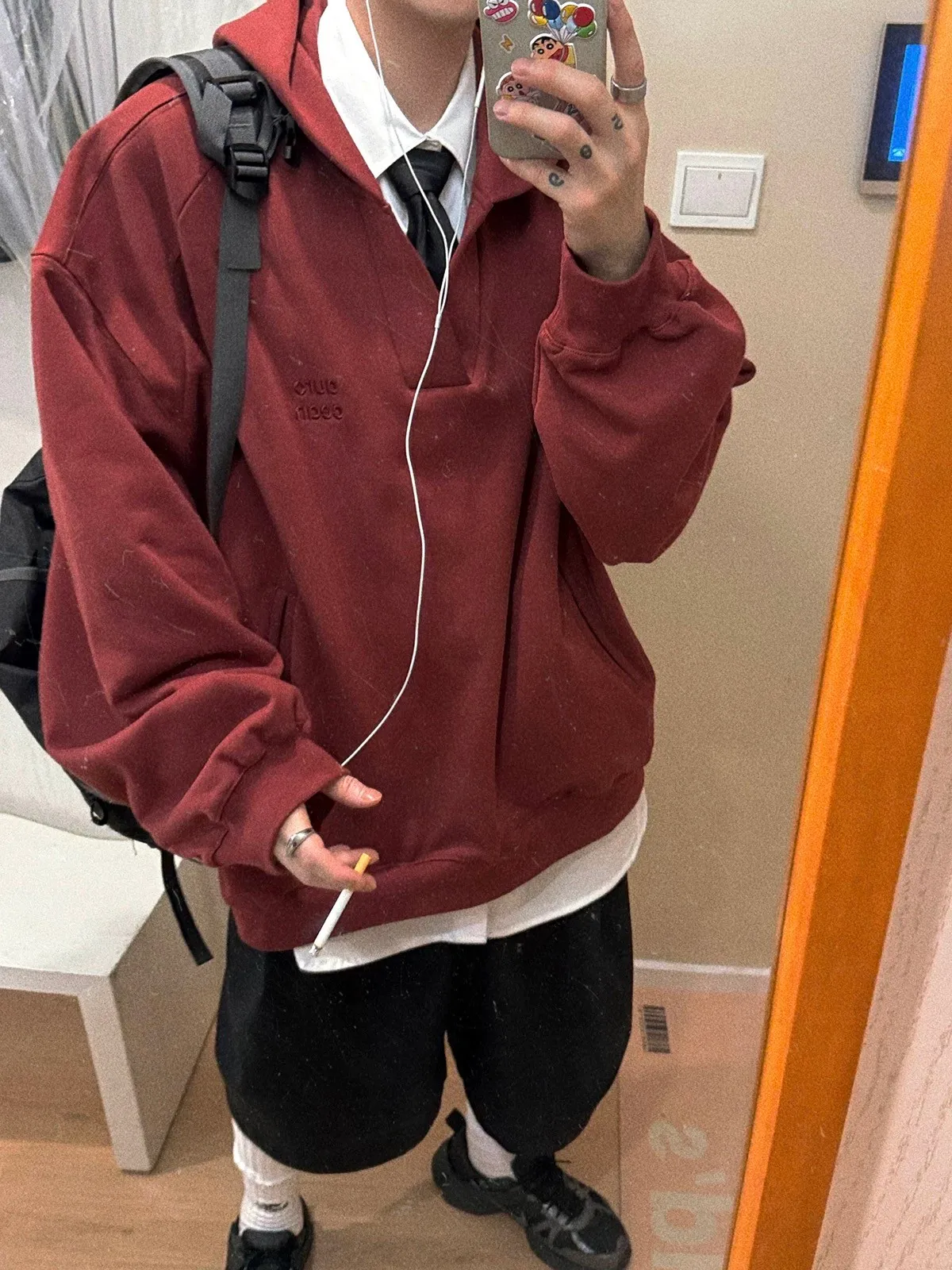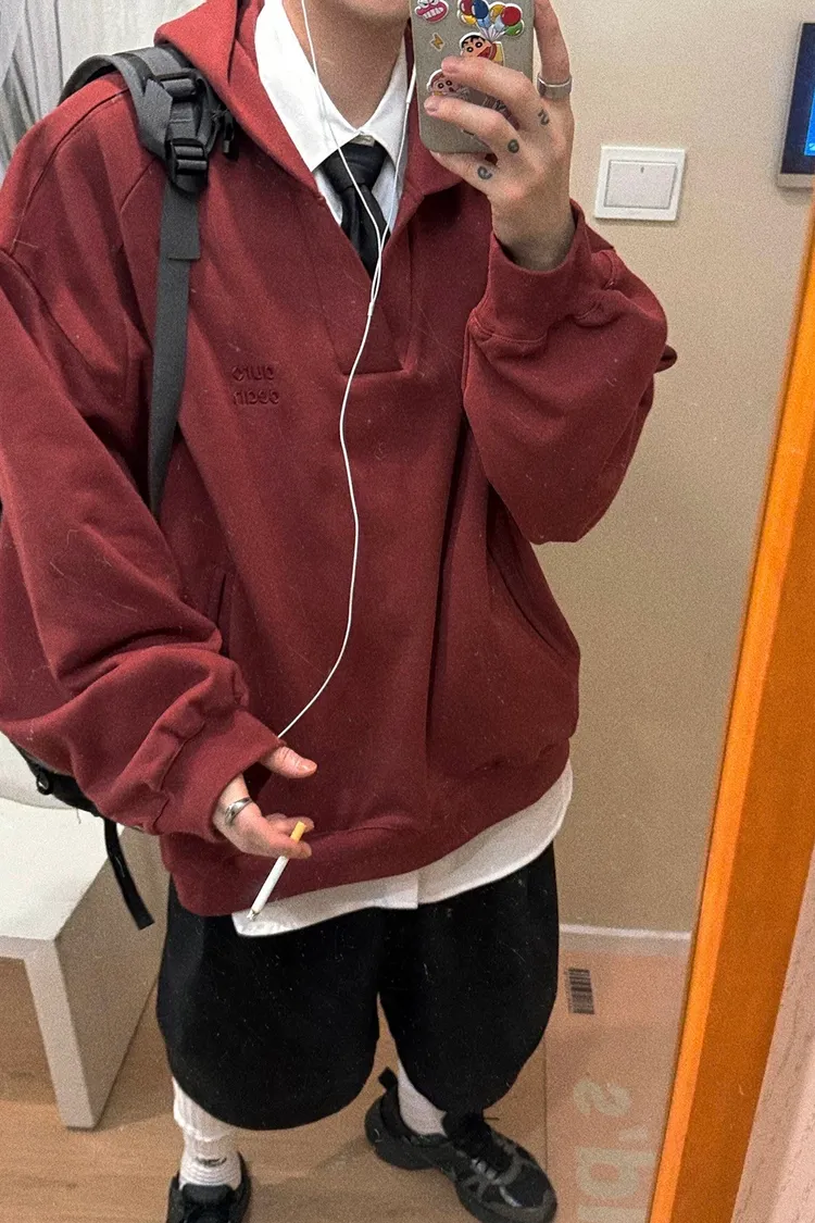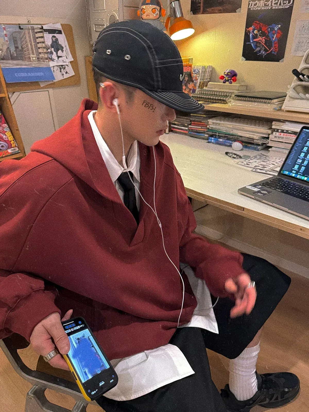 AUROCEAN 學院風 刺繡 重磅V領 帽踢(紅色)