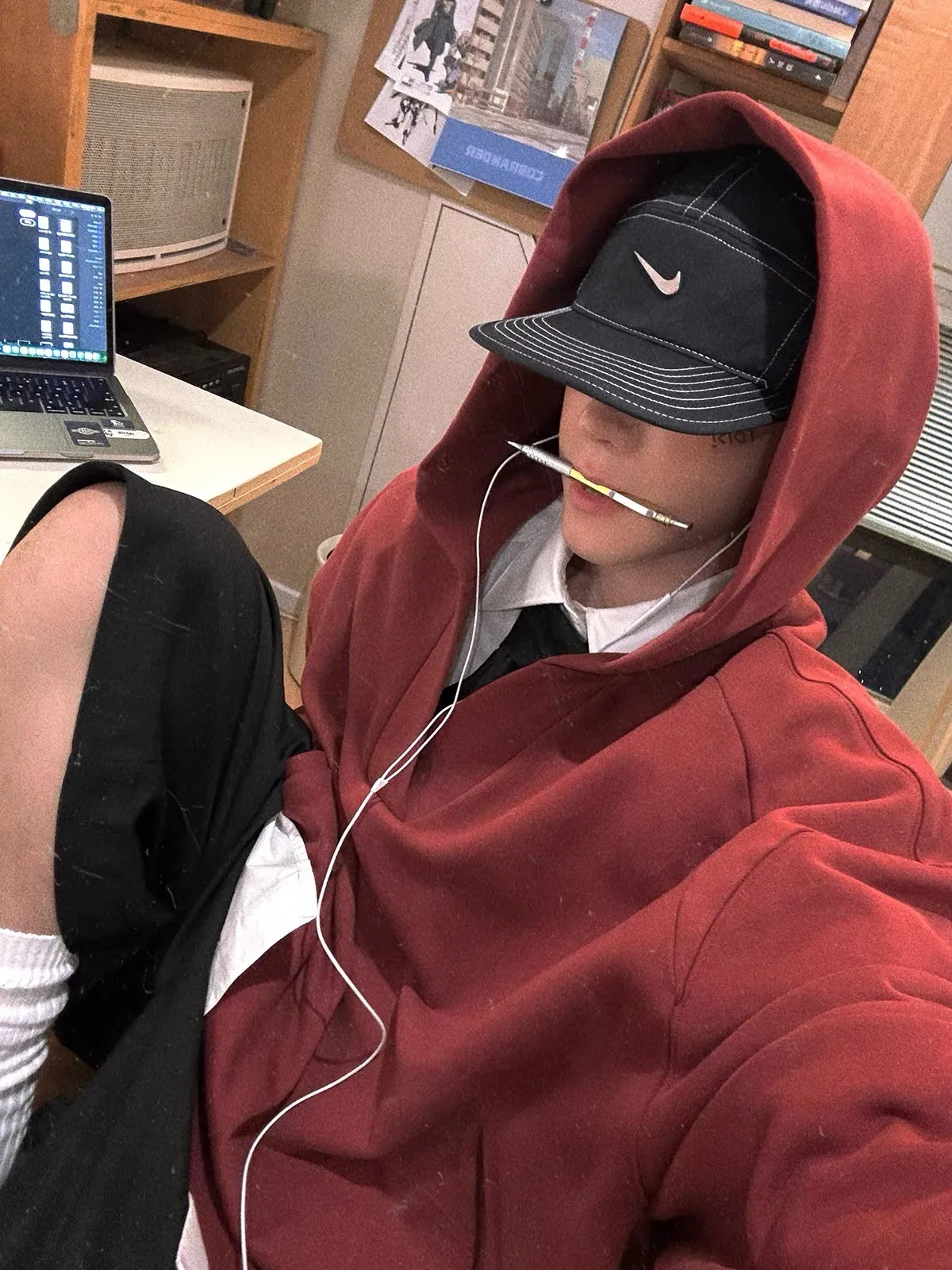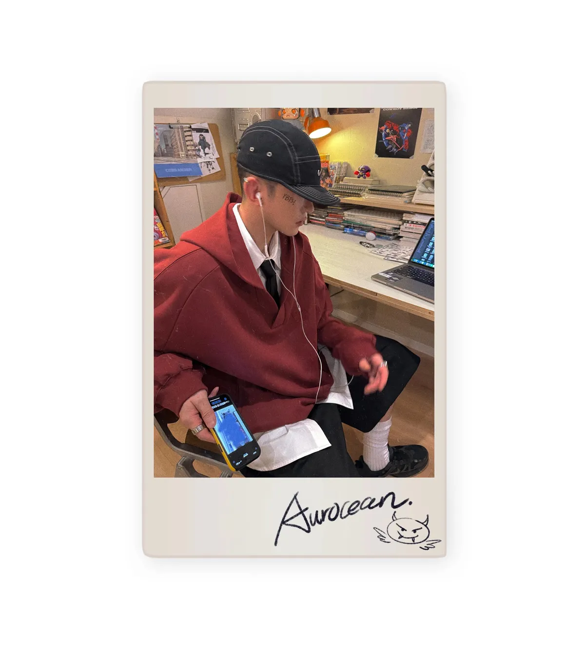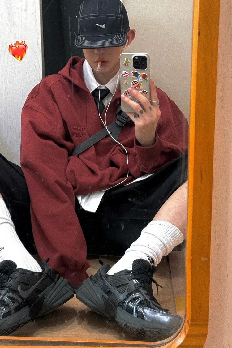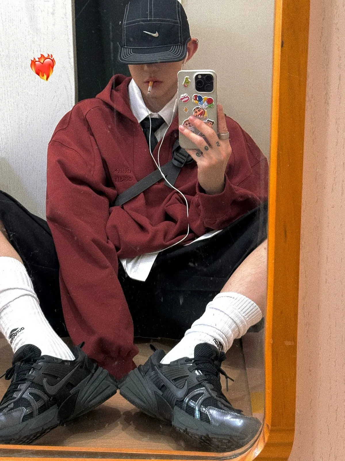 AUROCEAN 學院風 刺繡 重磅V領 帽踢(紅色)