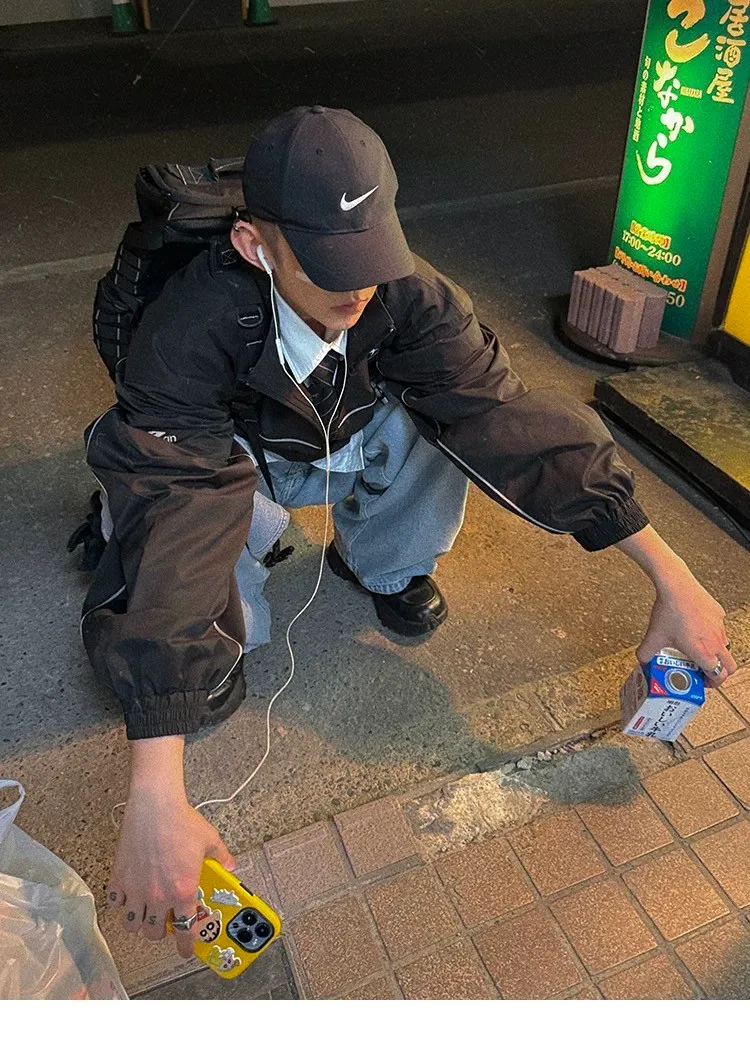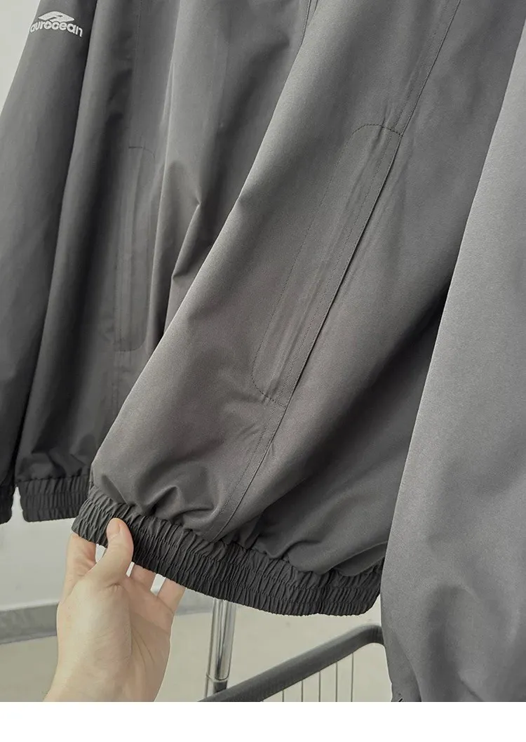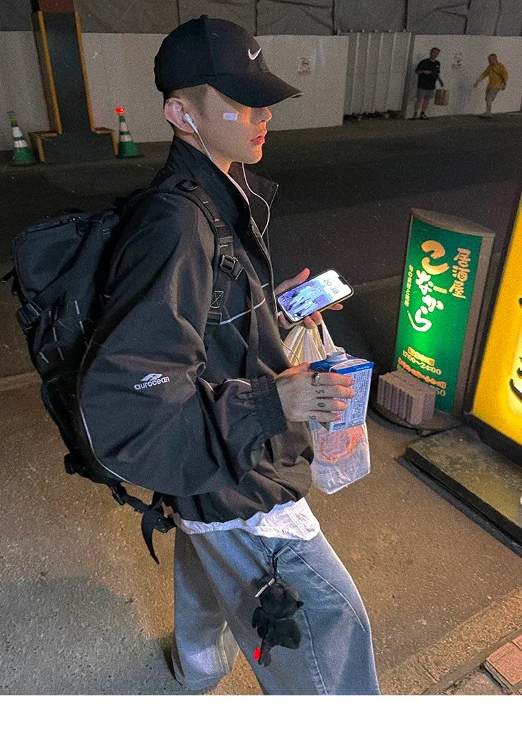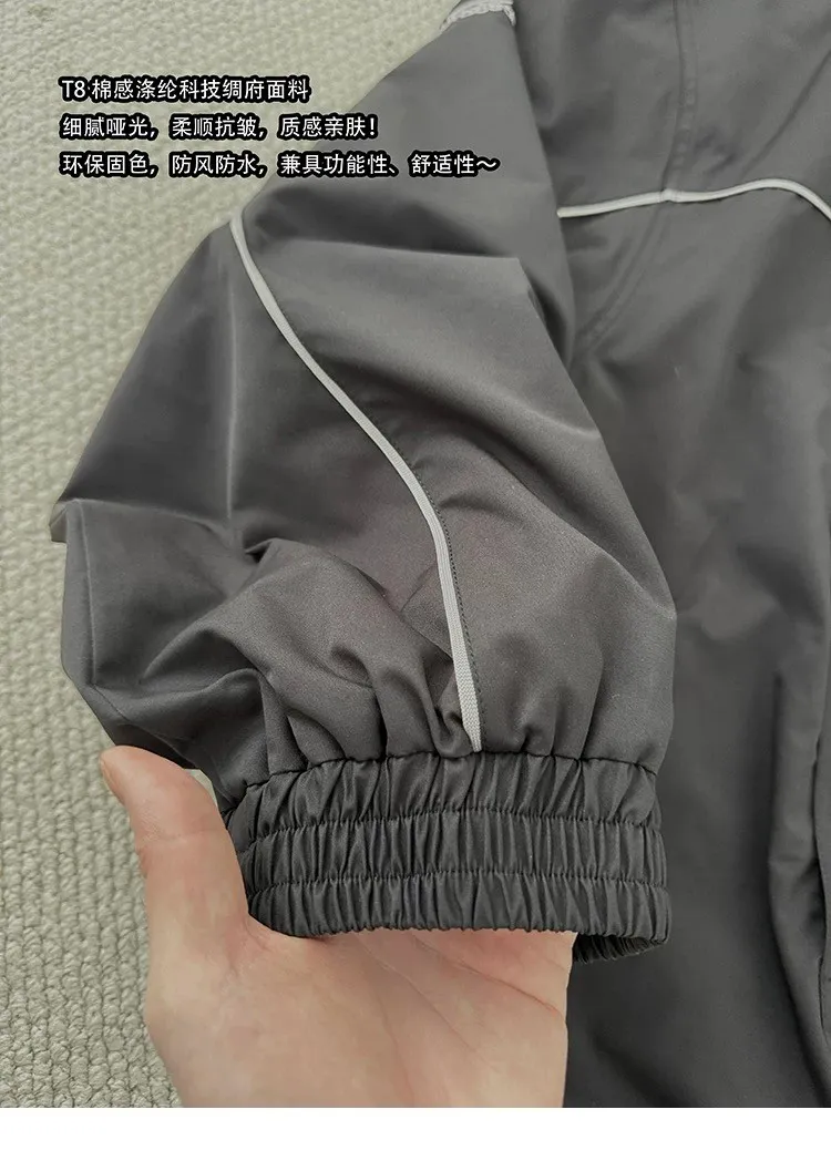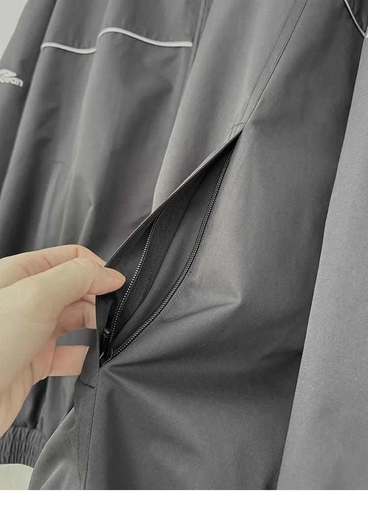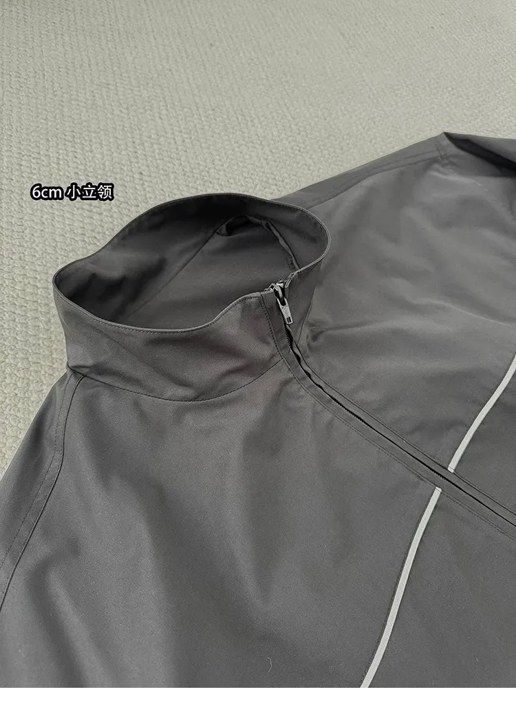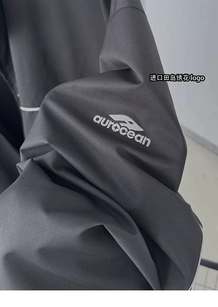 AUROCEAN 復古 撞色邊條 寬松大版 教練外套(黑色)