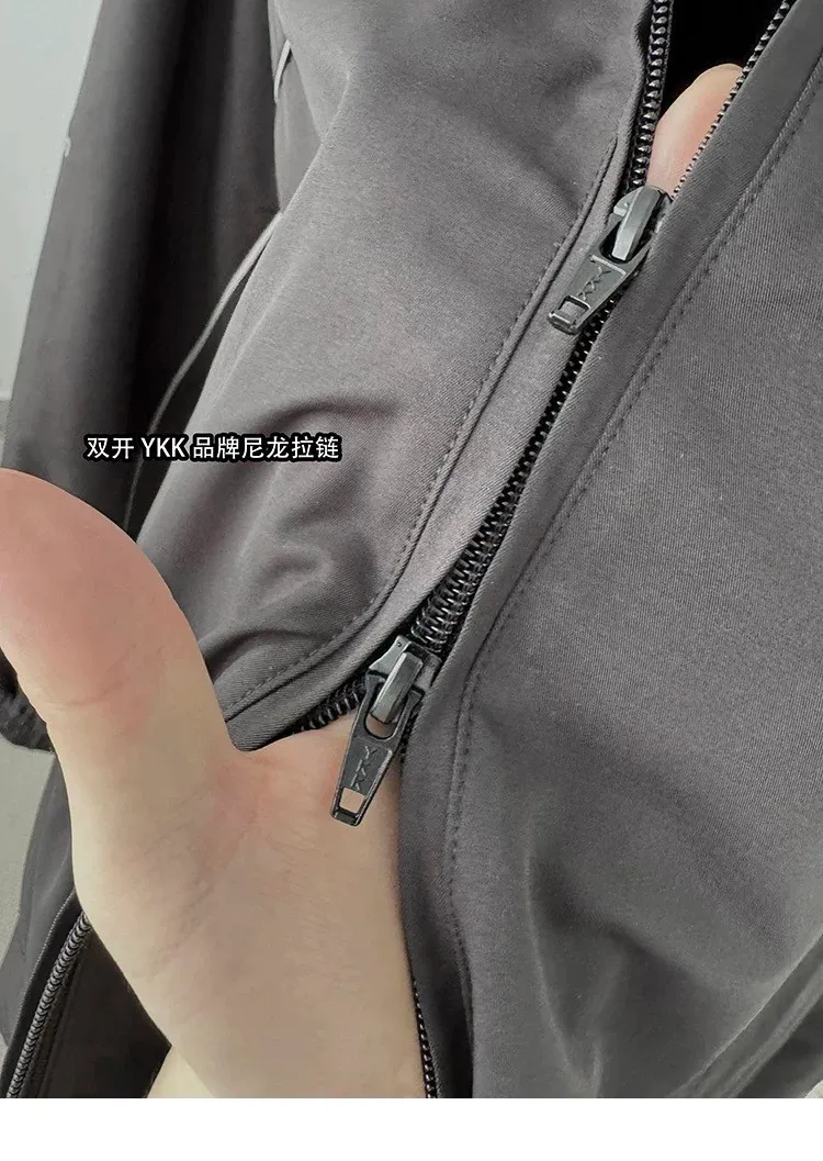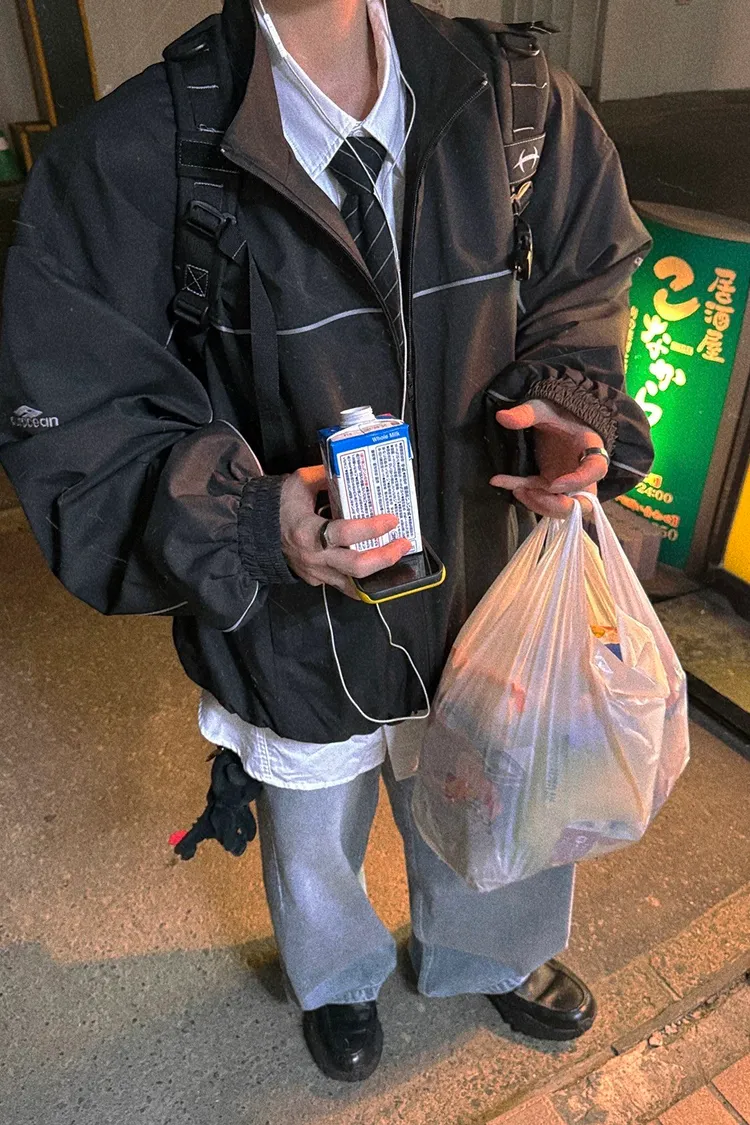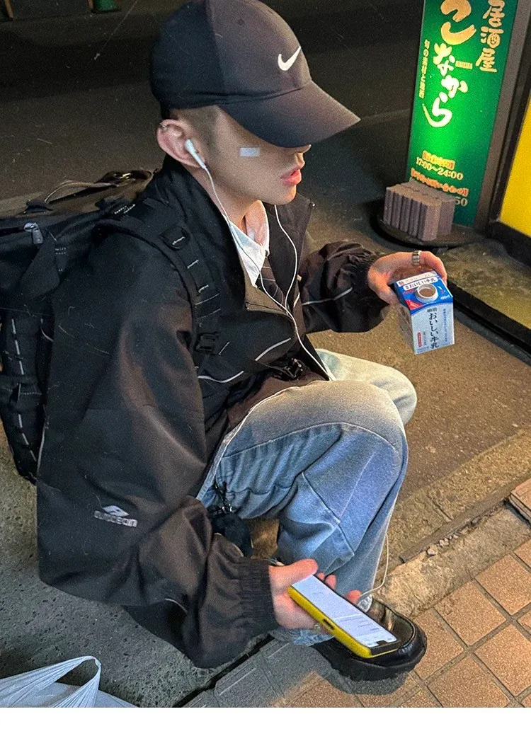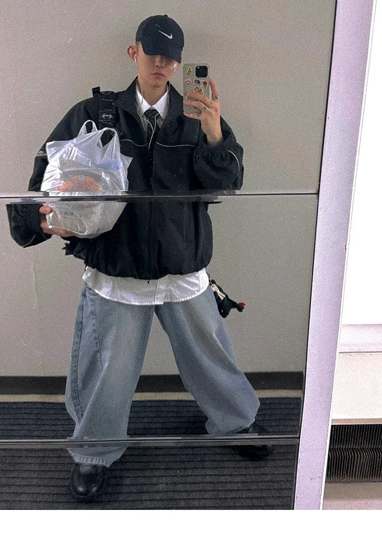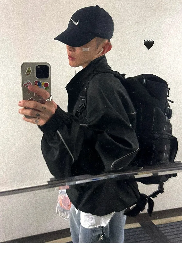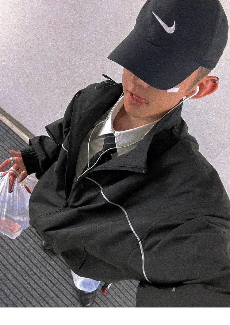 AUROCEAN 復古 撞色邊條 寬松大版 教練外套(黑色)