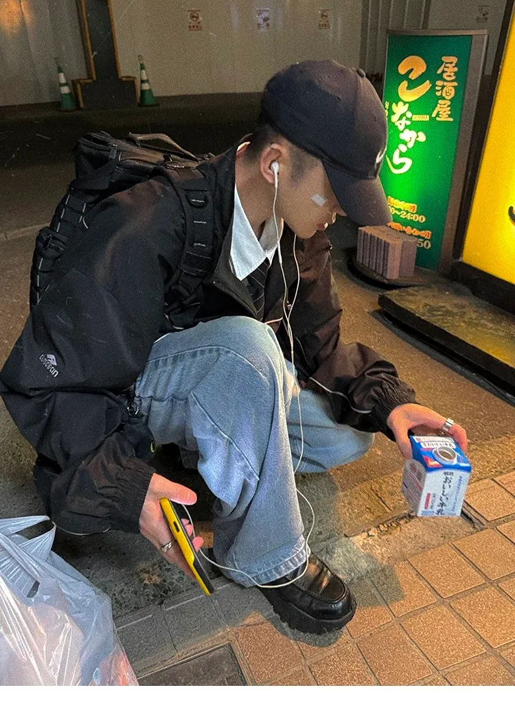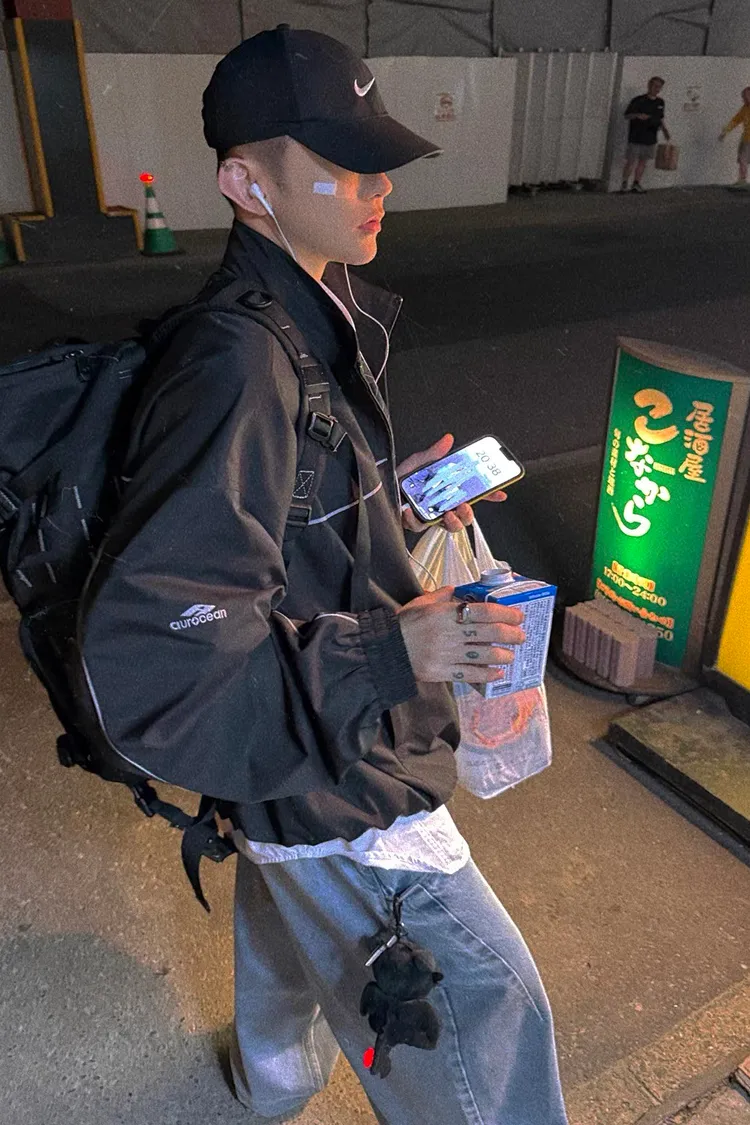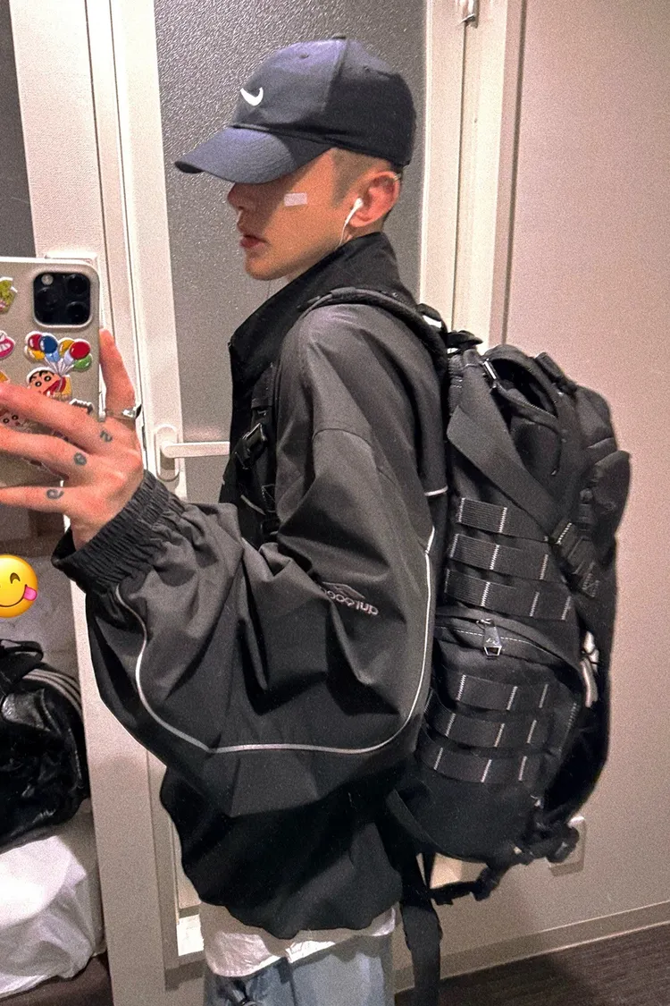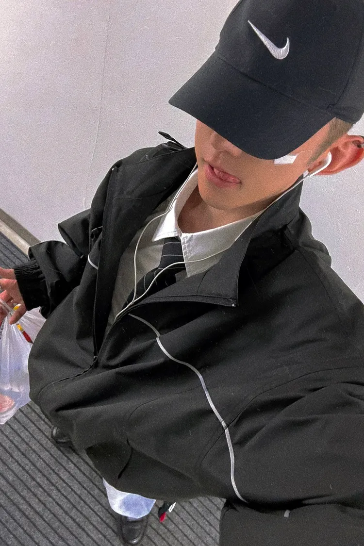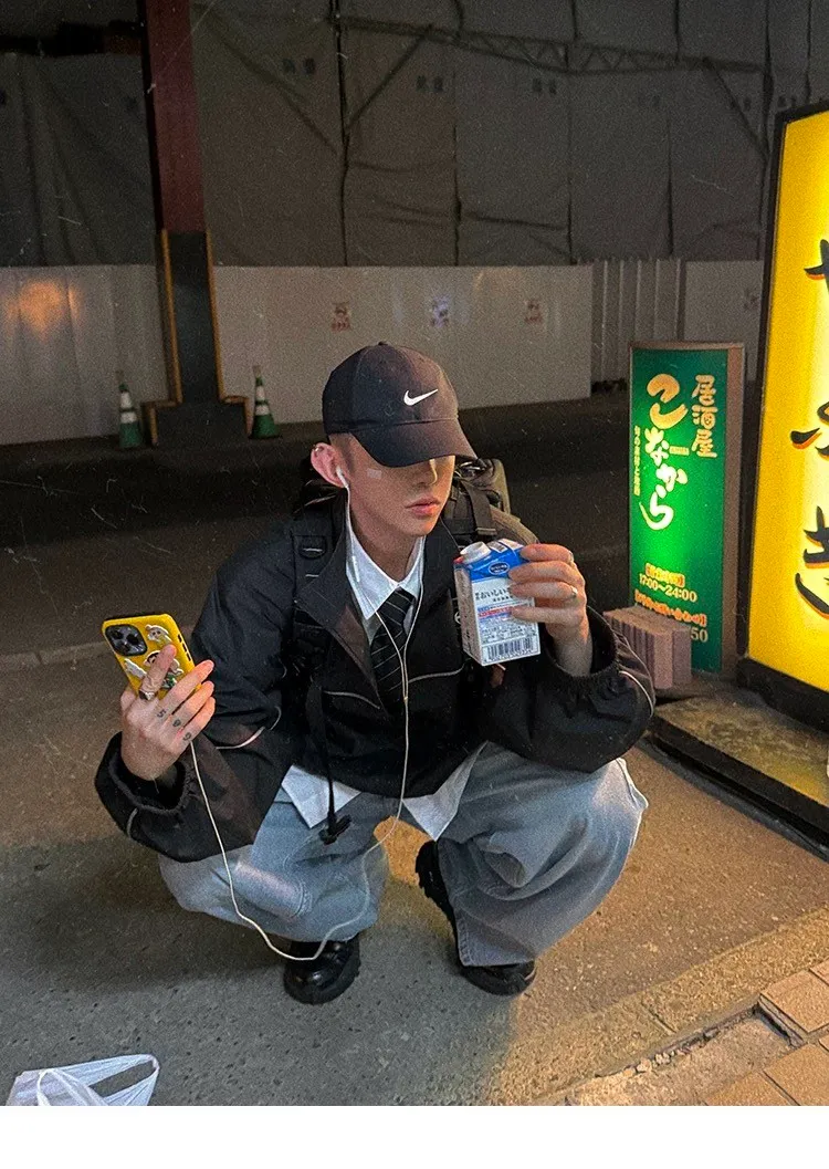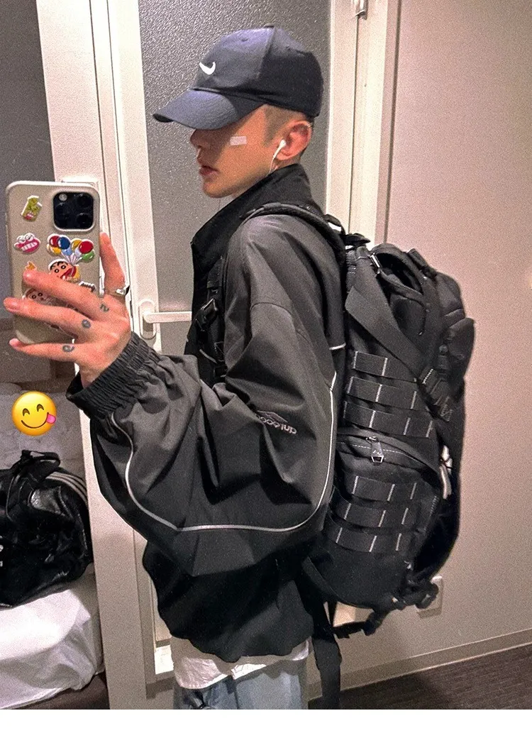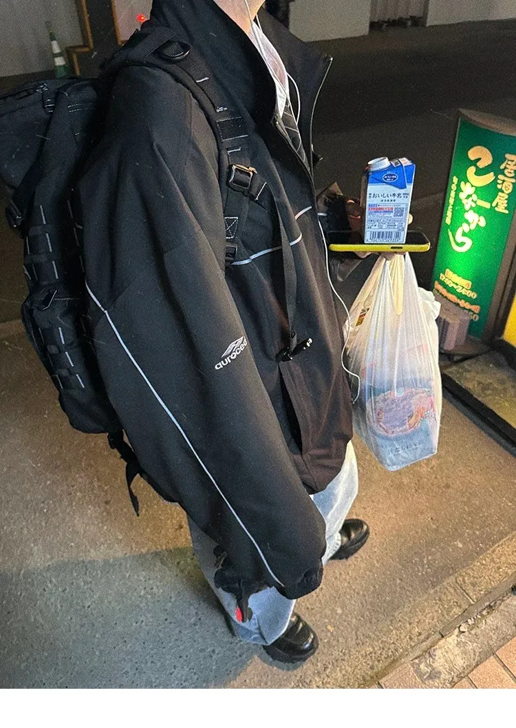 AUROCEAN 復古 撞色邊條 寬松大版 教練外套(黑色)