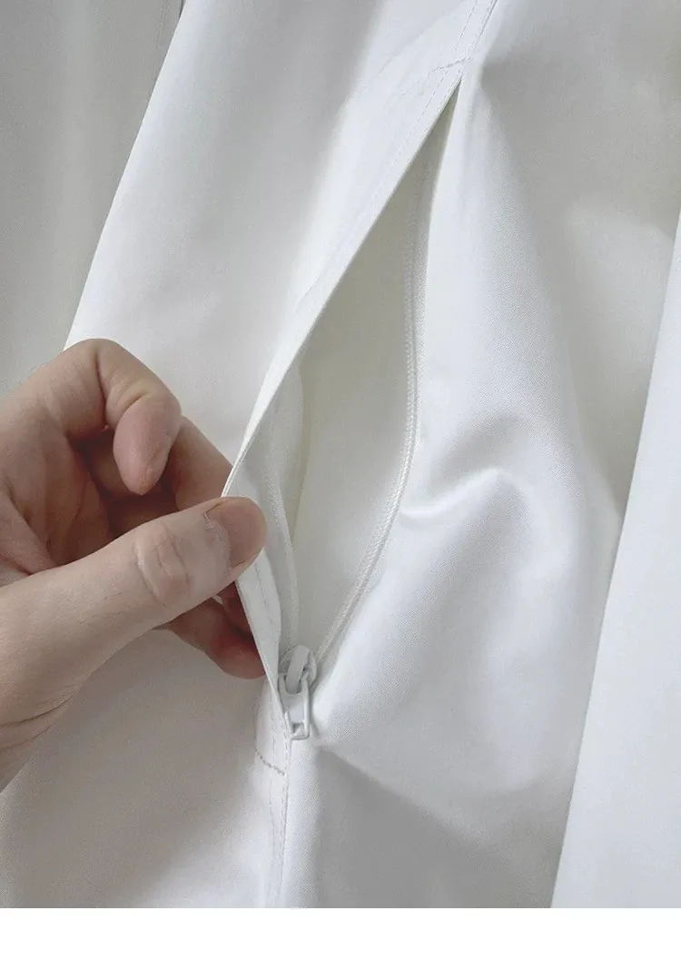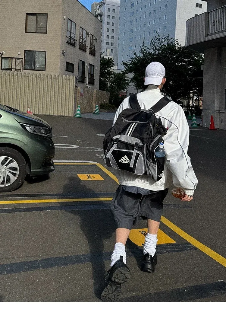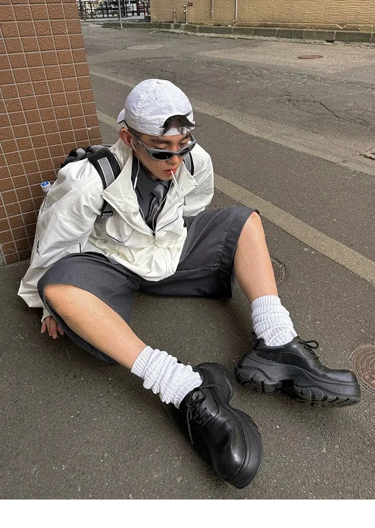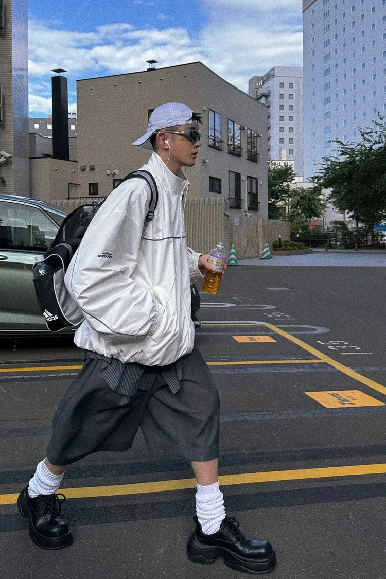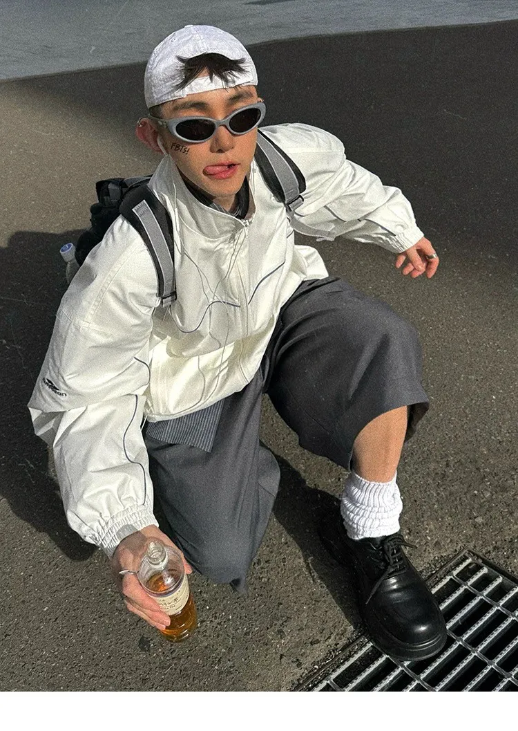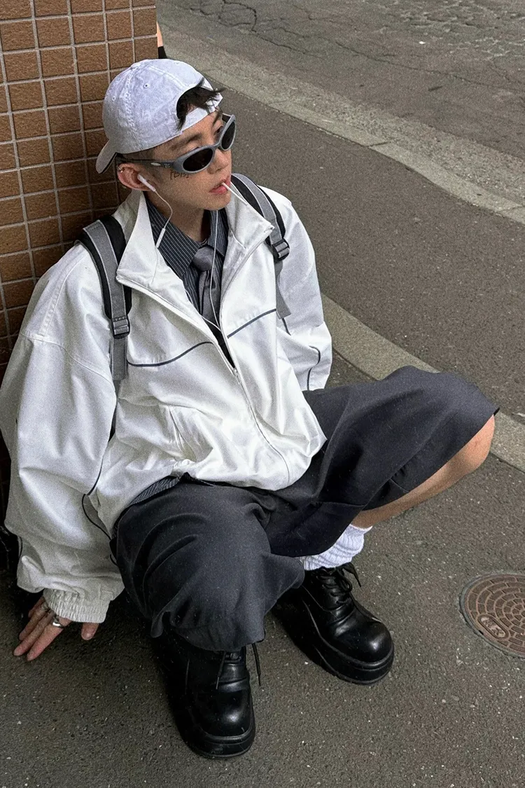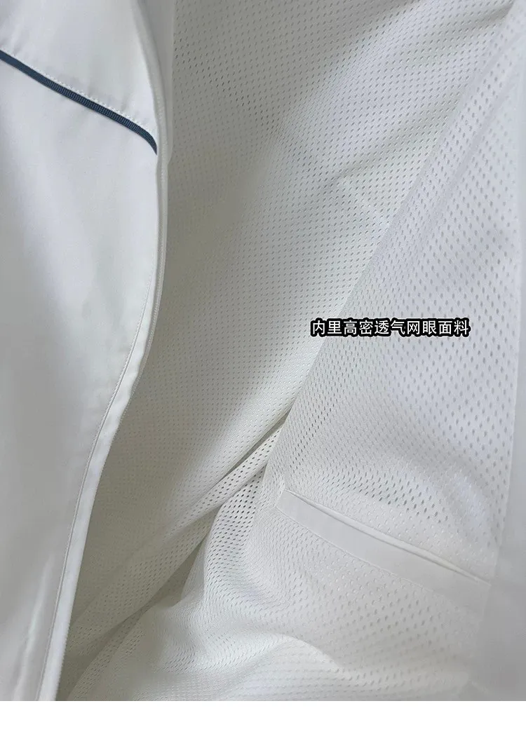 AUROCEAN 復古 撞色邊條 寬松大版 教練外套(白色)