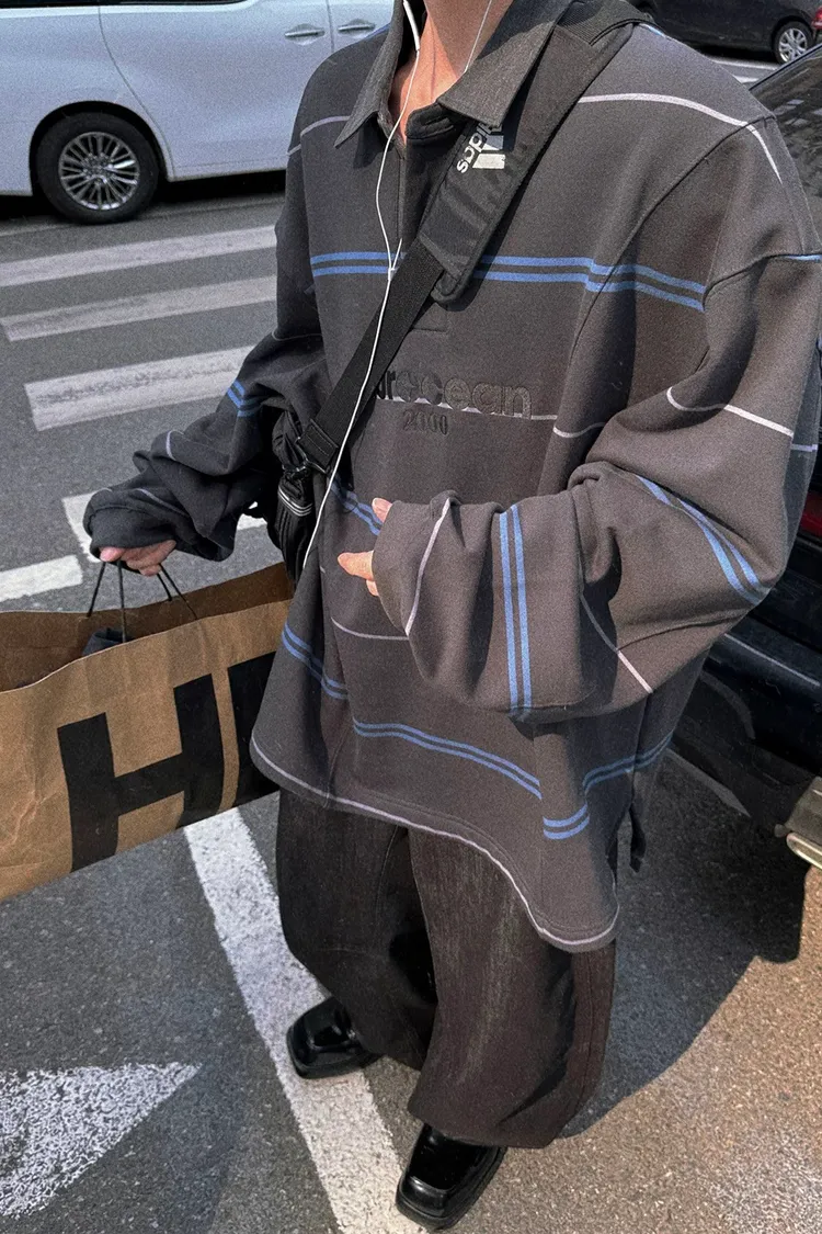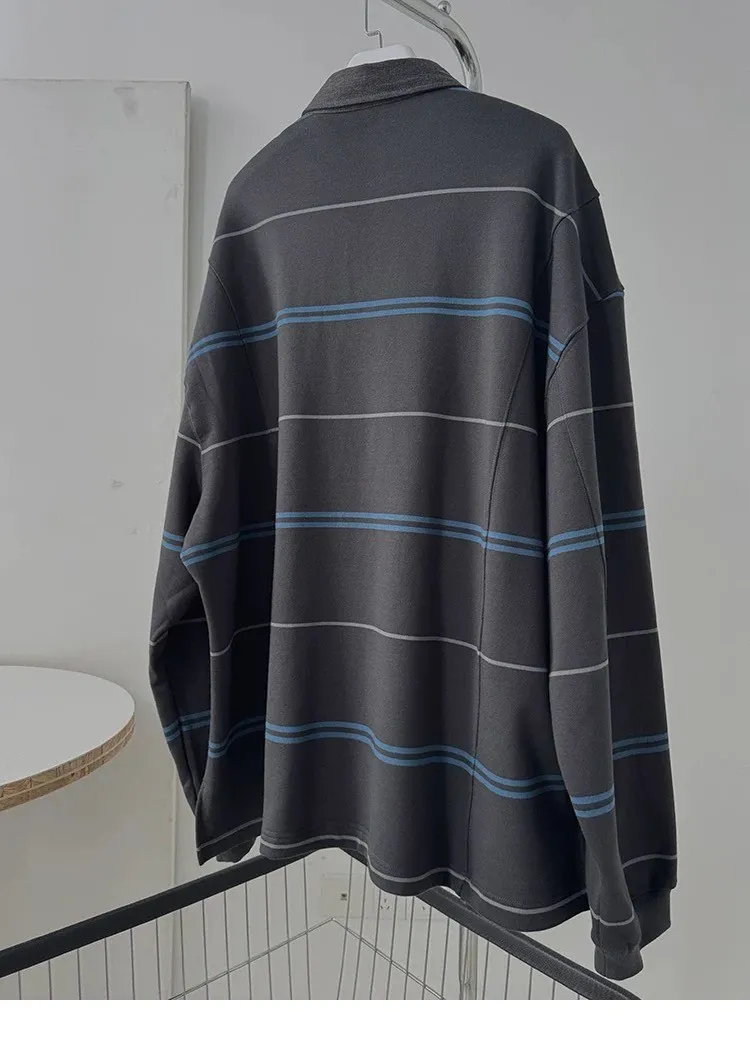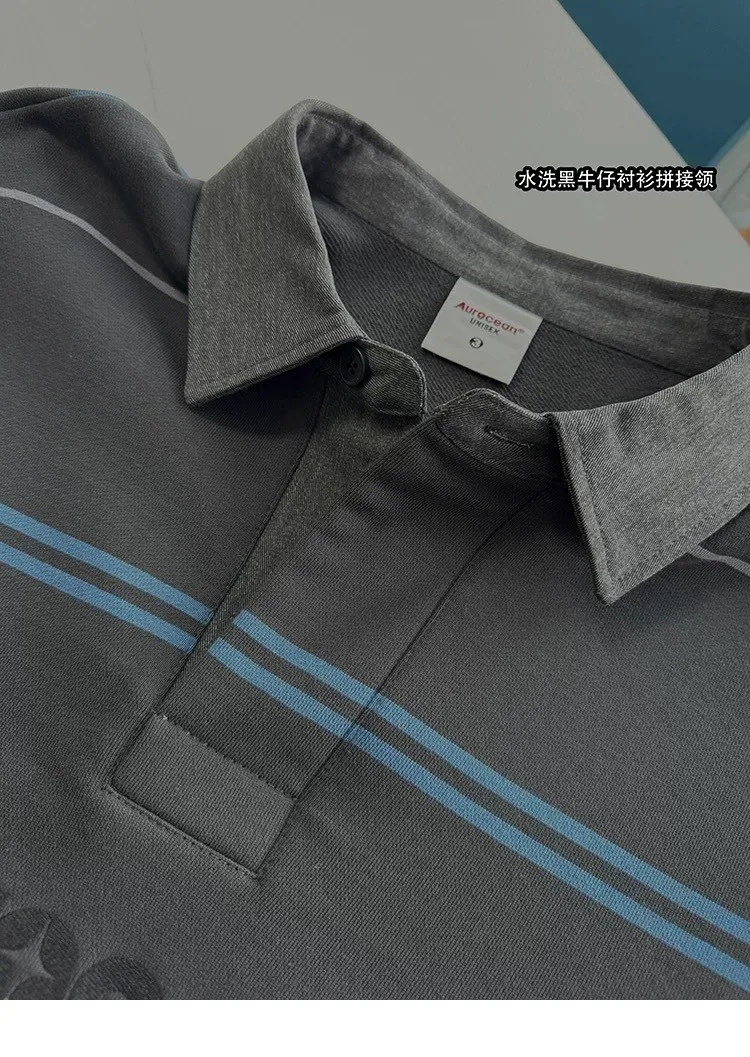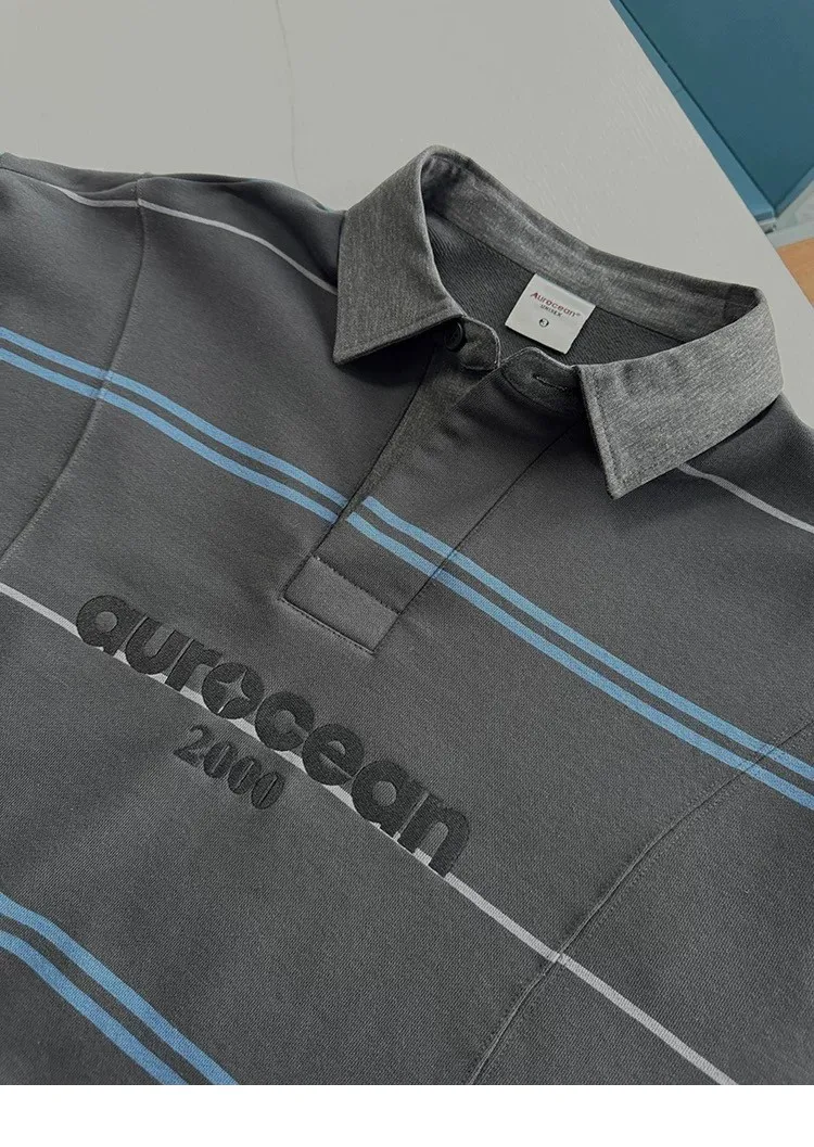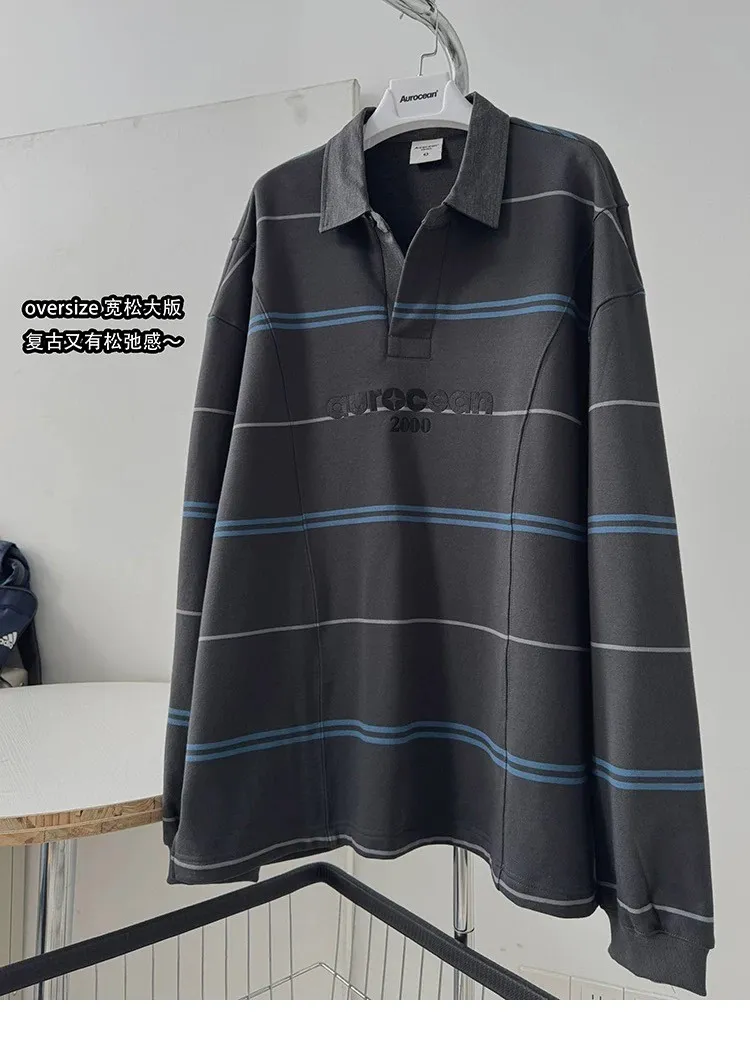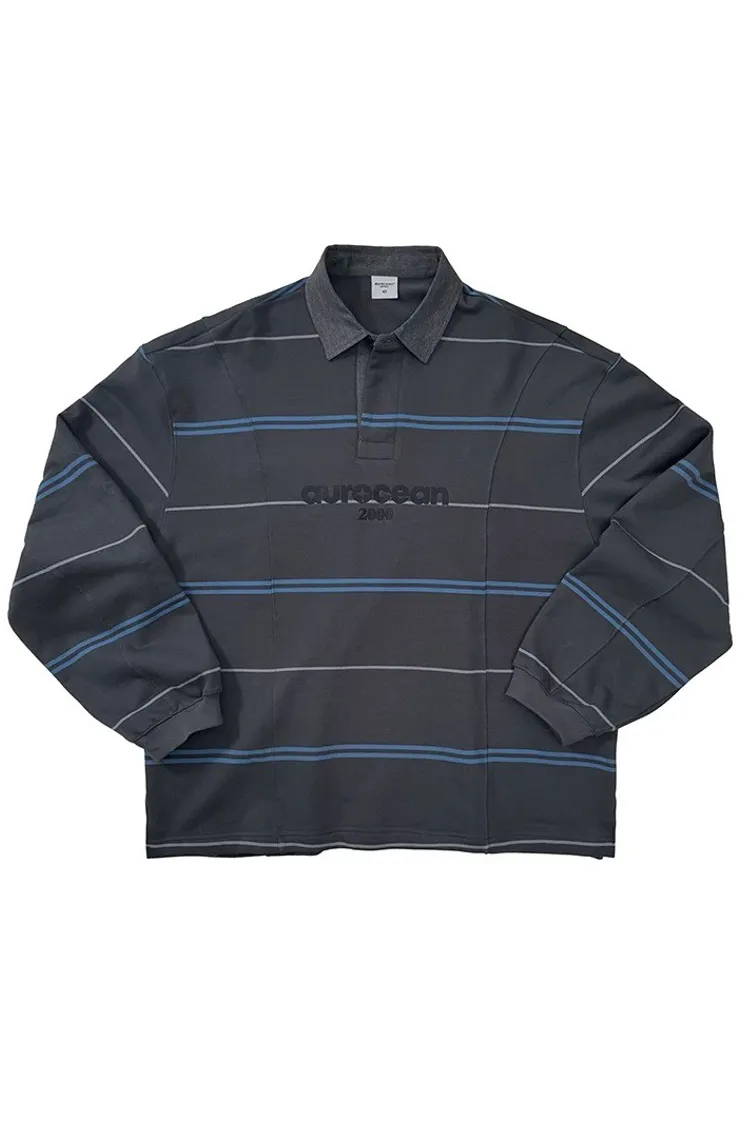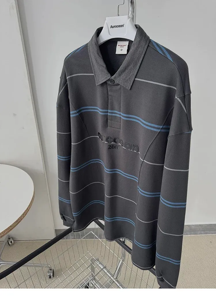 AUROCEAN 訂製條紋 重磅襯衫領 POLO衫 (灰藍條紋)