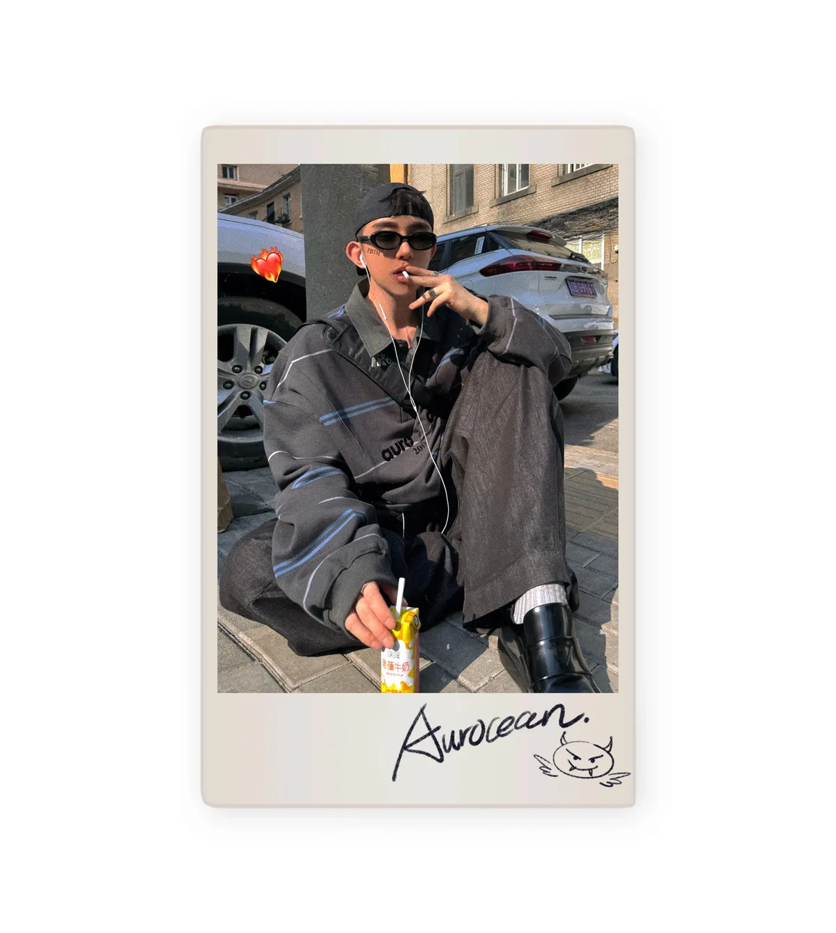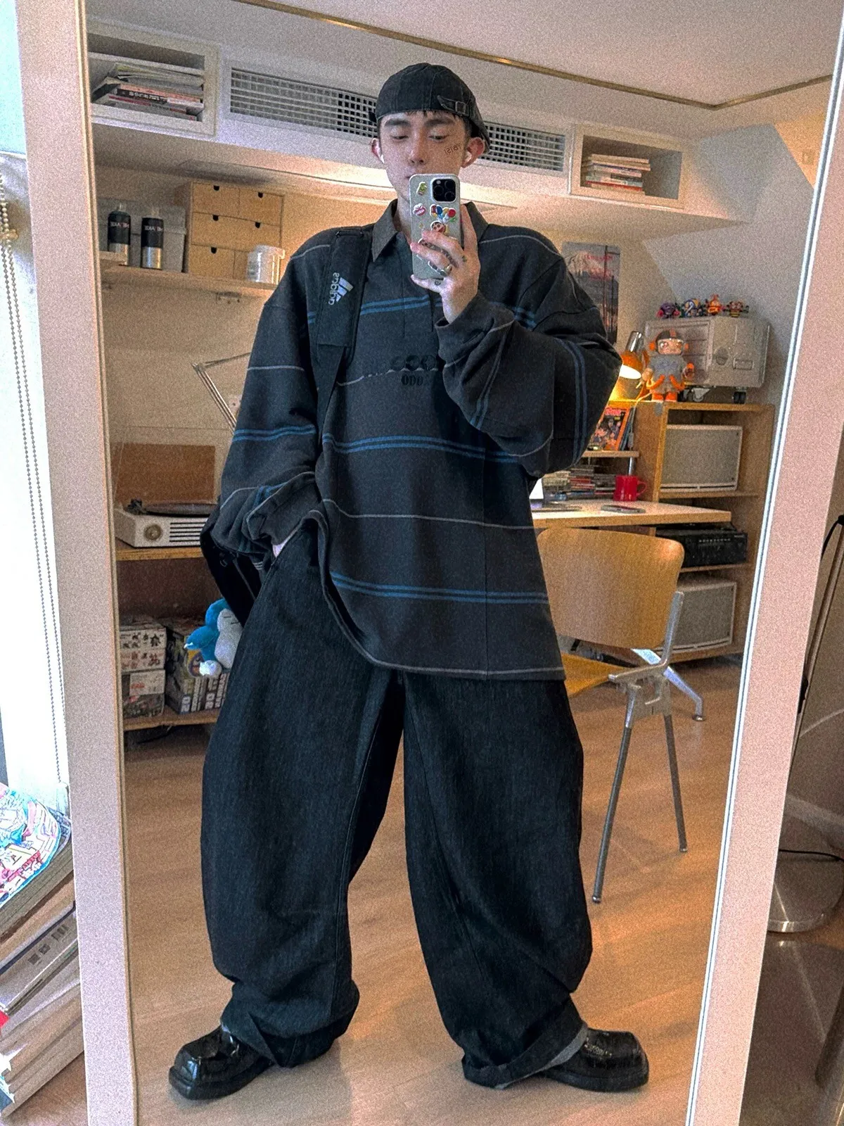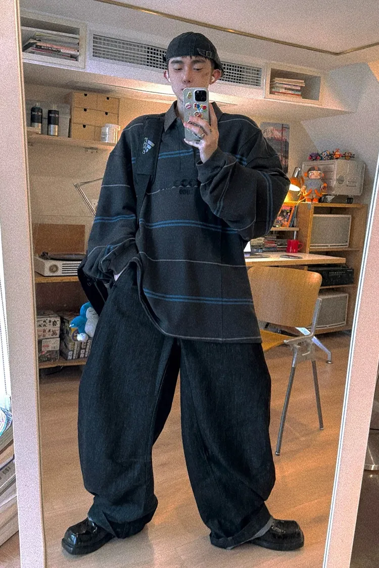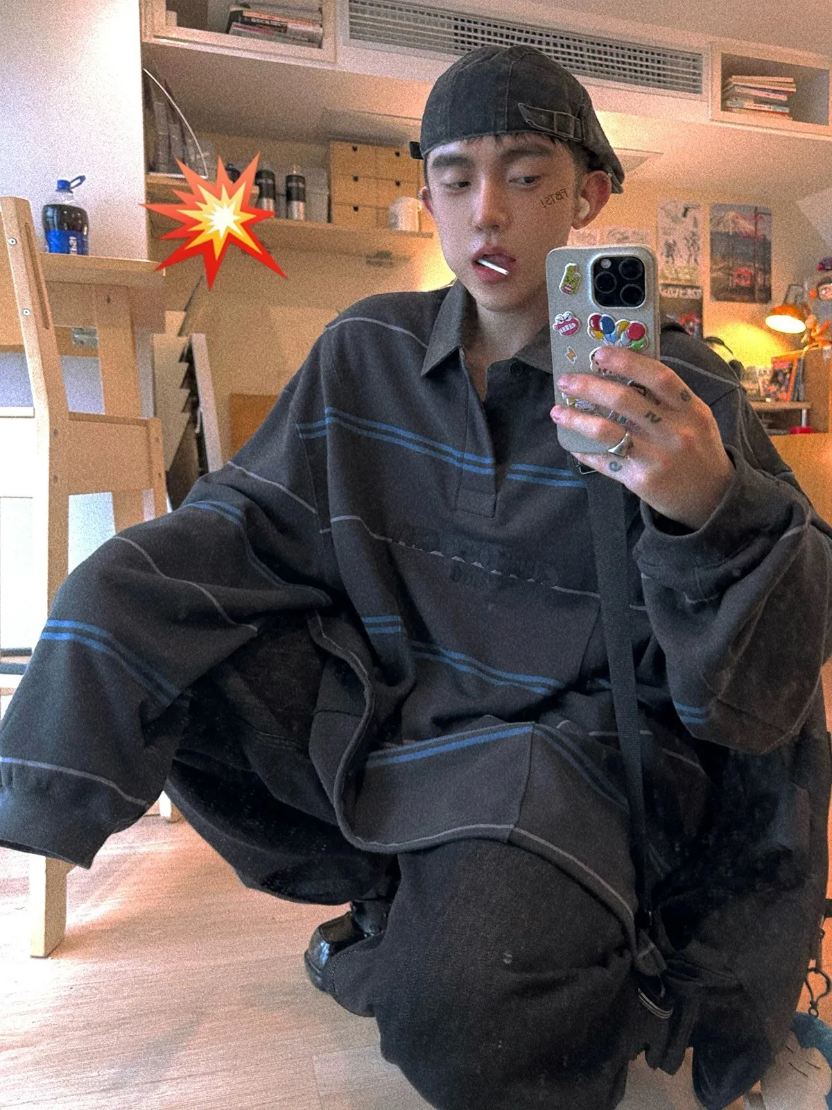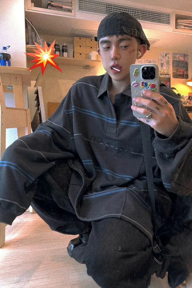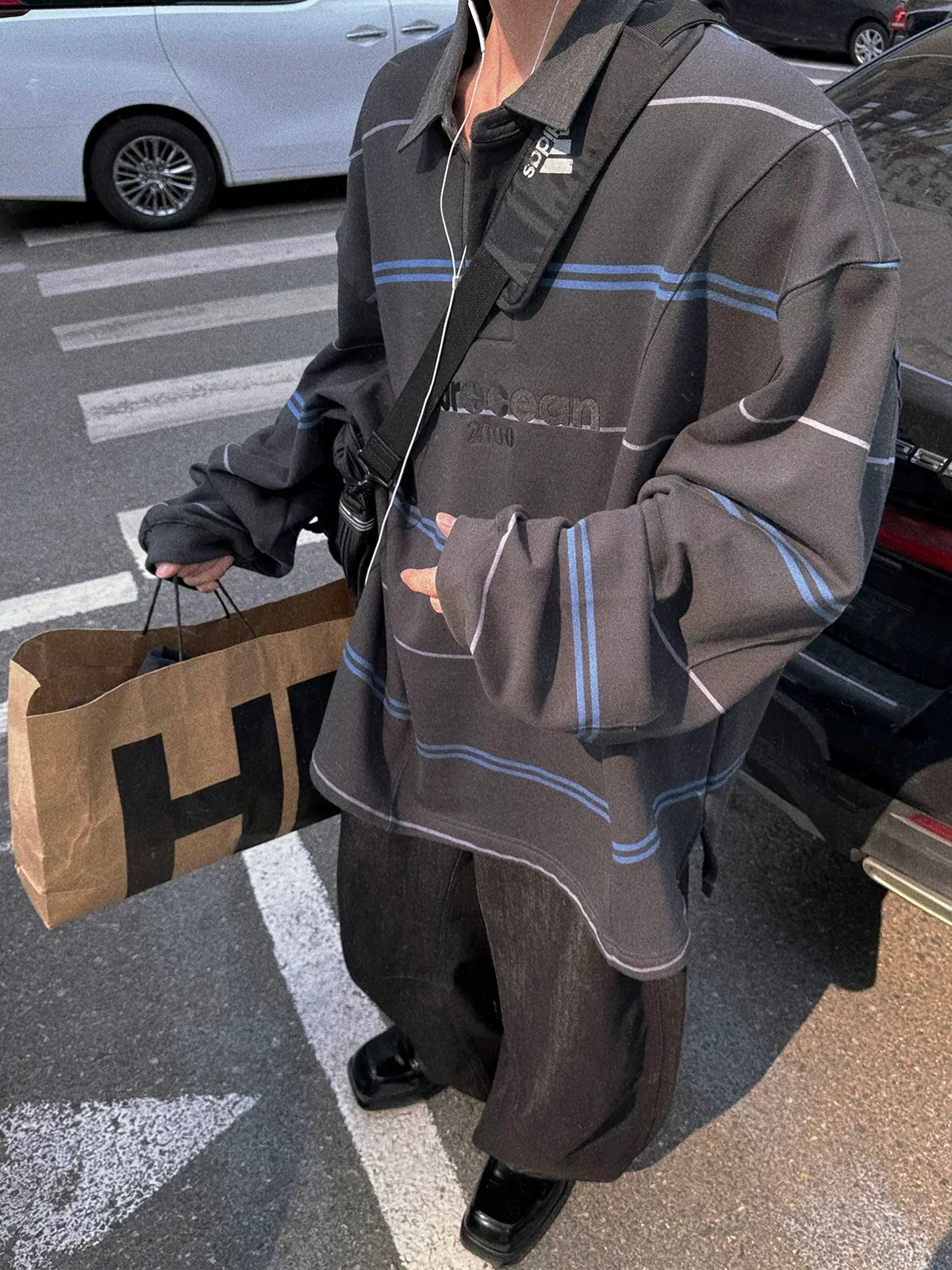AUROCEAN 訂製條紋 重磅襯衫領 POLO衫 (灰藍條紋)