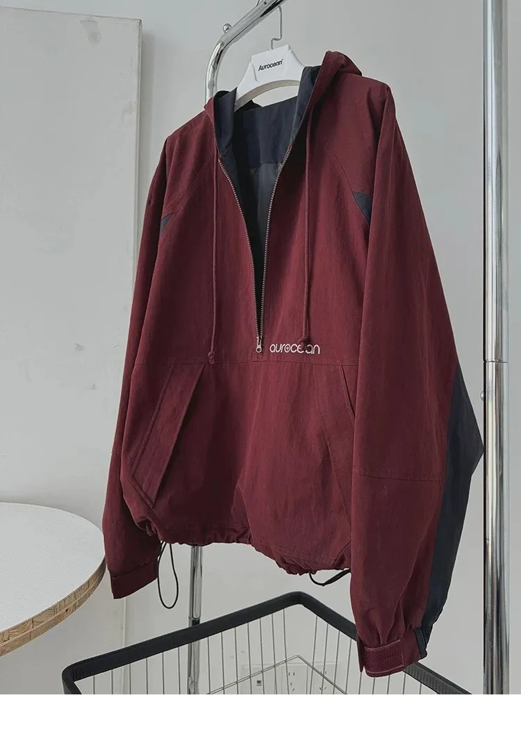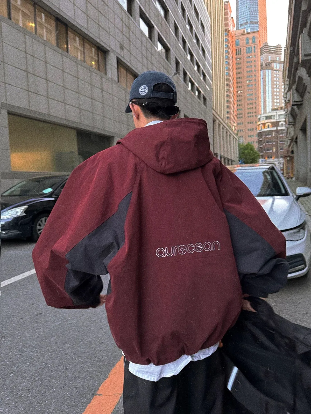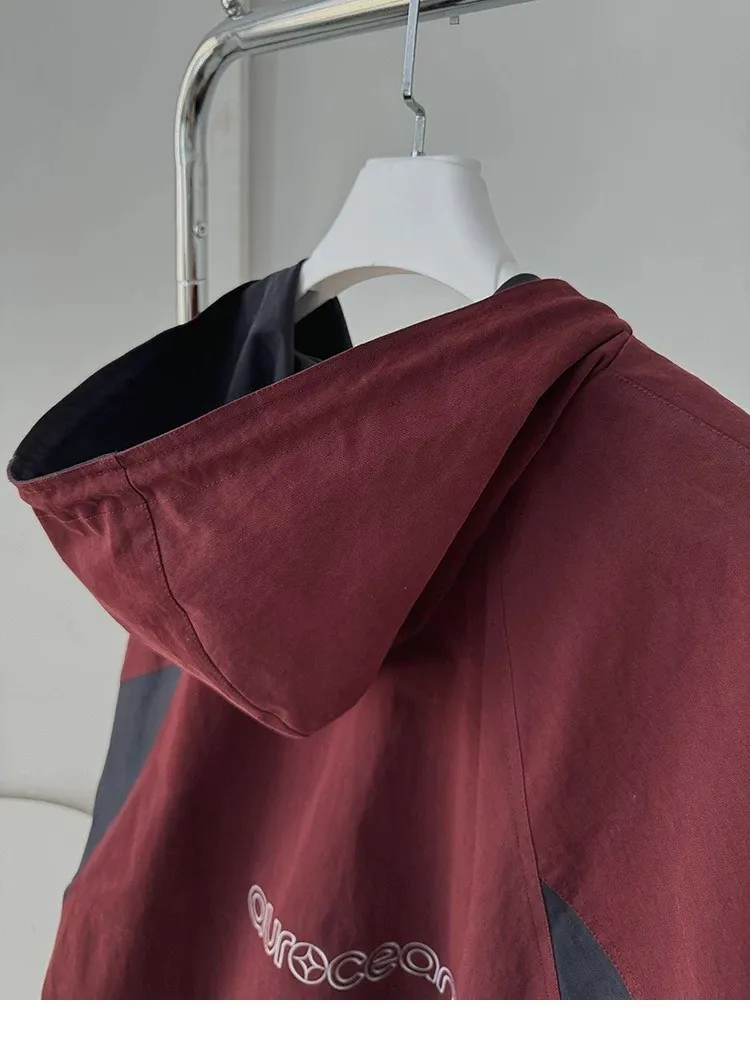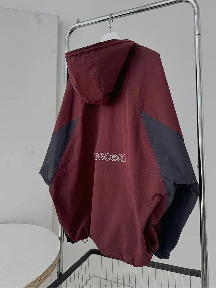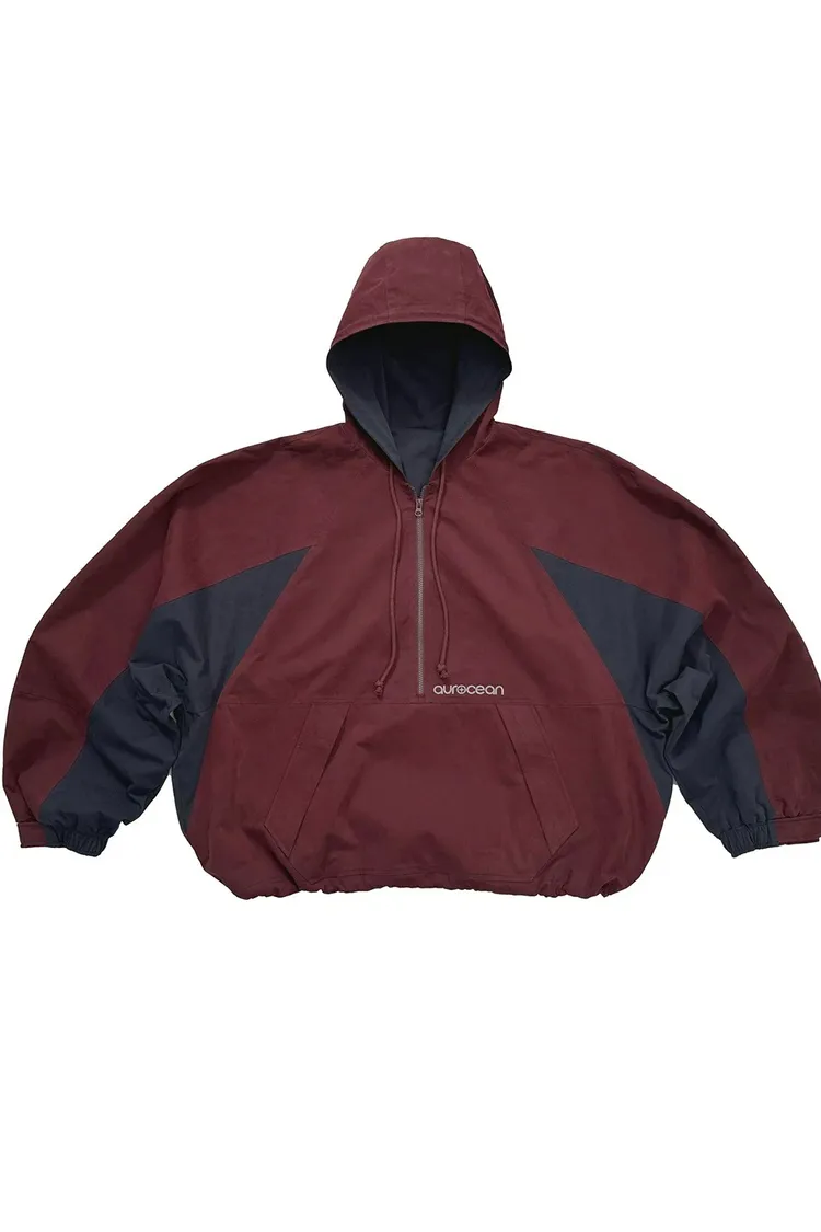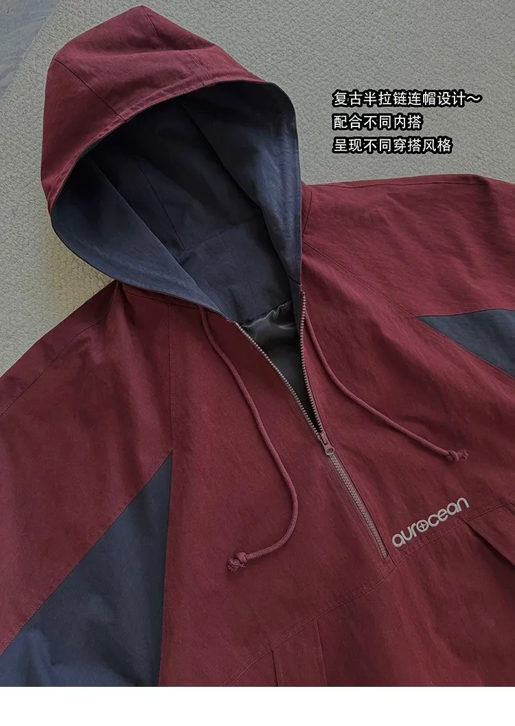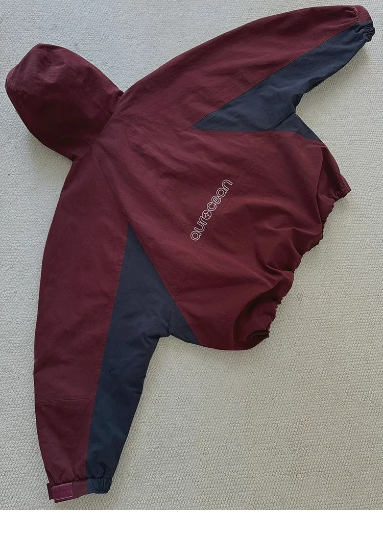 AUROCEAN 混紡撞色 廓形 衝鋒外套(紅藍)