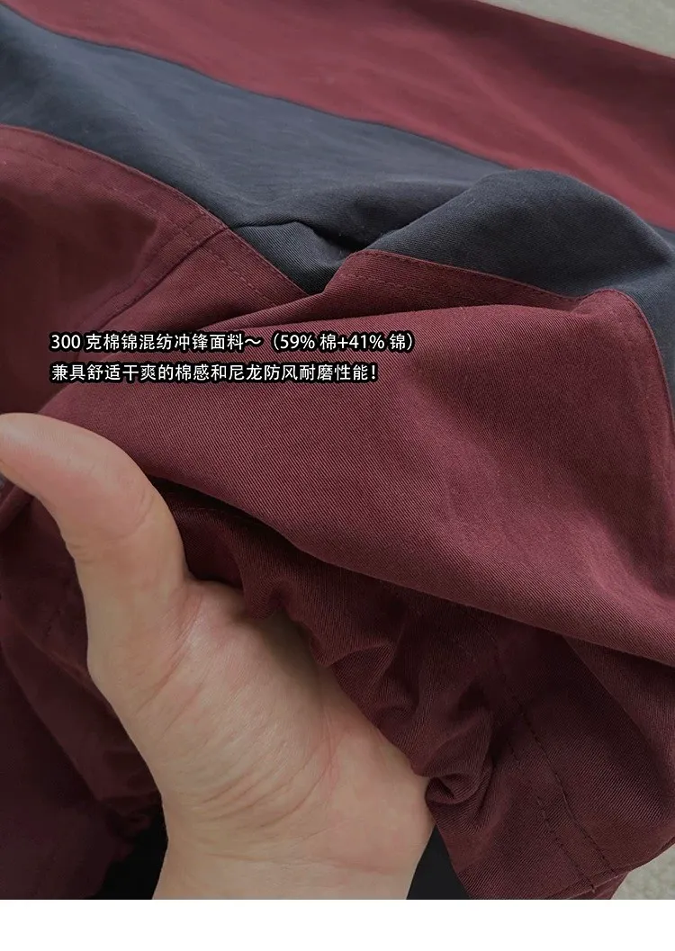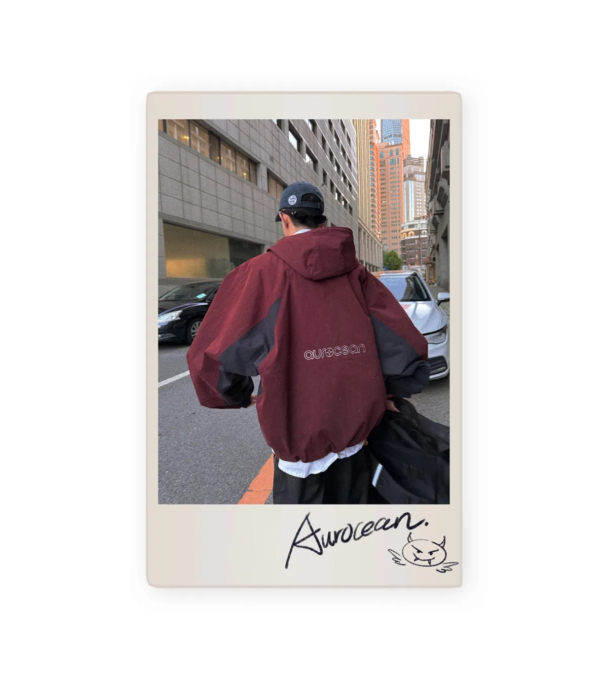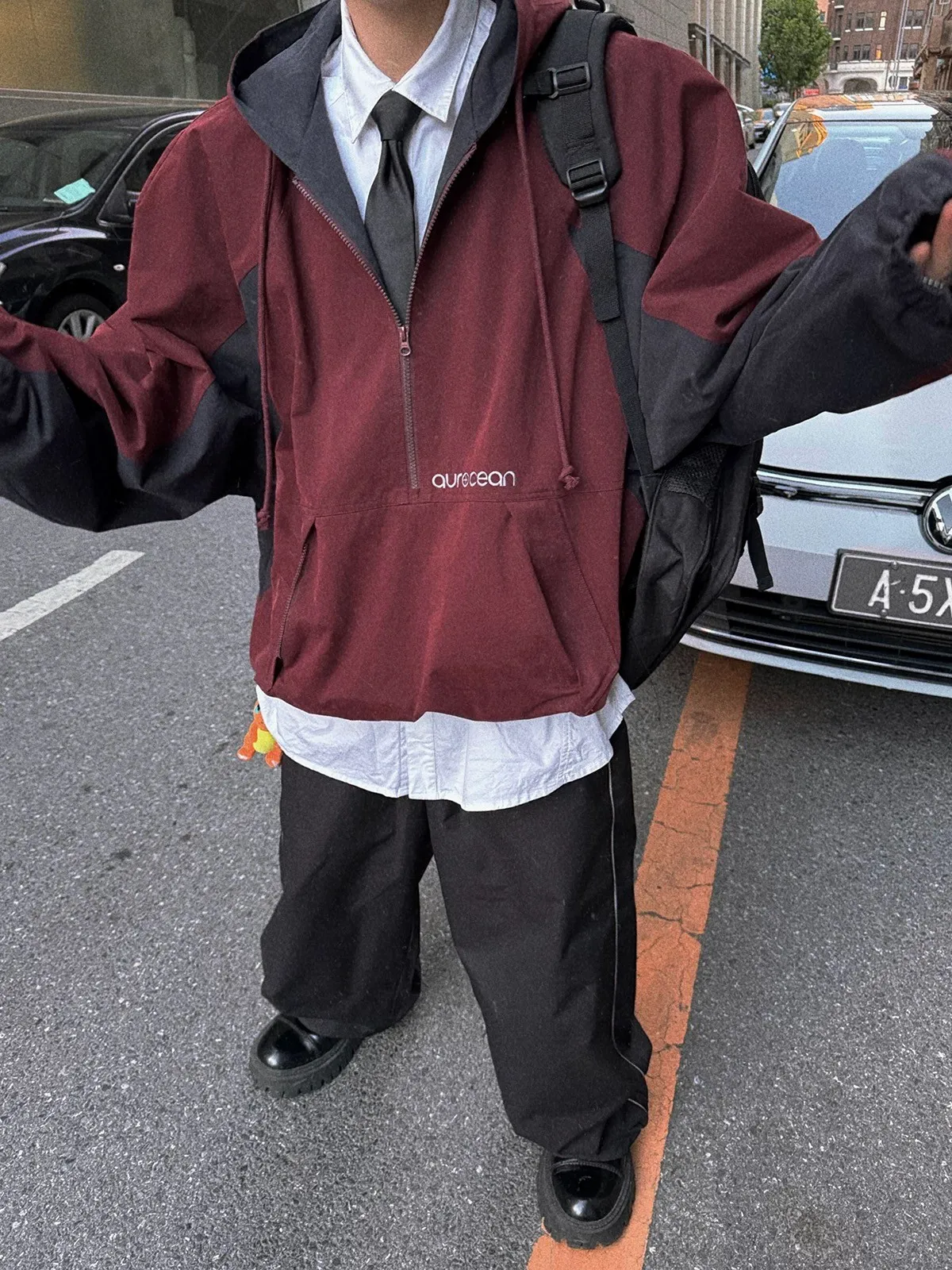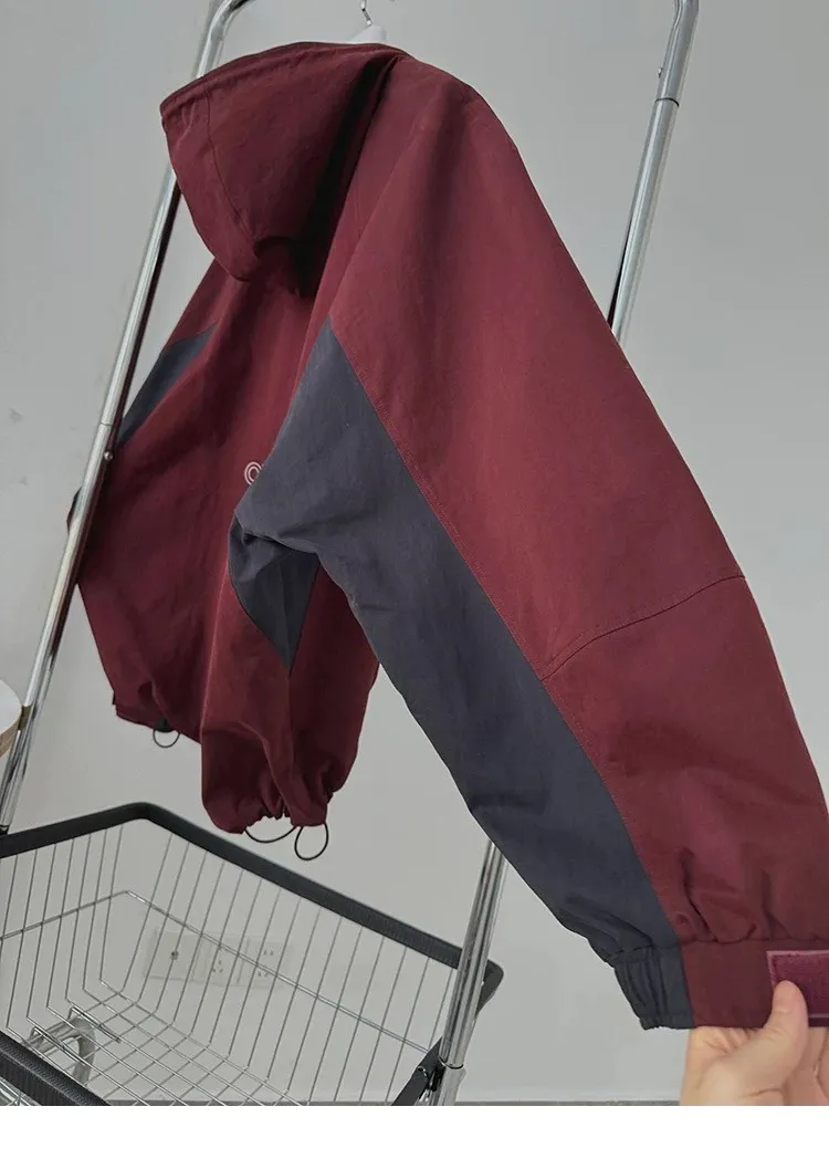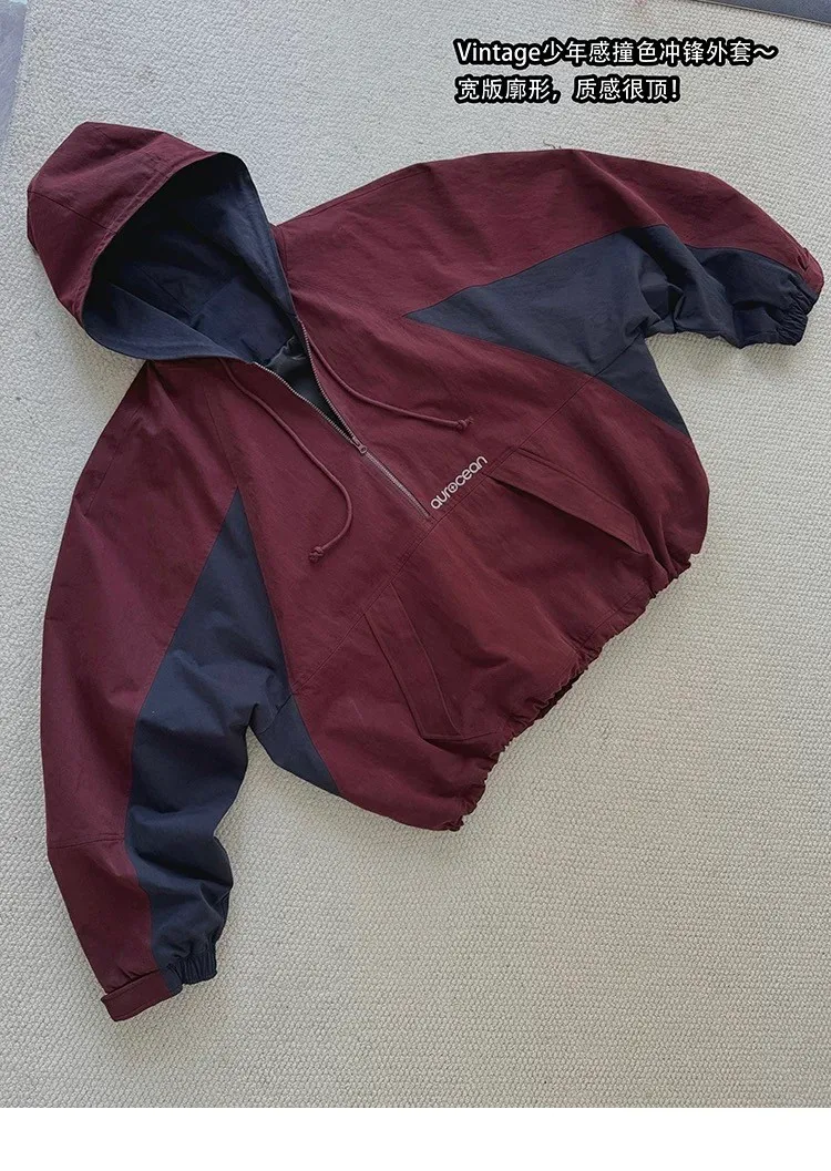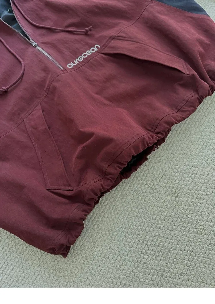 AUROCEAN 混紡撞色 廓形 衝鋒外套(紅藍)