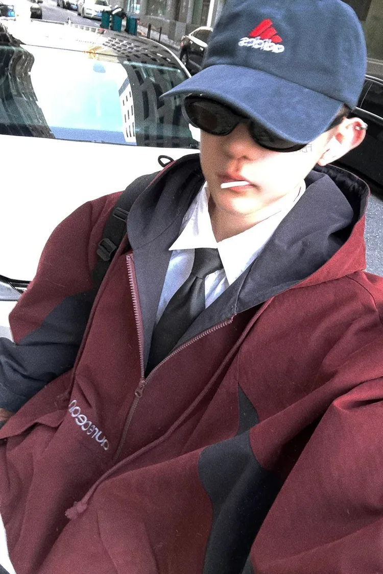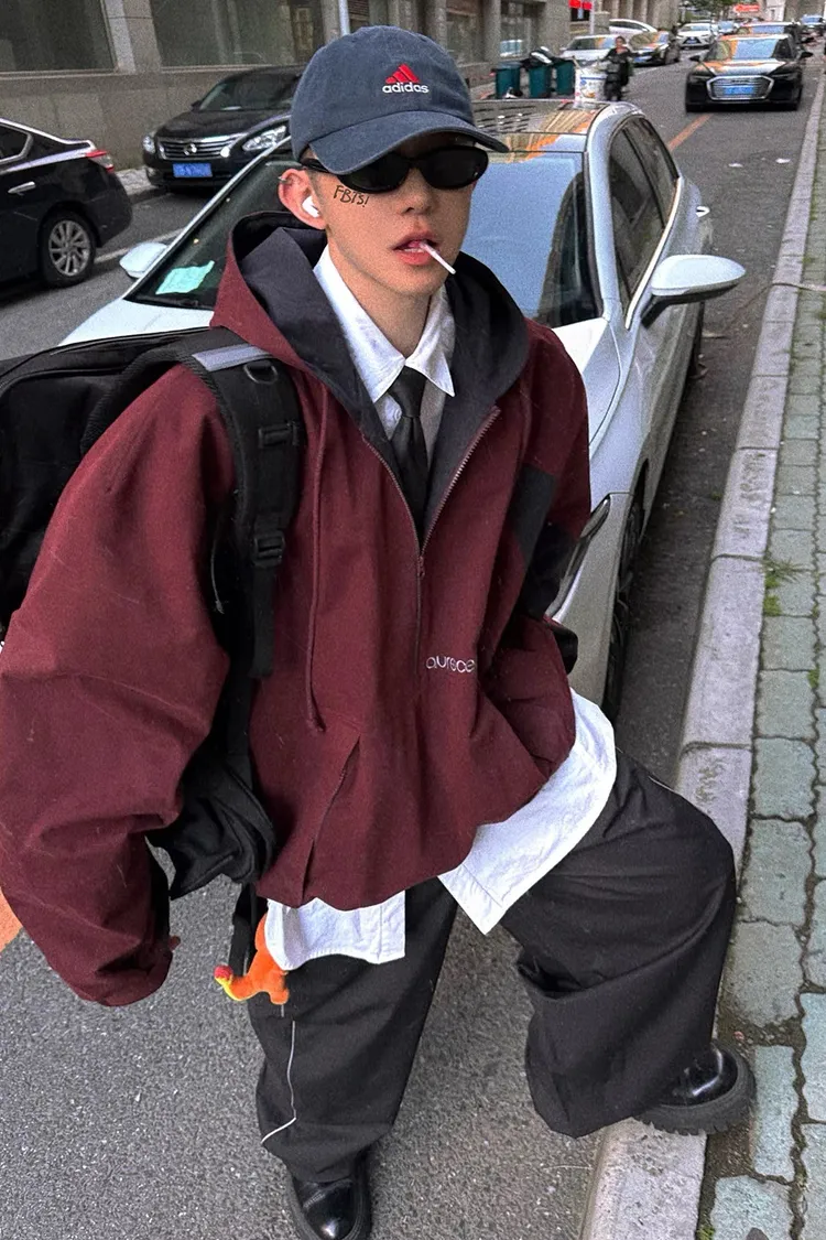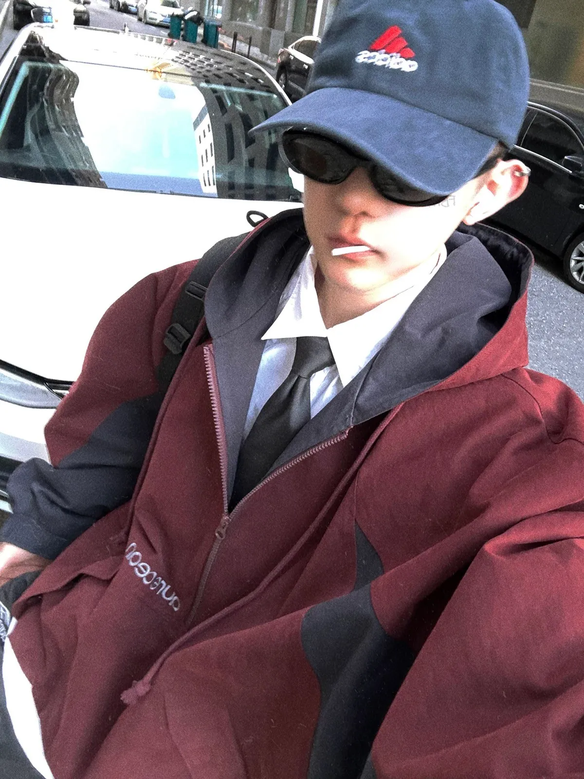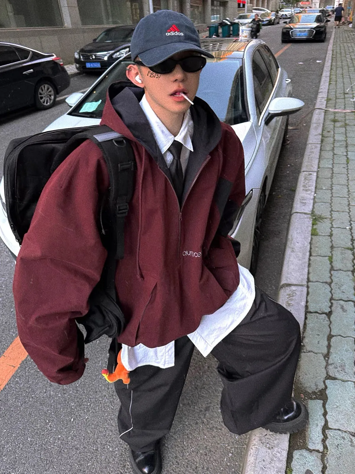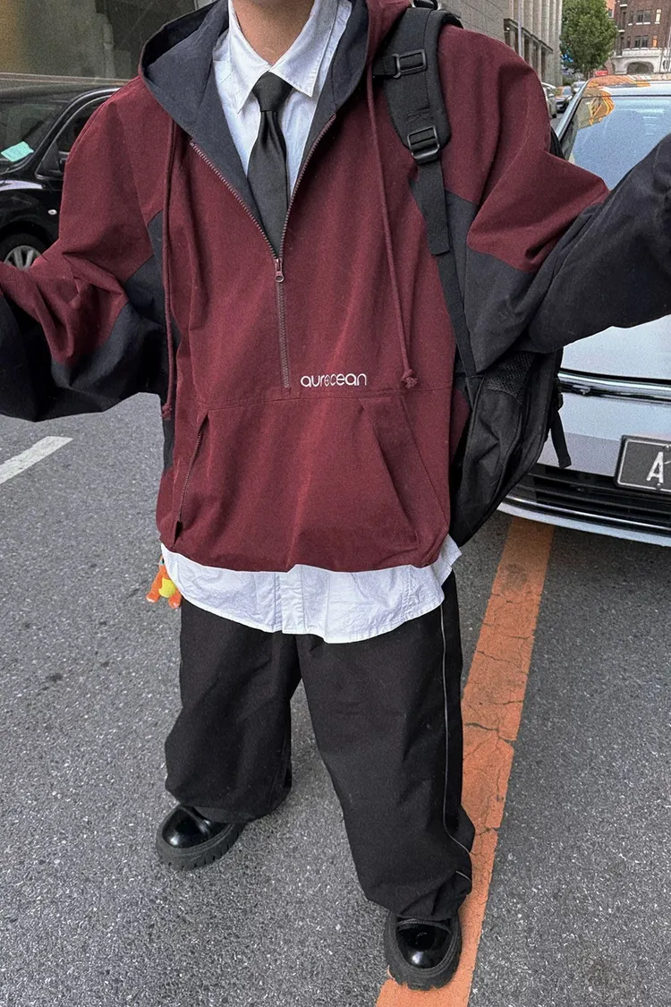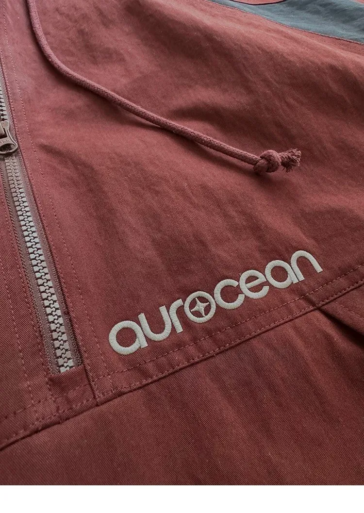 AUROCEAN 混紡撞色 廓形 衝鋒外套(紅藍)