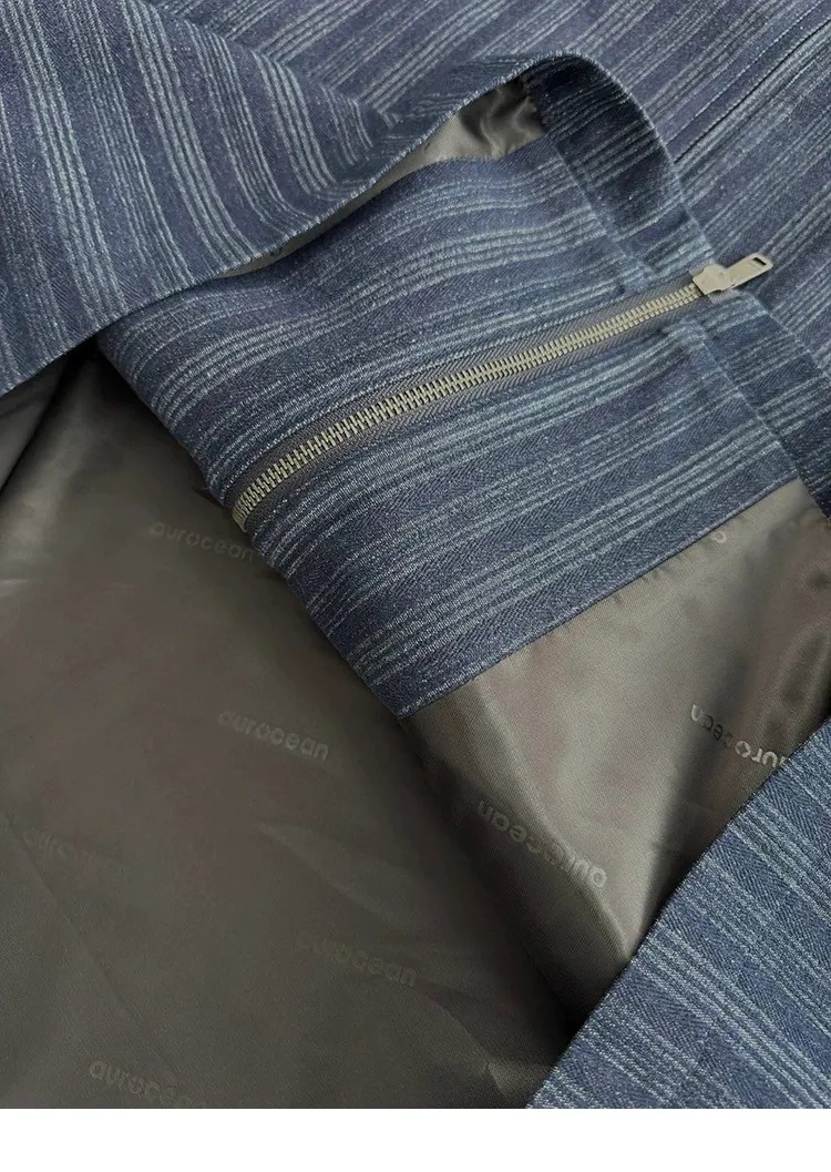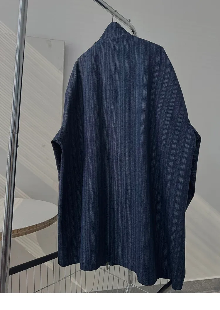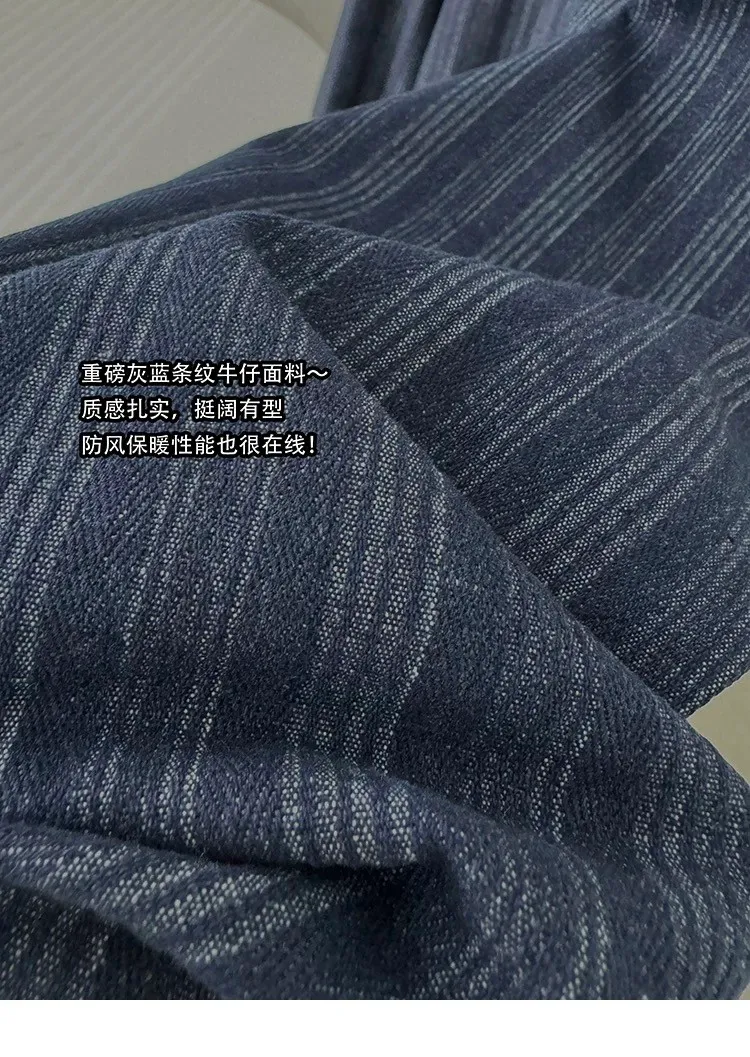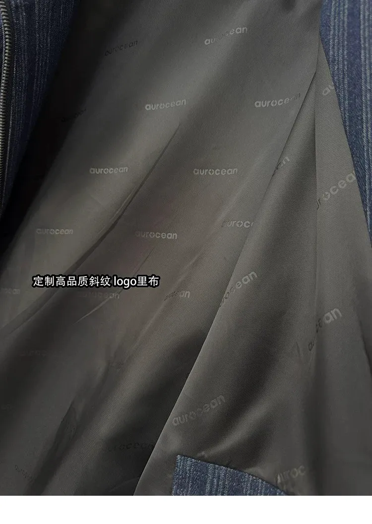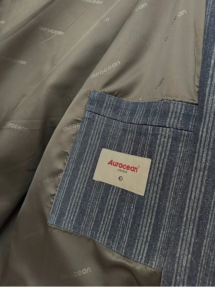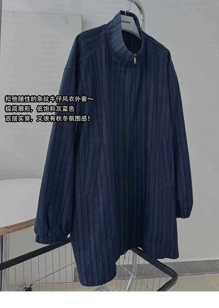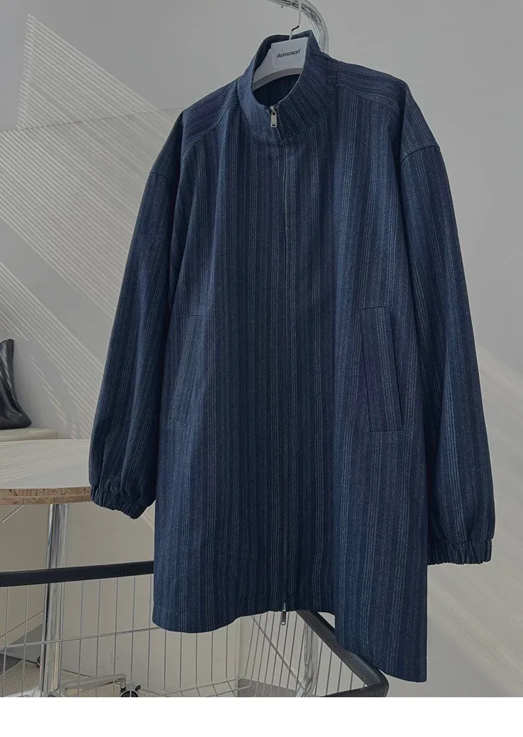 AUROCEAN 牛仔條紋 寬肩廓形 風衣外套(藍色)
