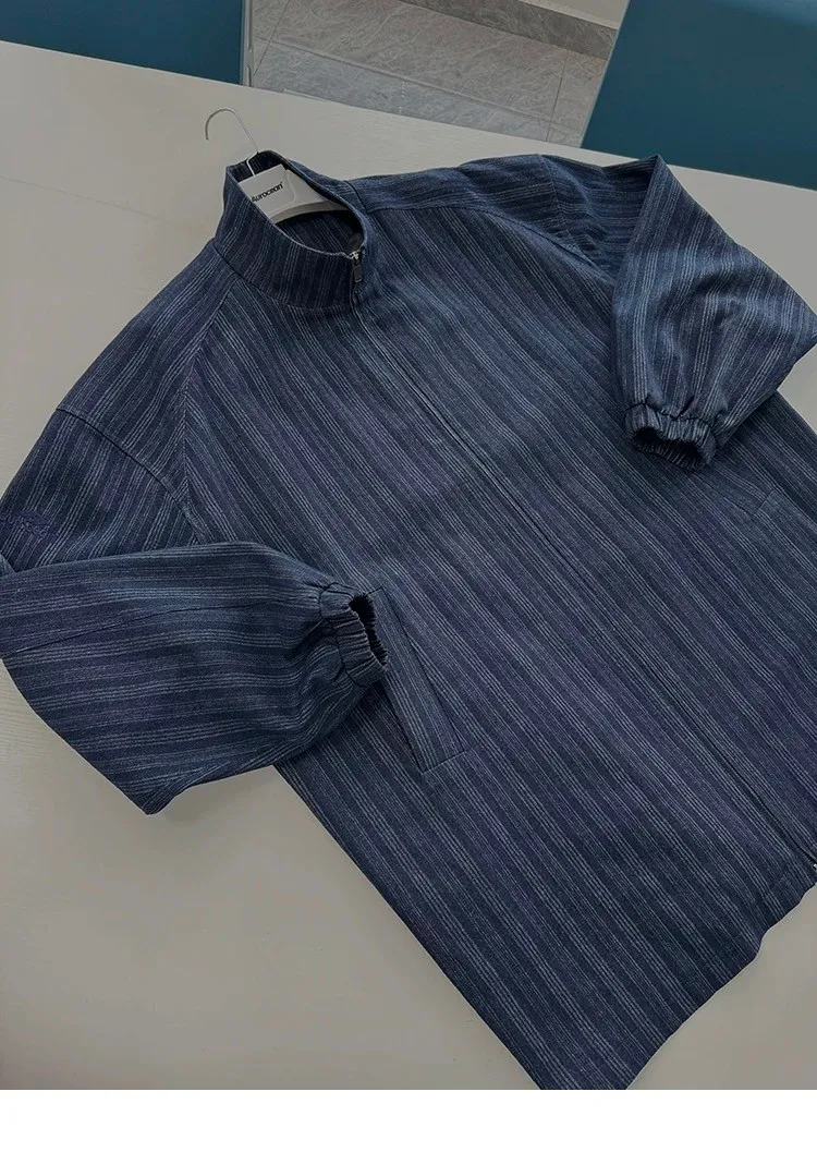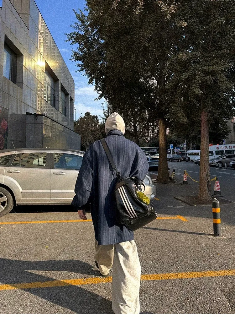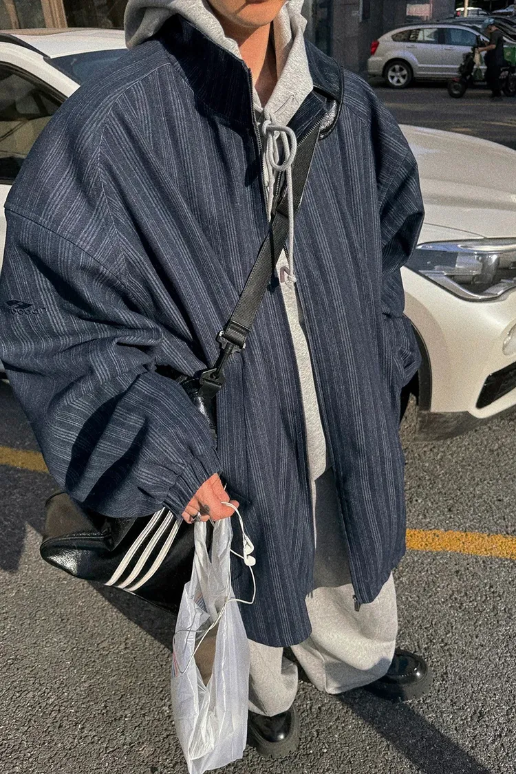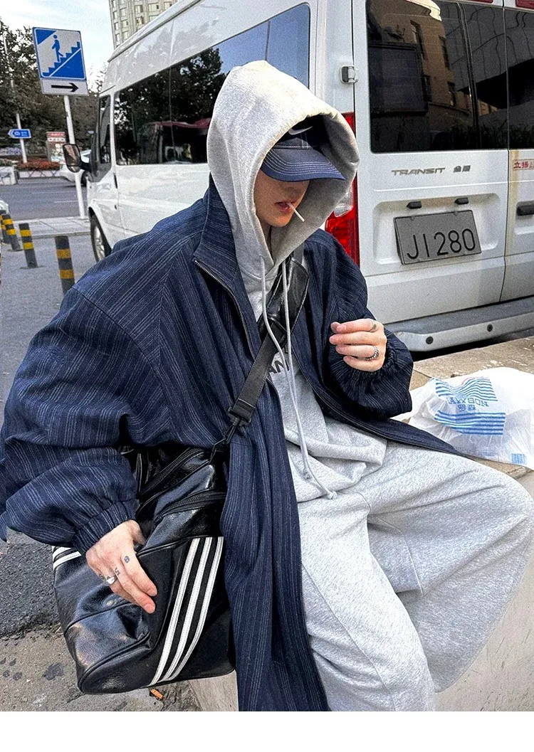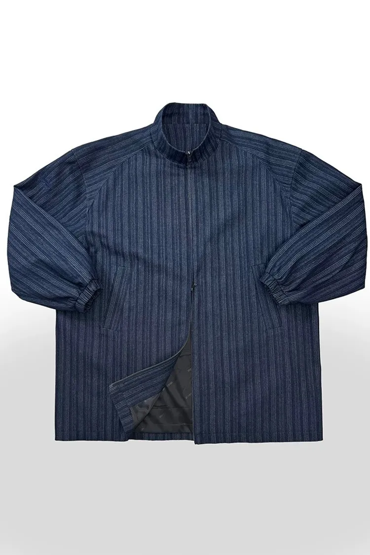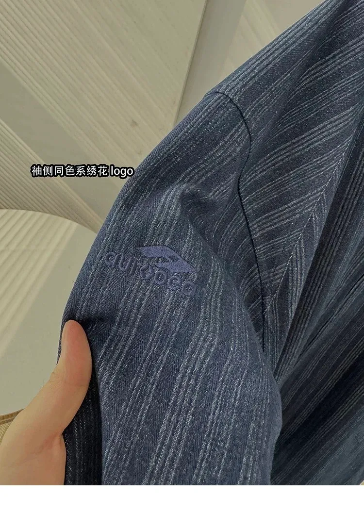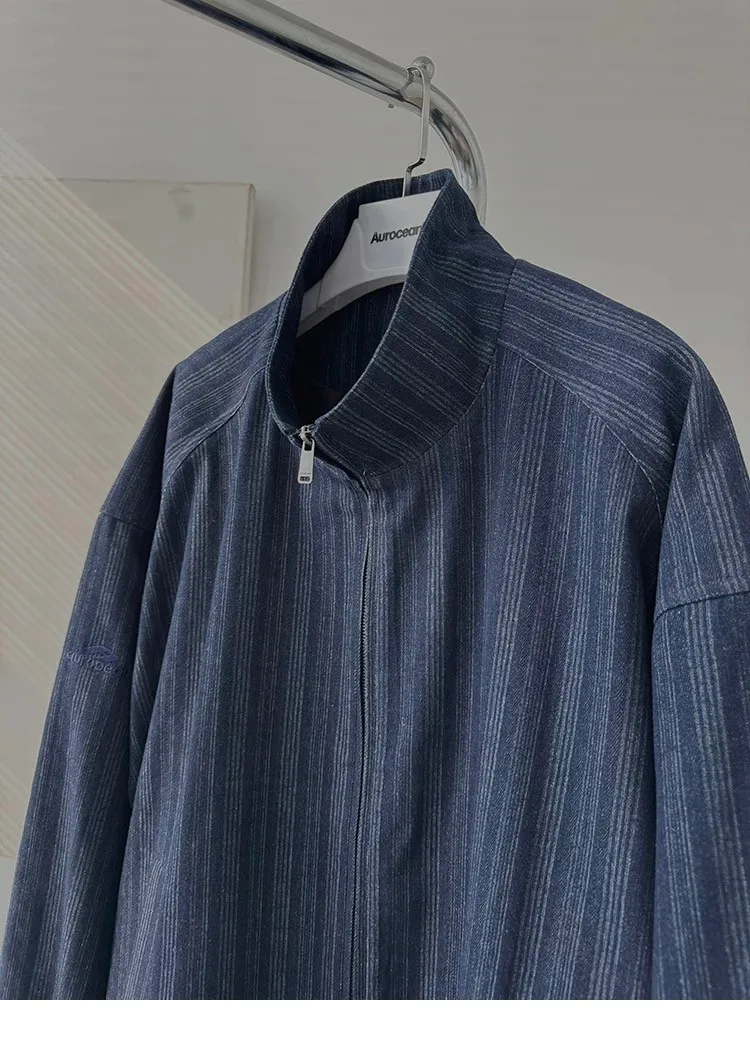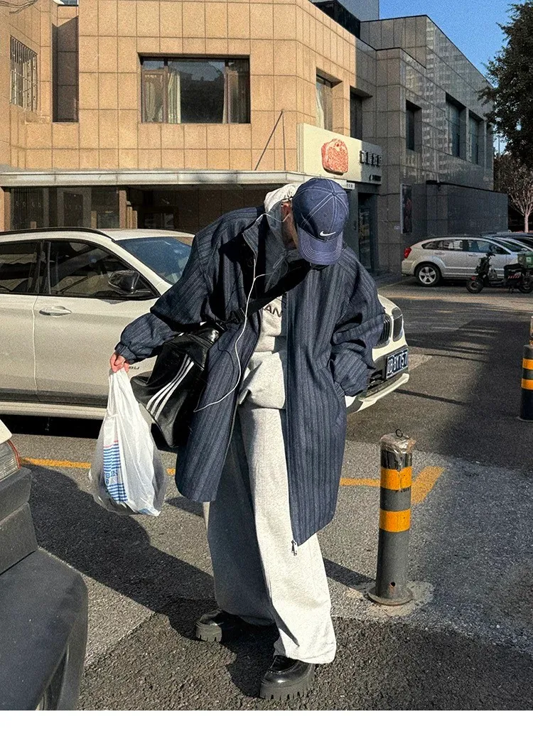 AUROCEAN 牛仔條紋 寬肩廓形 風衣外套(藍色)