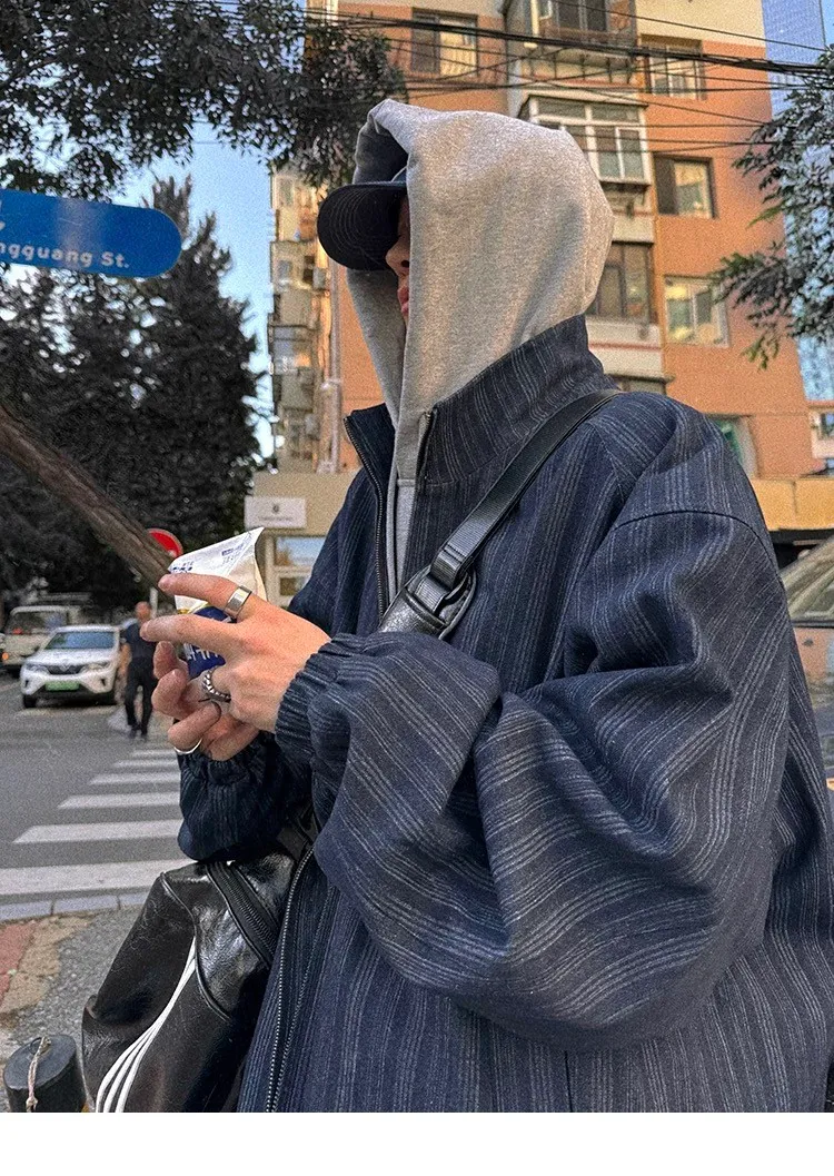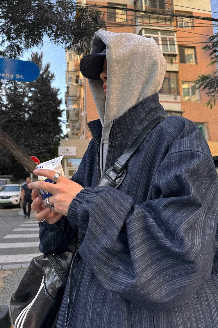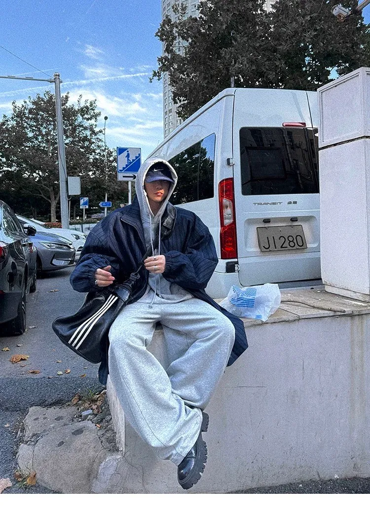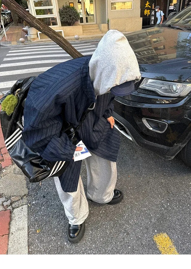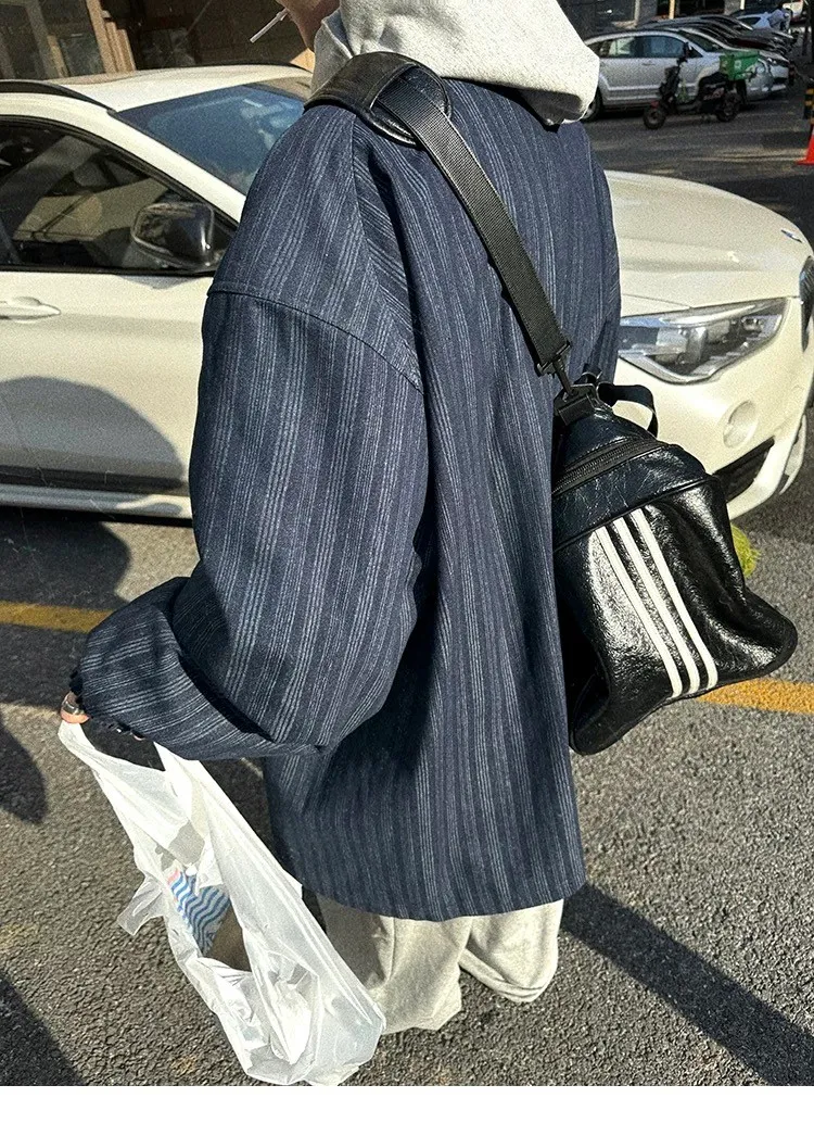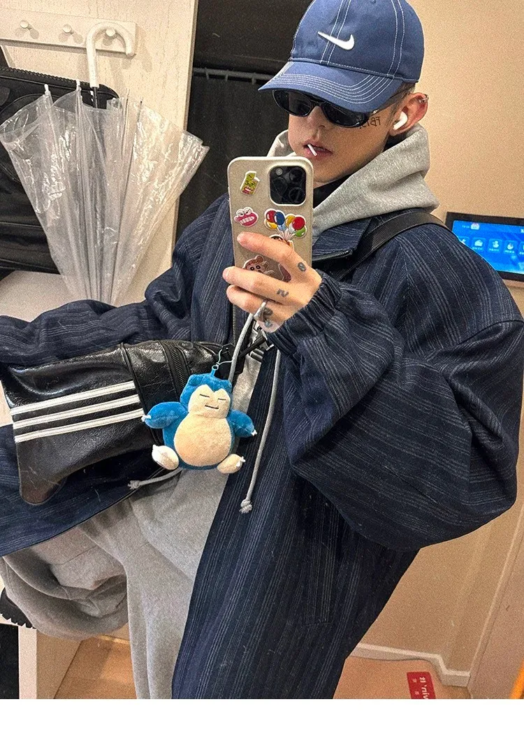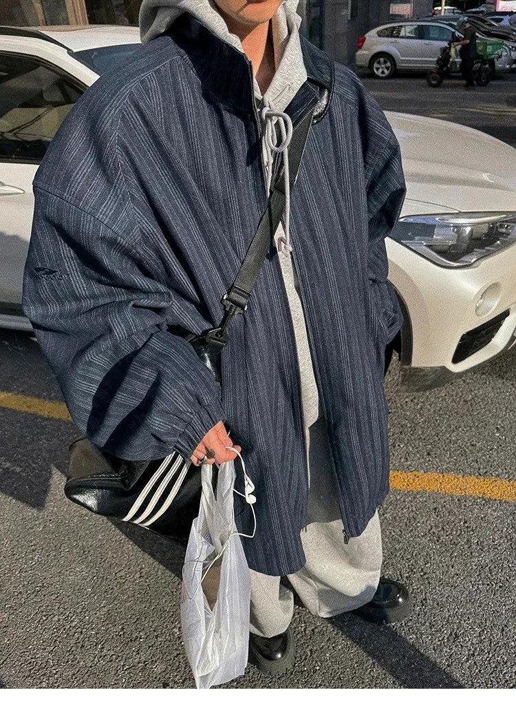 AUROCEAN 牛仔條紋 寬肩廓形 風衣外套(藍色)