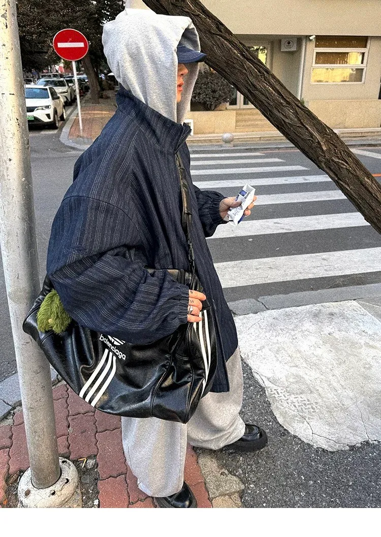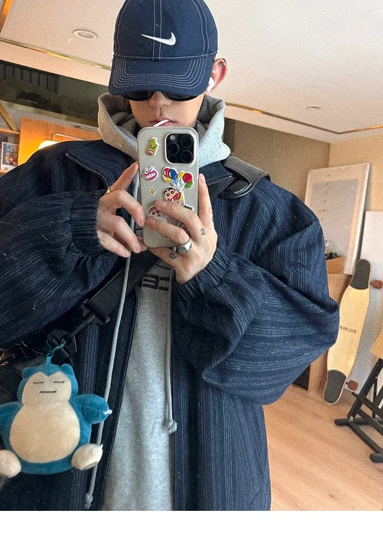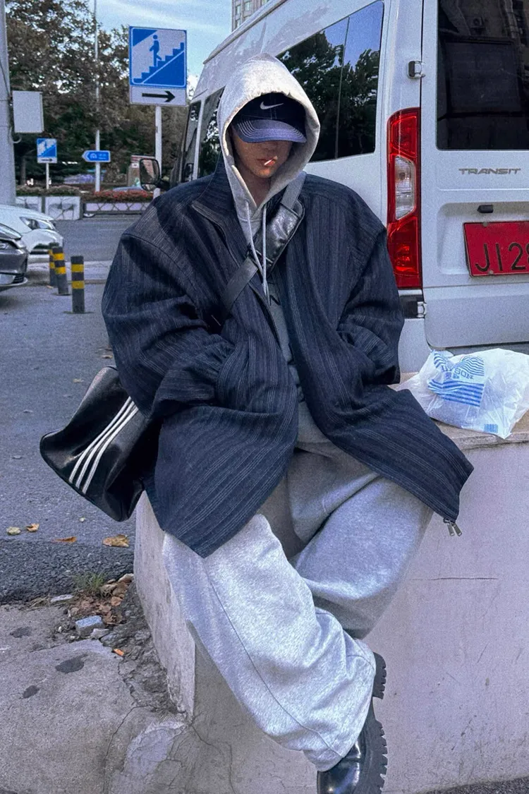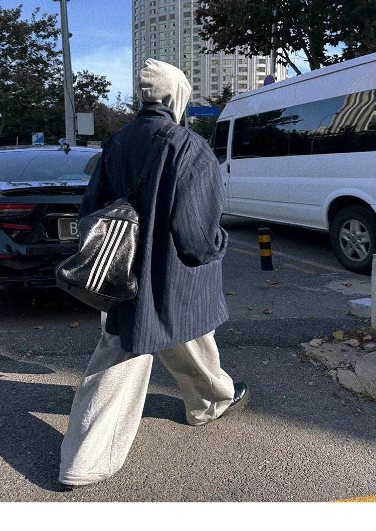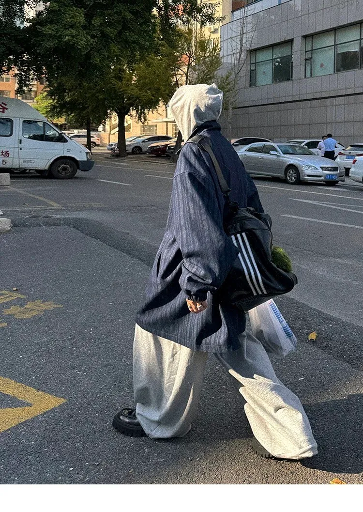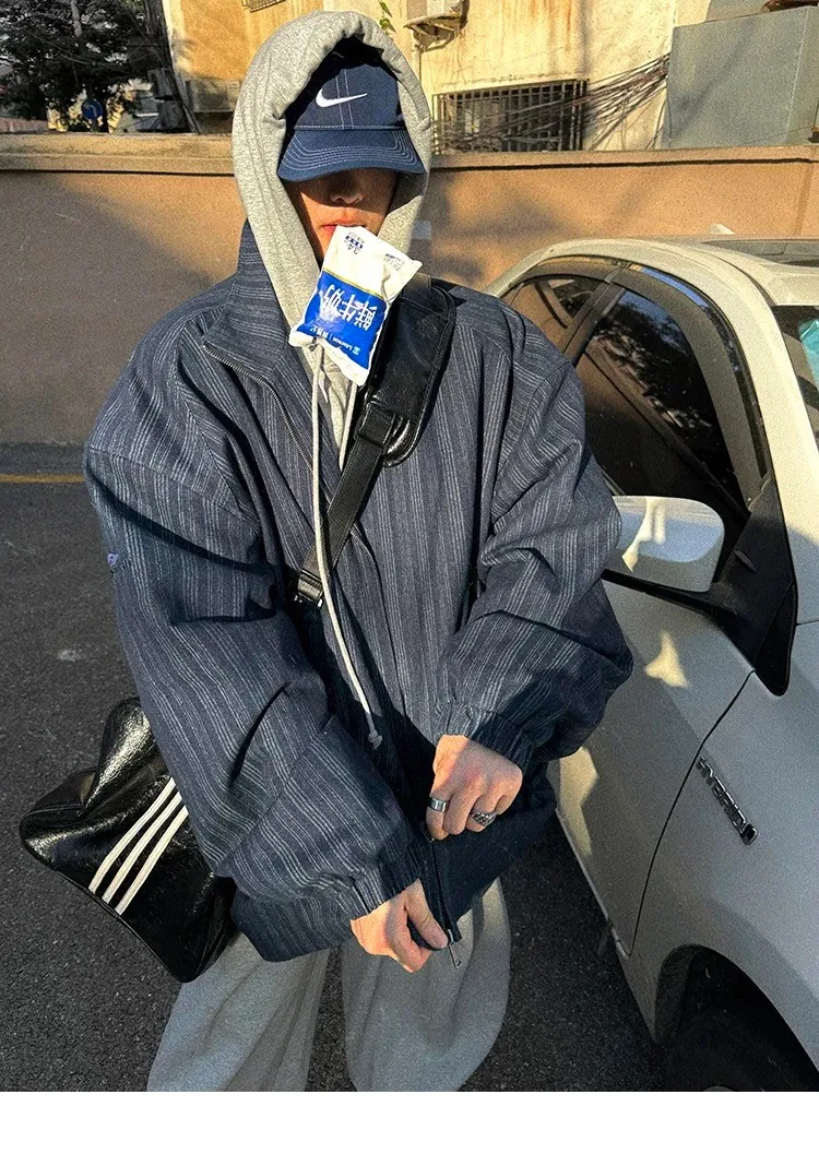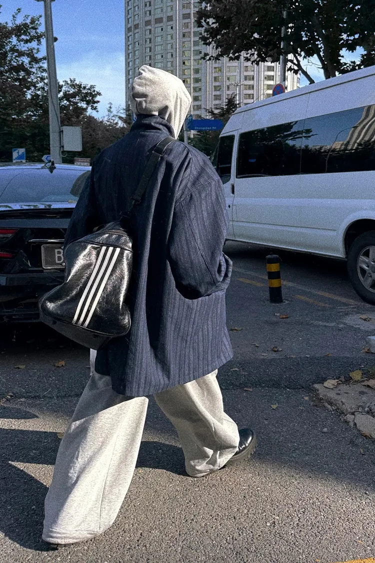 AUROCEAN 牛仔條紋 寬肩廓形 風衣外套(藍色)