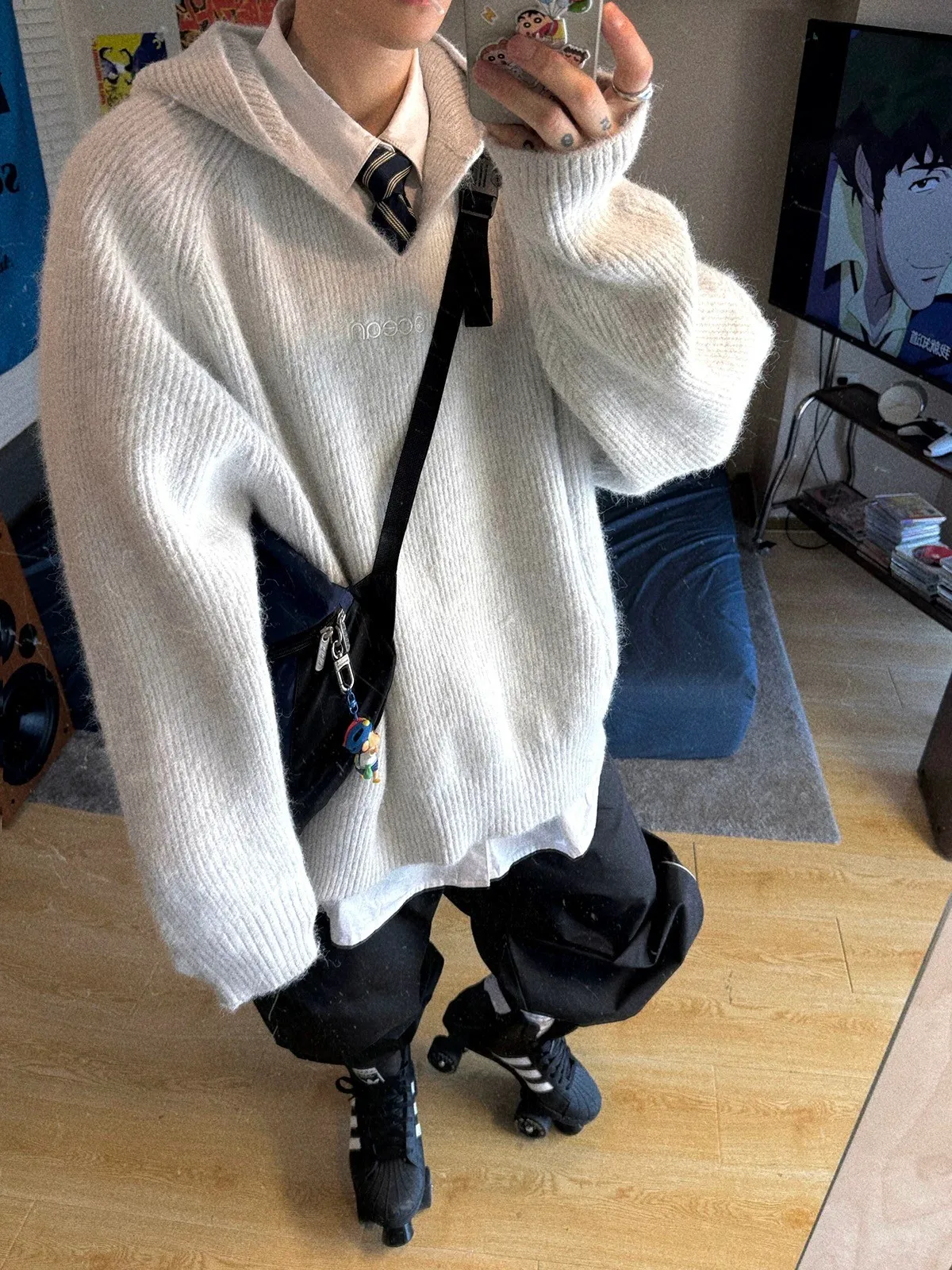 『長袖、帽踢、毛衣』