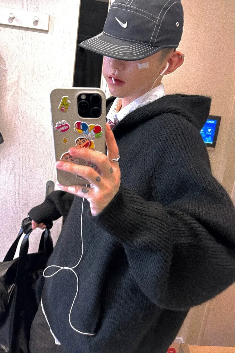 AUROCEAN 毛絨寬版 親膚保暖 針織帽踢(黑)