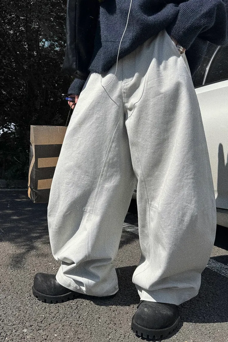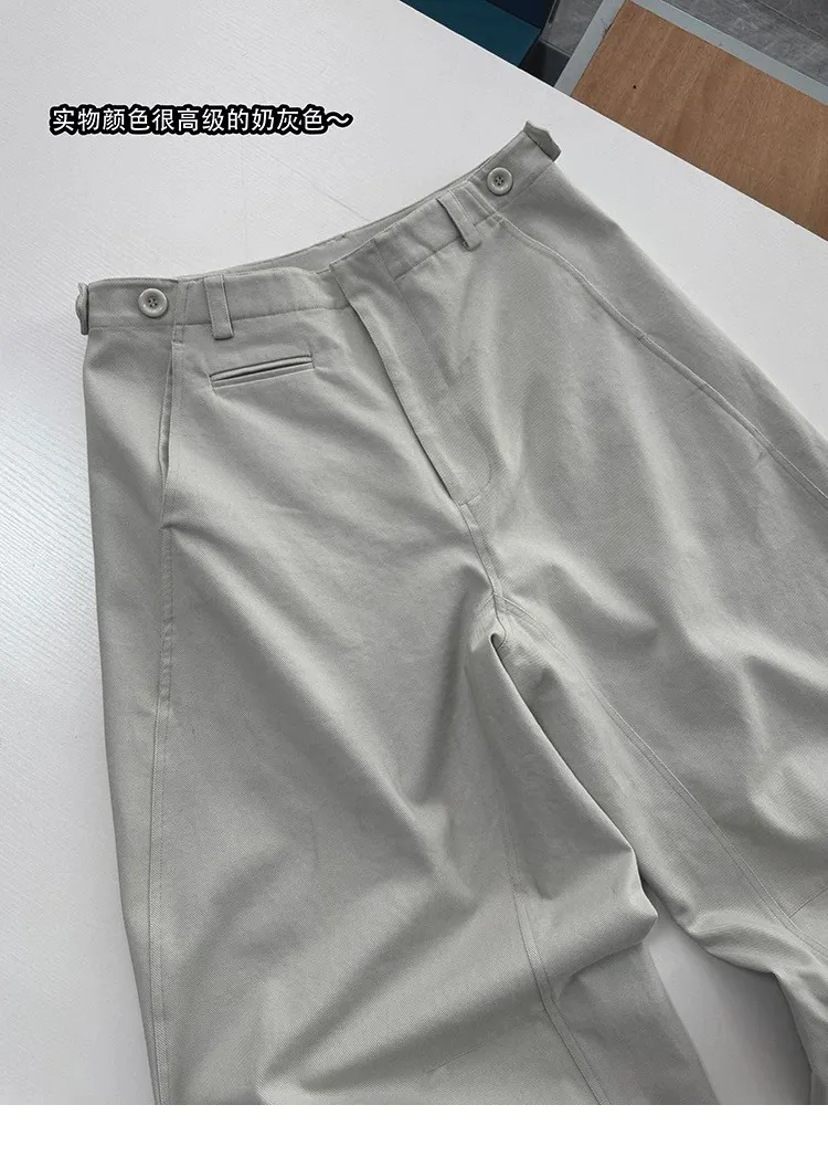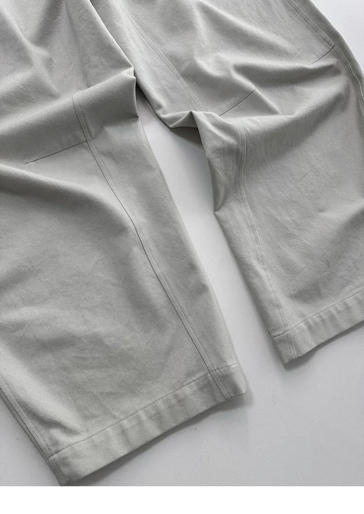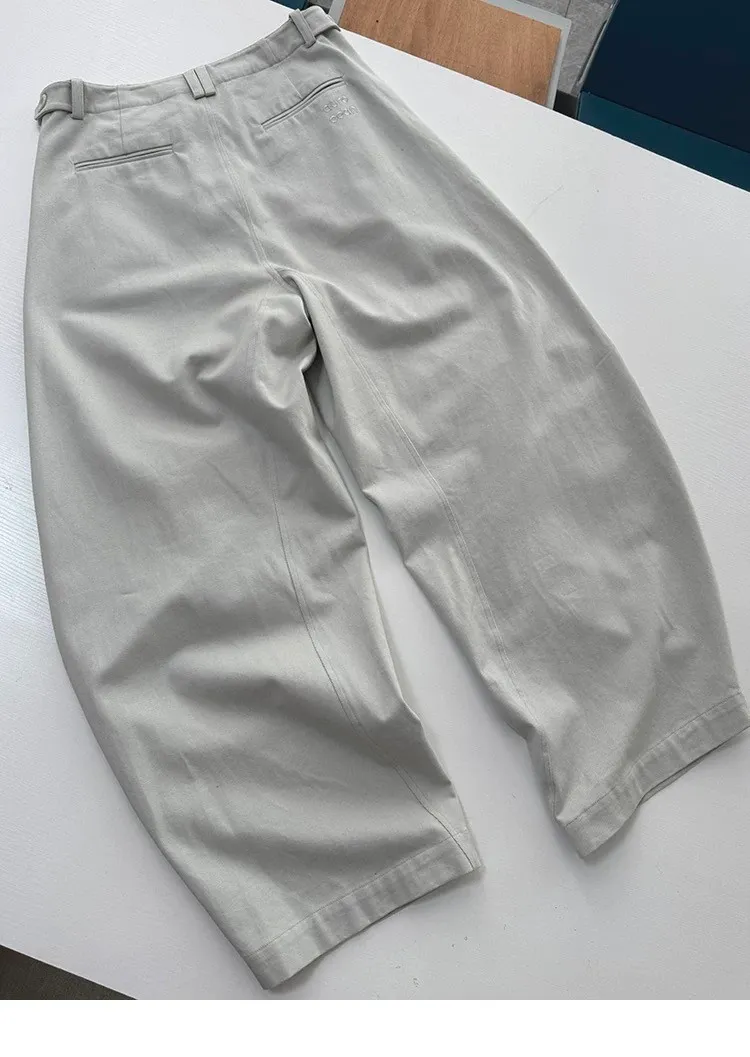 [LAX STUDIO] AUROCEAN 彎刀廓形 重磅堆疊 斜紋 長褲(奶灰)