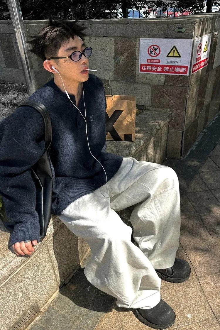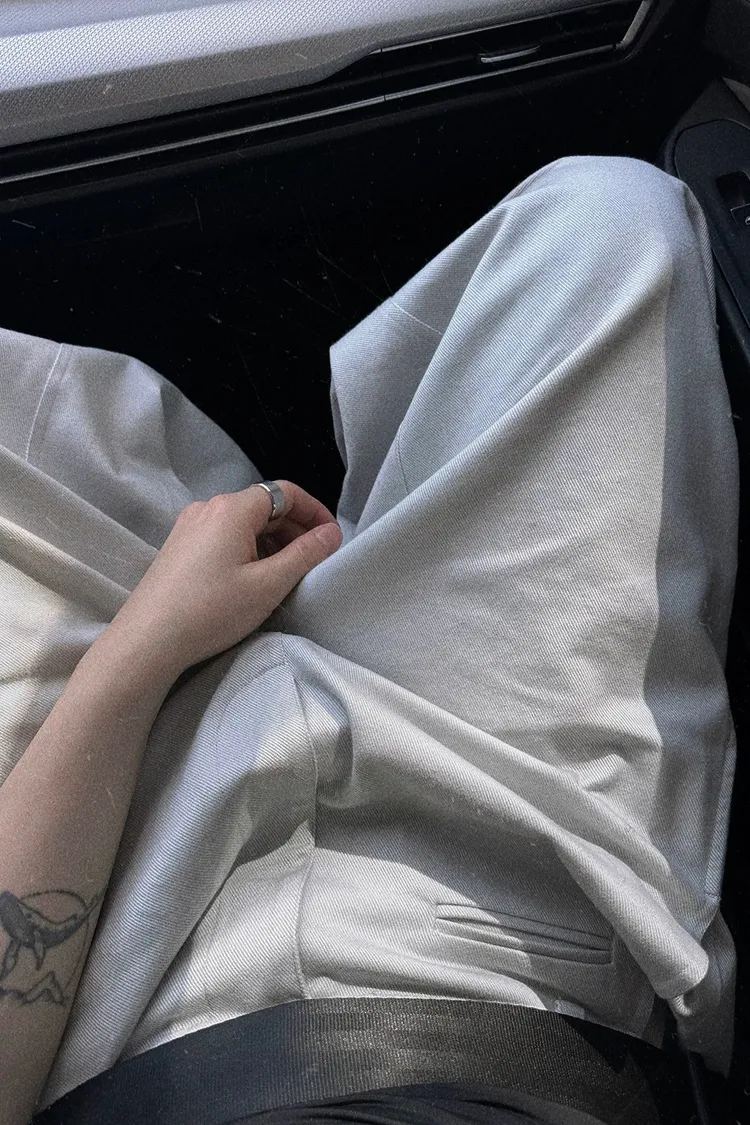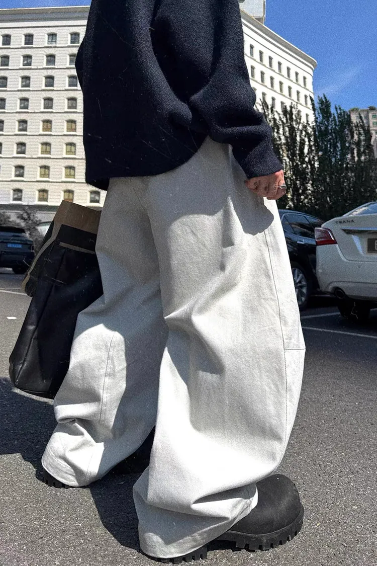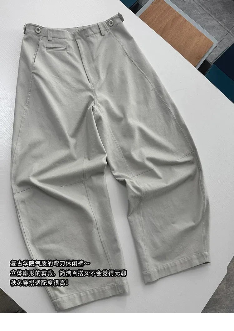 [LAX STUDIO] AUROCEAN 彎刀廓形 重磅堆疊 斜紋 長褲(奶灰)